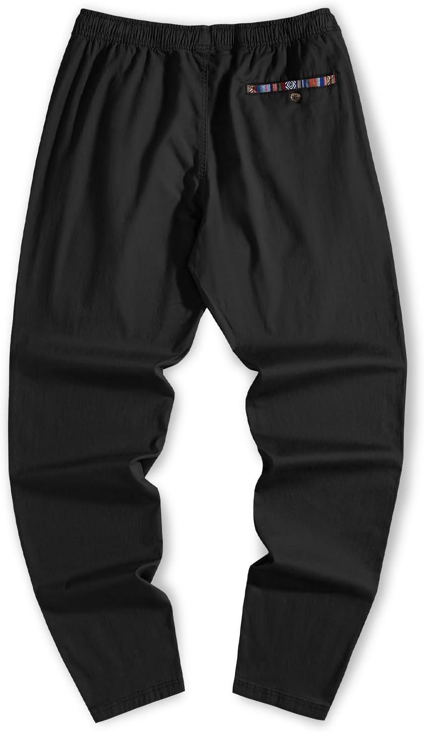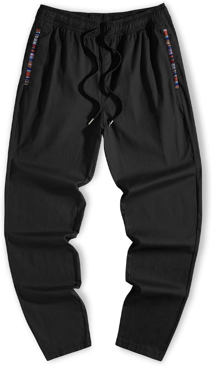 JMIERR Casual Chino Pants Drawstring Stretch Waist Fit Cotton Twill Trousers(A Black)