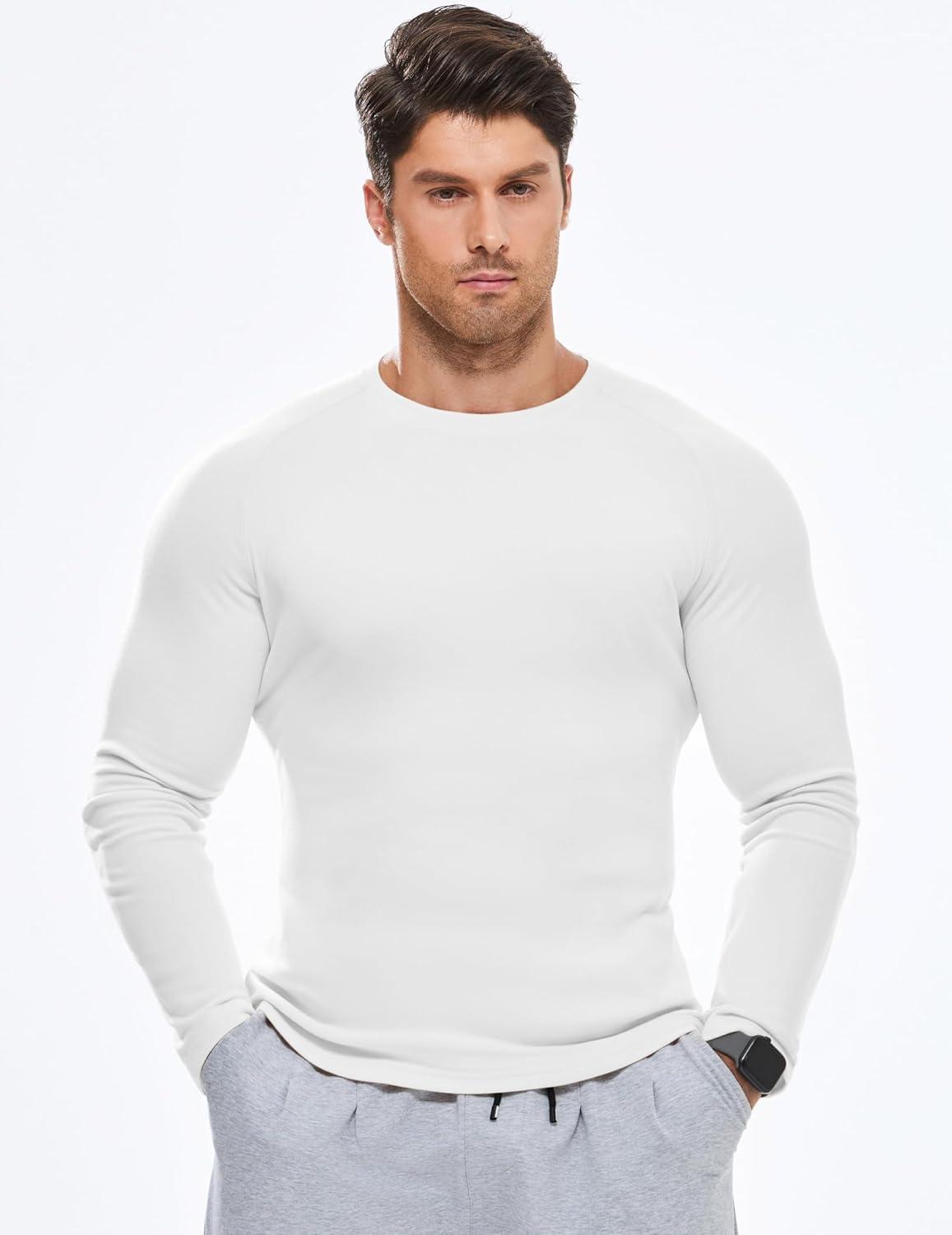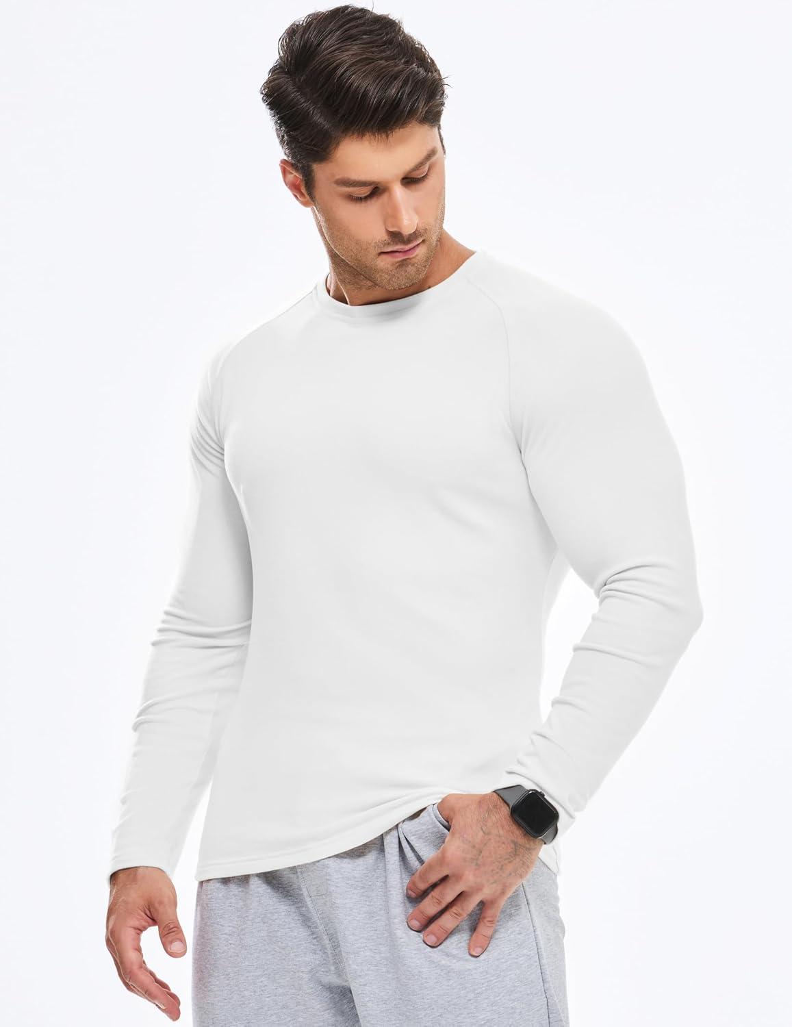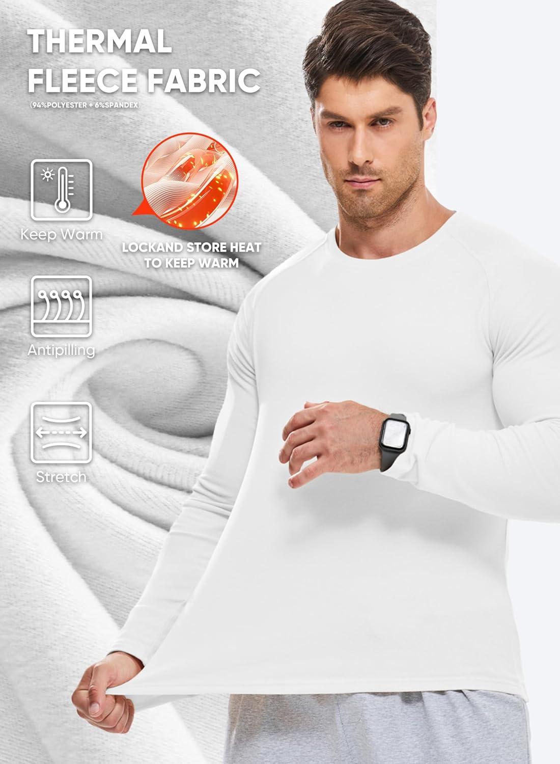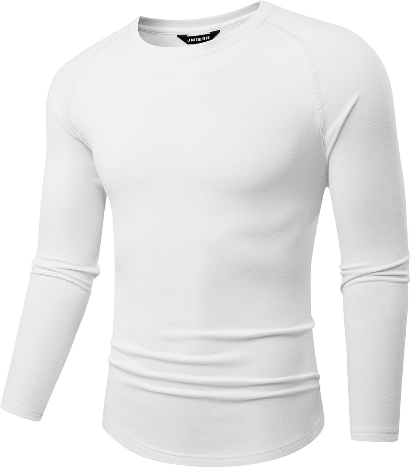 JMIERR Long Sleeve Thermal Fleece Shirts Fall Fashion Crew Neck Casual Basic T-Shirts(White)