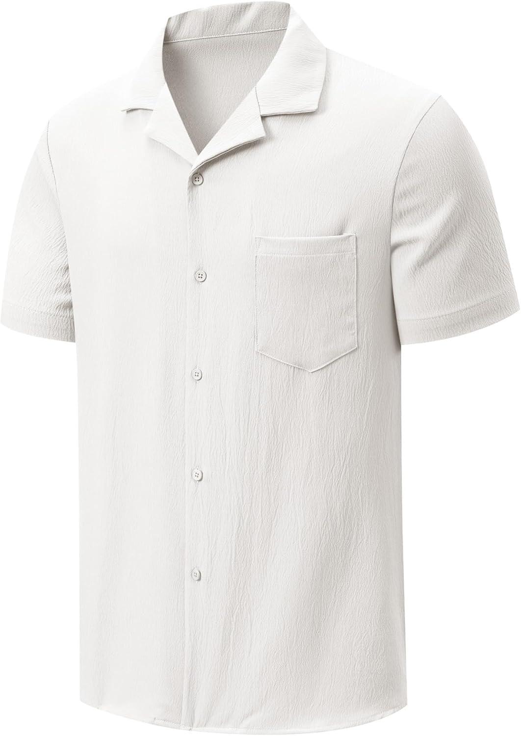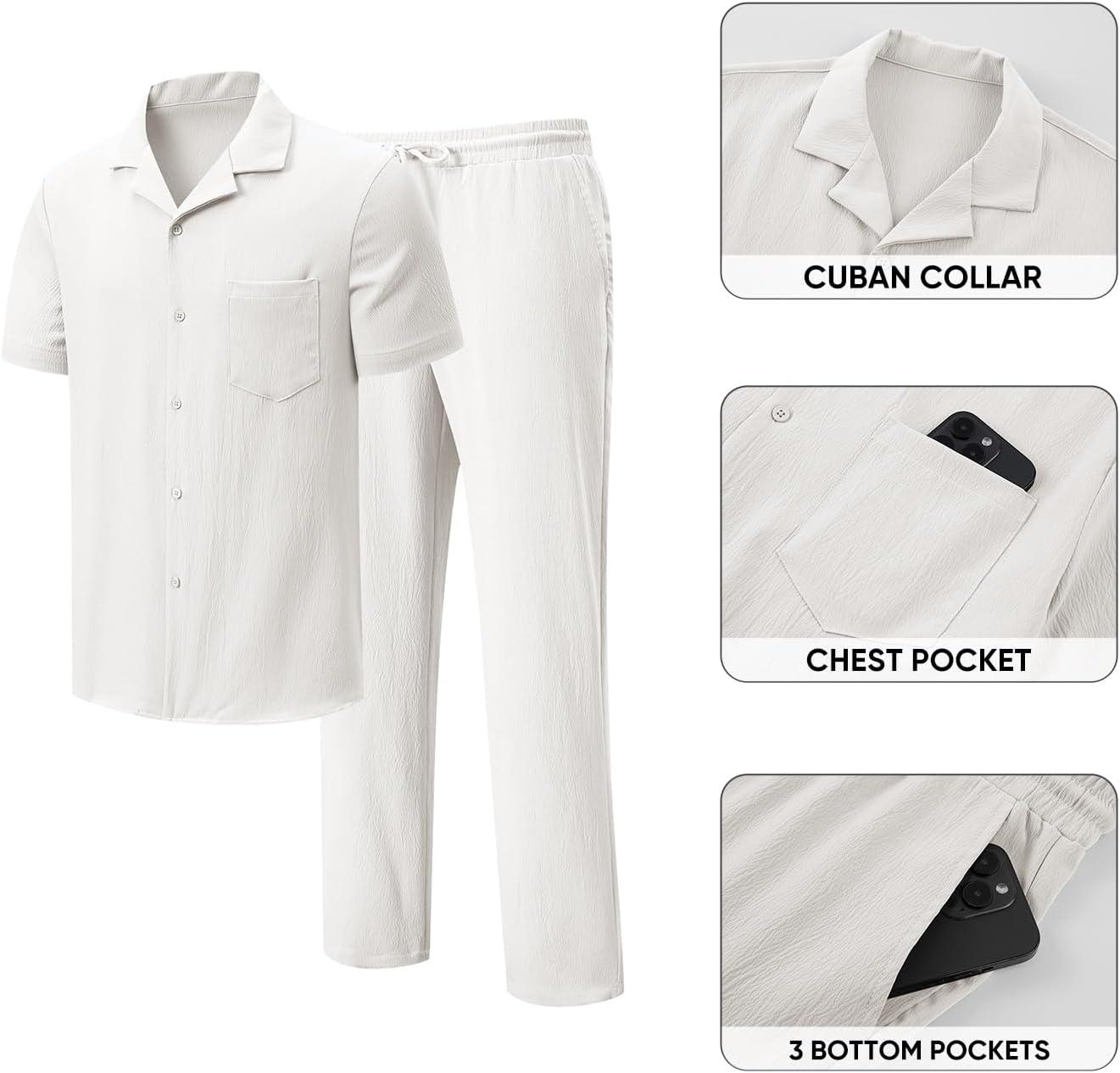 JMIERR Men 2 Piece Outfit Short Sleeve Beach Button Down Shirt Casual Loose Pant Sets with Pocket(0 White)