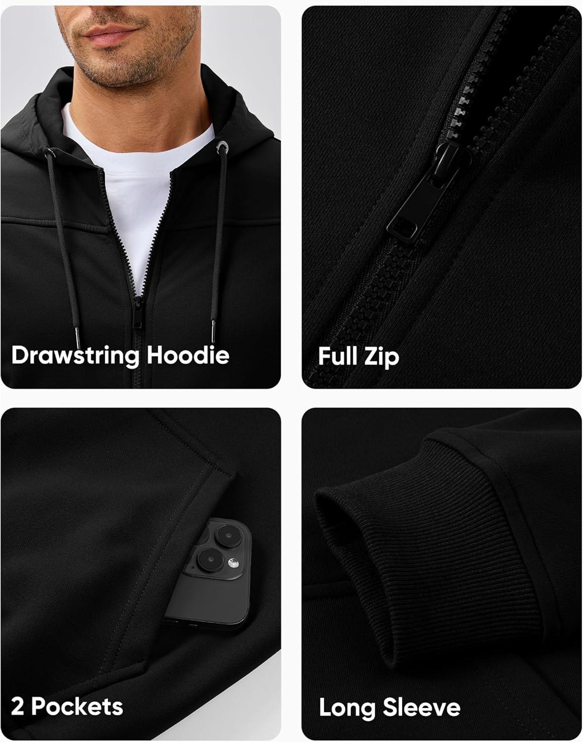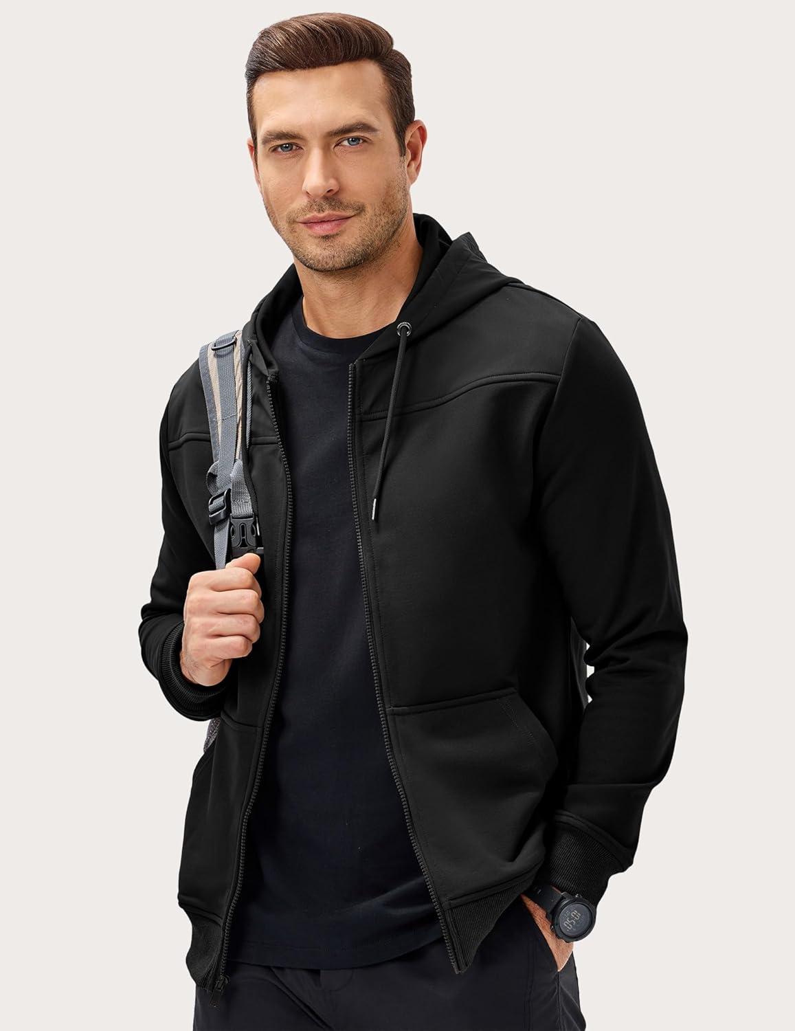 JMIERR Men Hoodie 2025 Zip Up Fall Casual Warm Drawstring Hooded Jacket with Pockets Workout Hiking Sweatshirt(0 Black)