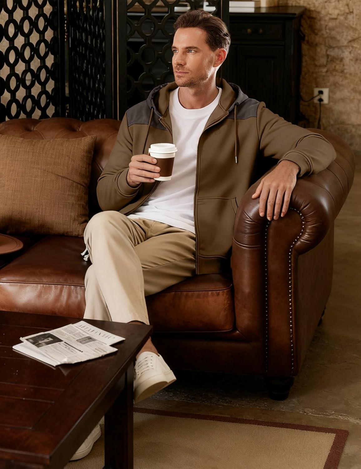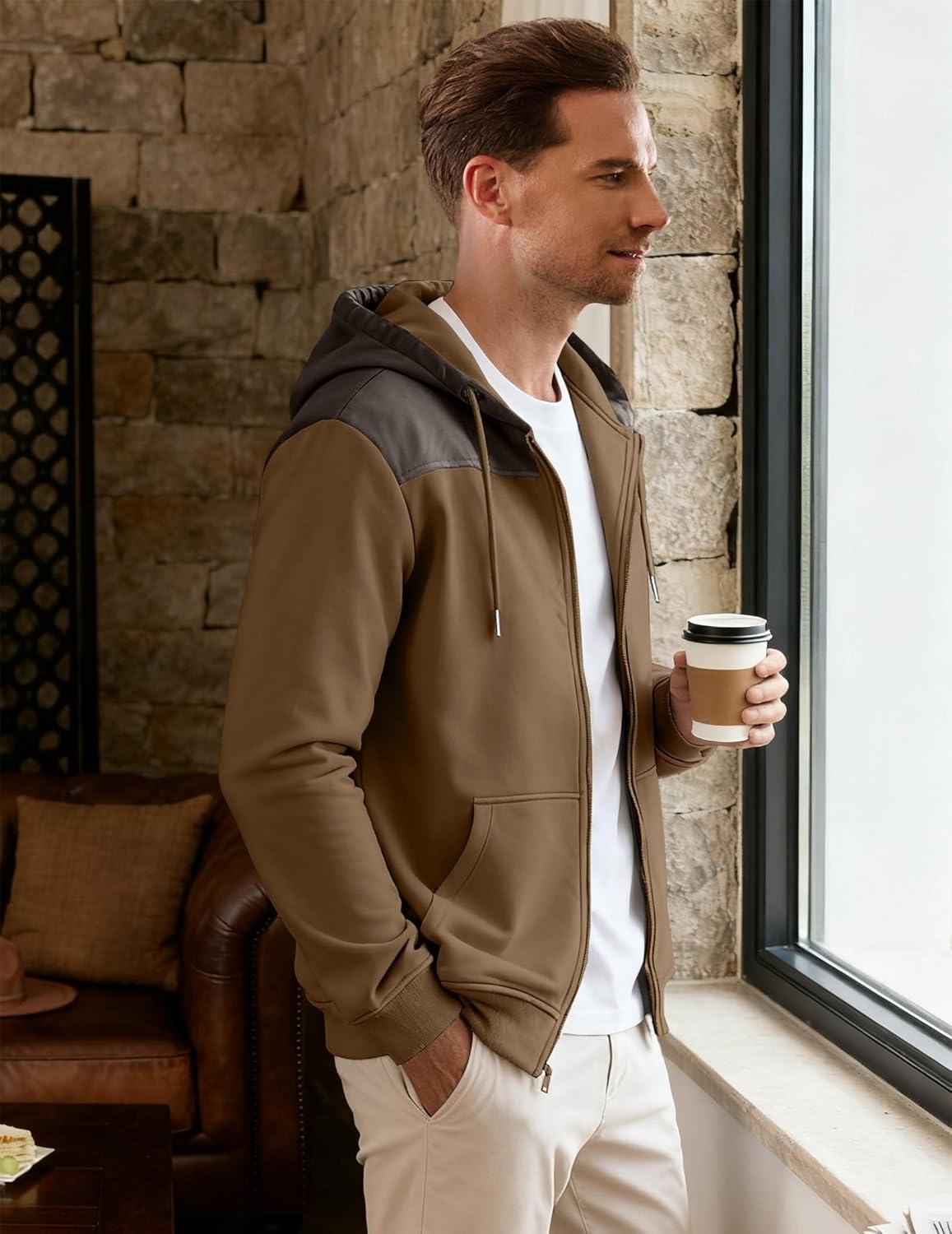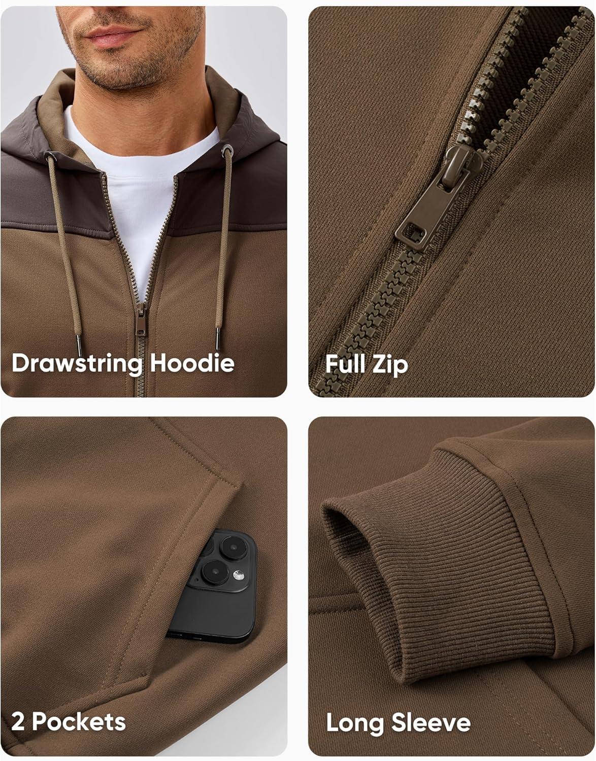 JMIERR Men Hoodie 2025 Zip Up Fall Casual Warm Drawstring Hooded Jacket with Pockets Workout Hiking Sweatshirt(1 Brown)