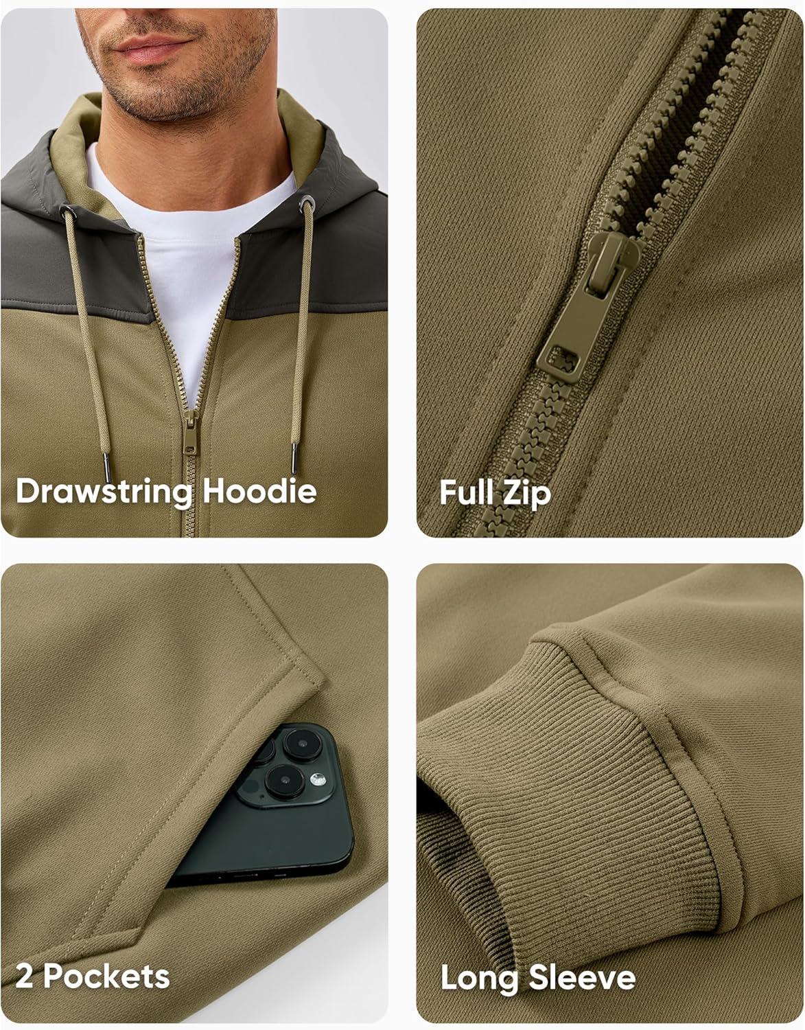 JMIERR Men Hoodie 2025 Zip Up Fall Casual Warm Drawstring Hooded Jacket with Pockets Workout Hiking Sweatshirt(B Green)