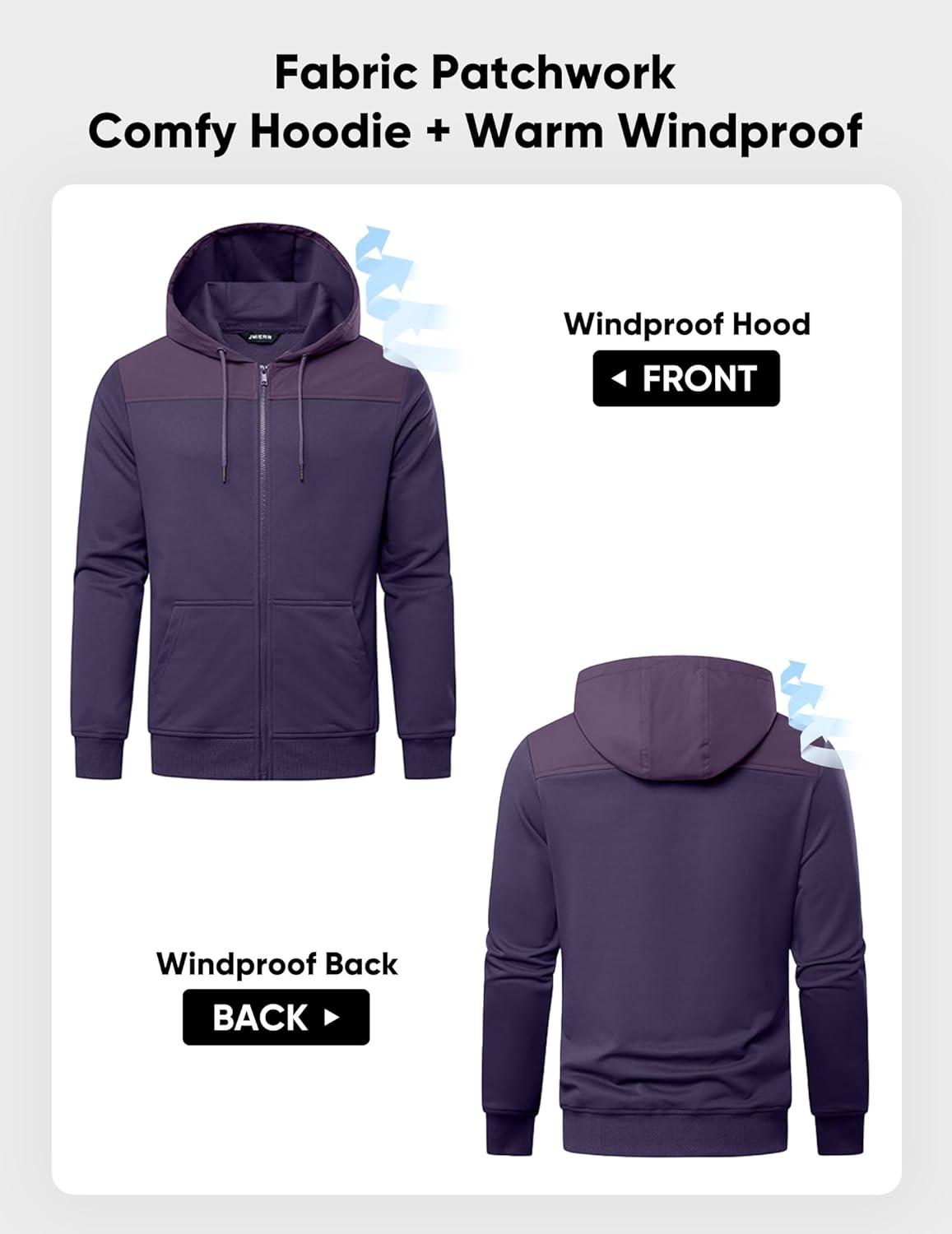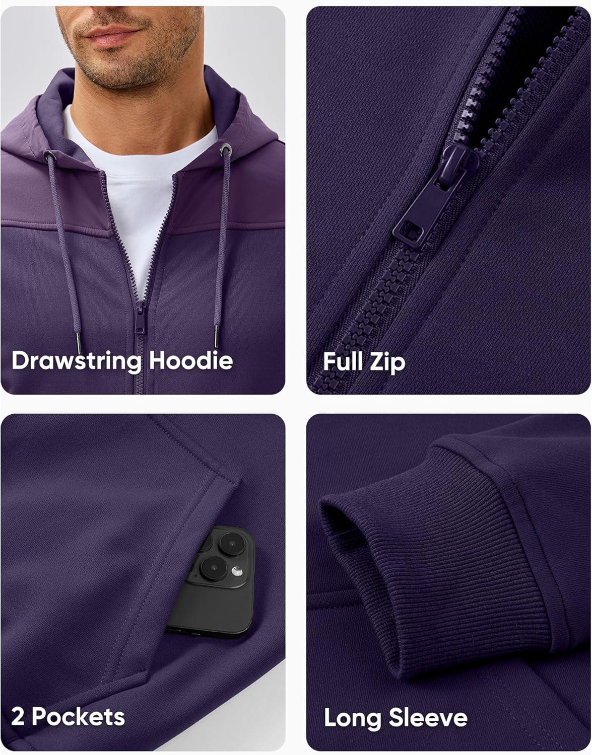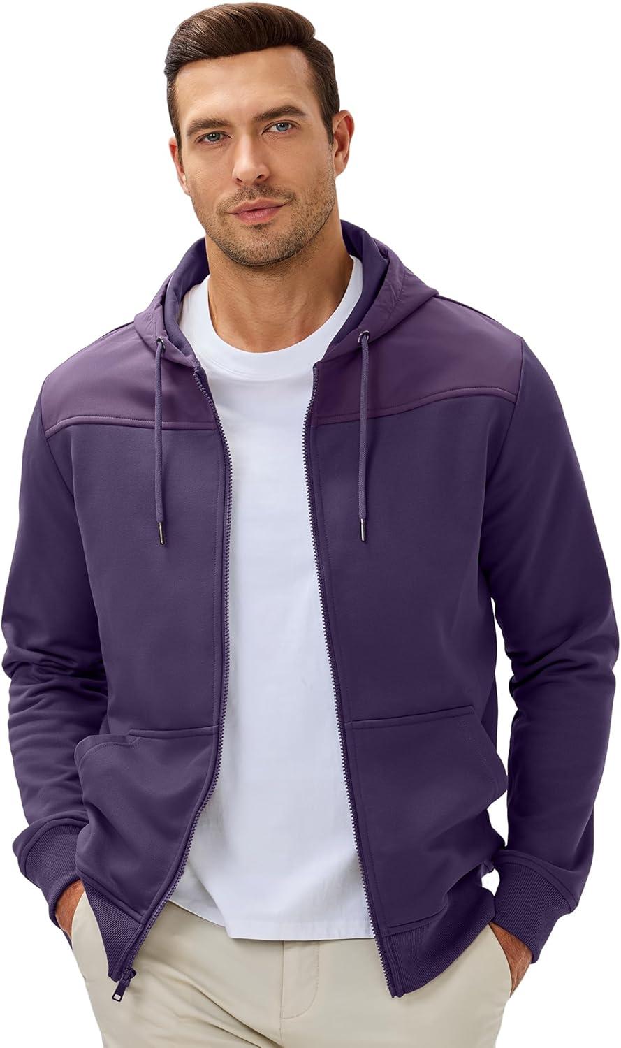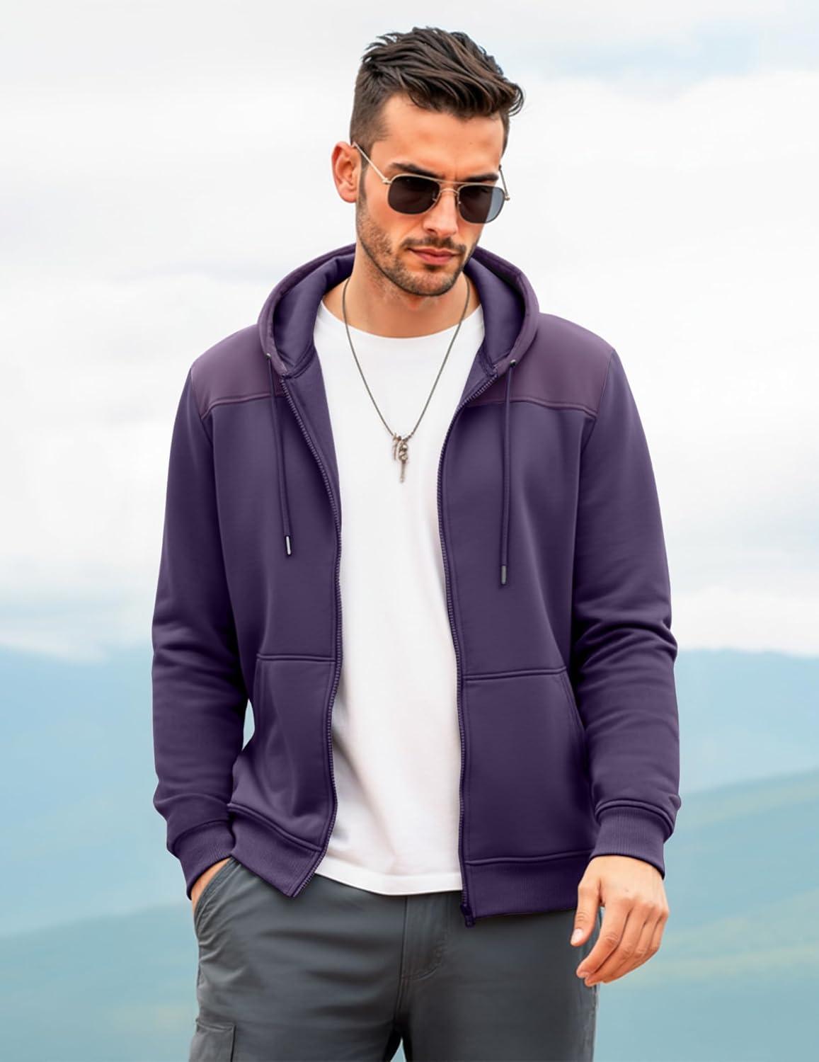 JMIERR Men Hoodie 2025 Zip Up Fall Casual Warm Drawstring Hooded Jacket with Pockets Workout Hiking Sweatshirt(D Purple)