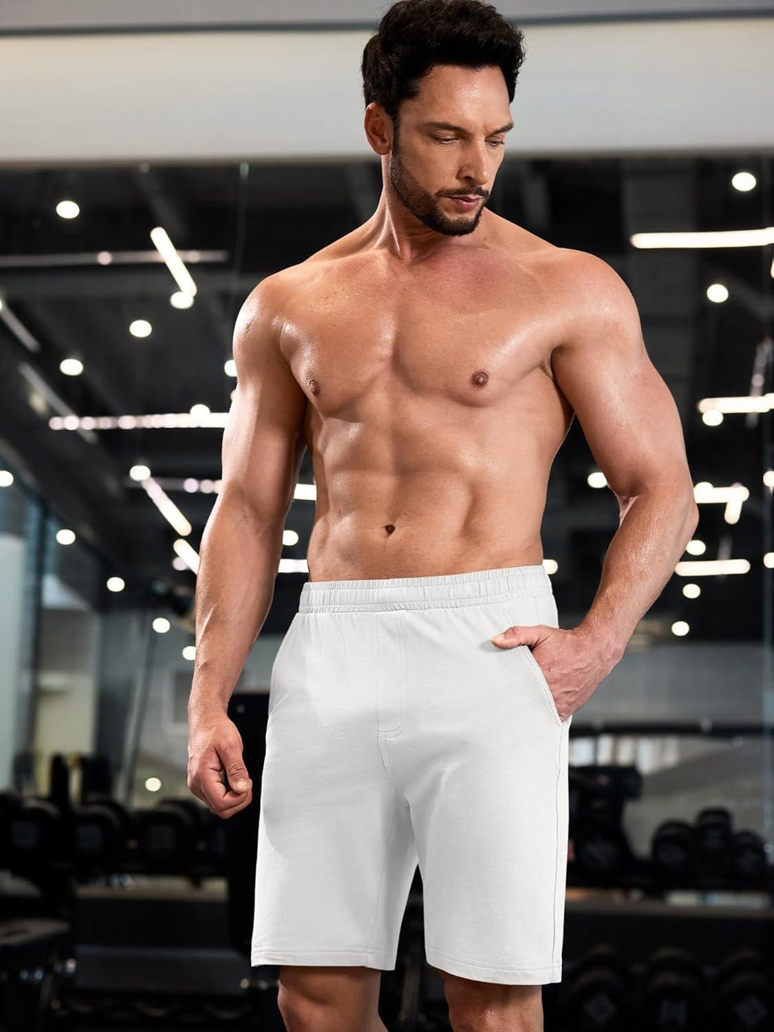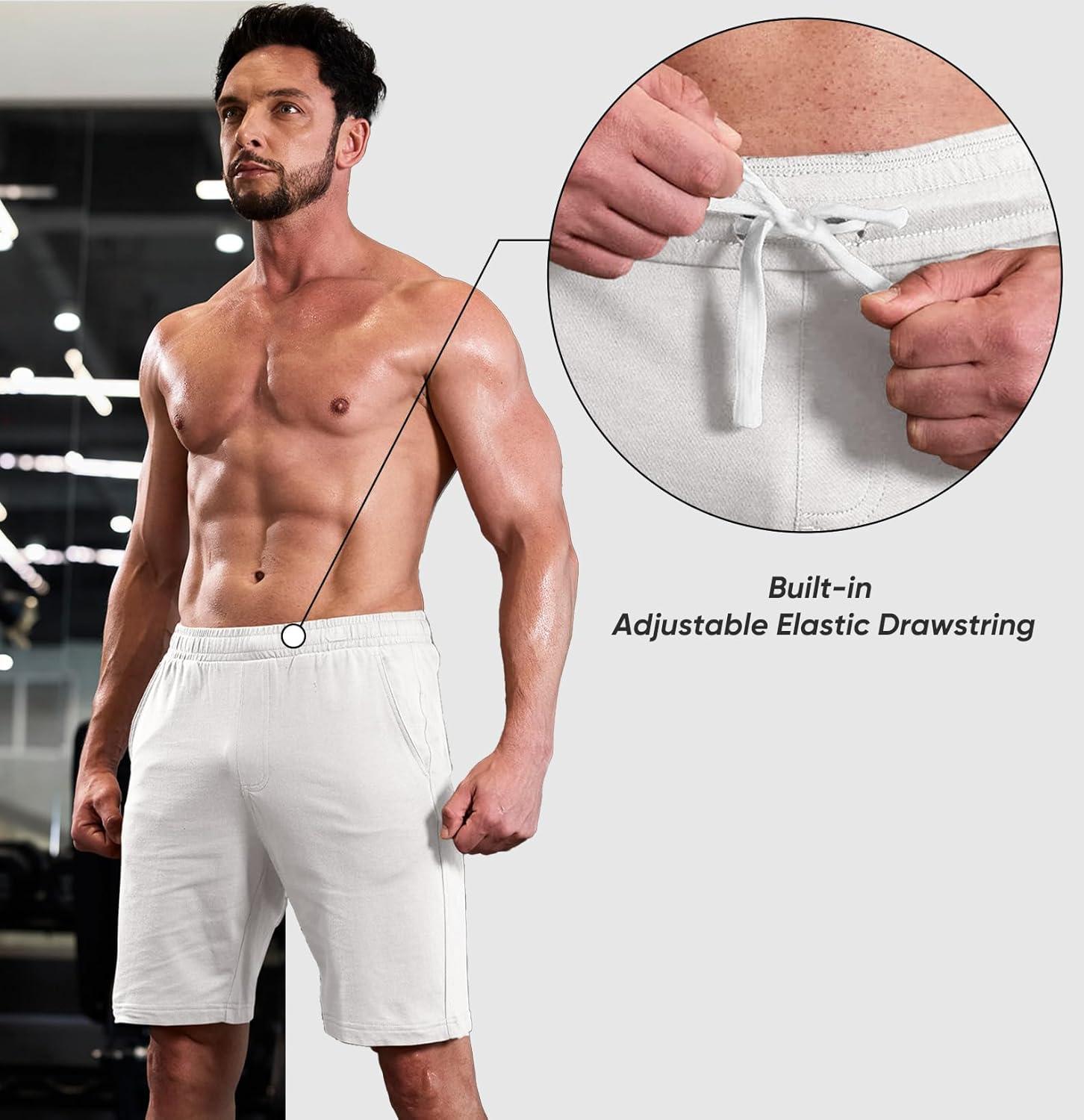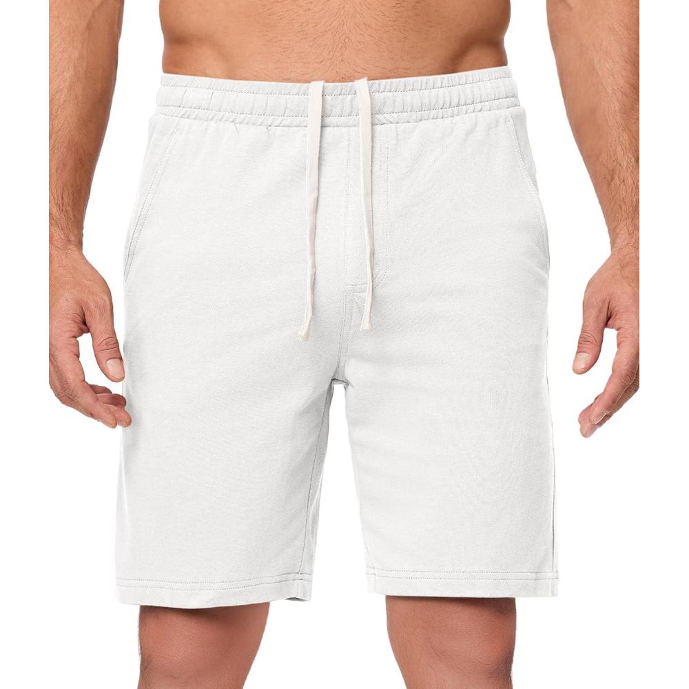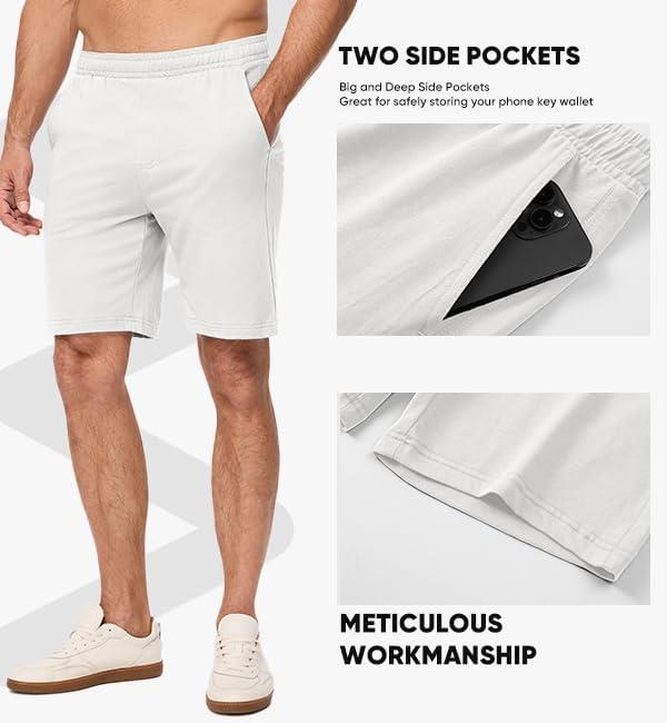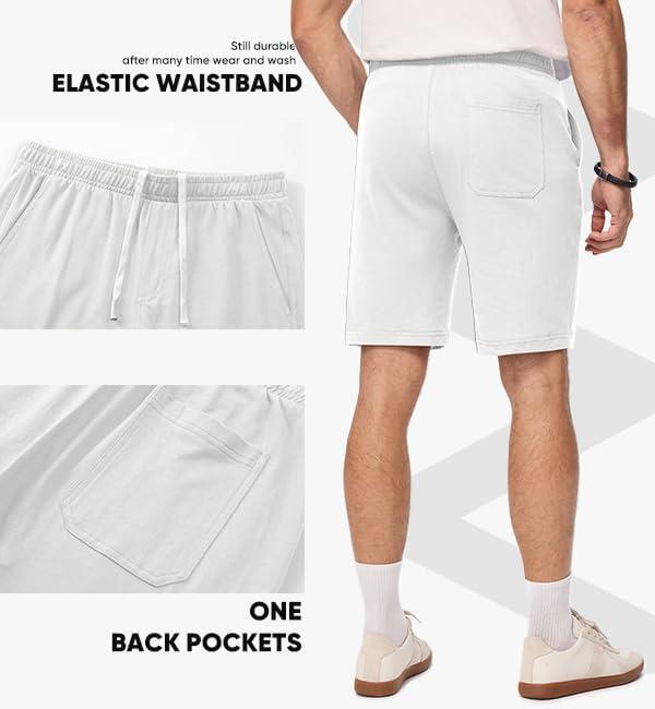 JMIERR Men’s 100% Cotton Shorts 9″ Casual Elastic Waist Drawstring Lightweight Workout Lounge Beach Jersey Sweat Shorts(A White)