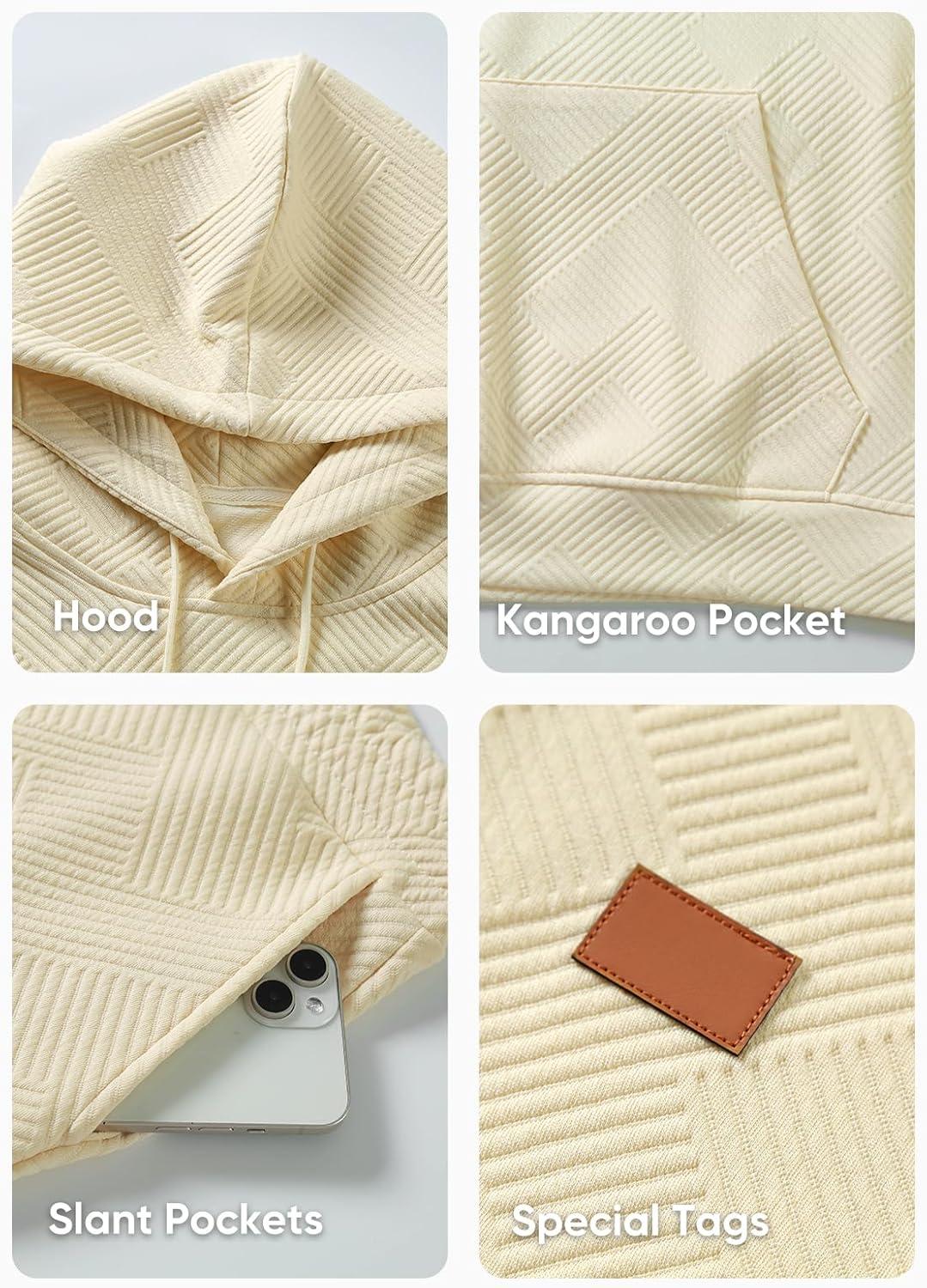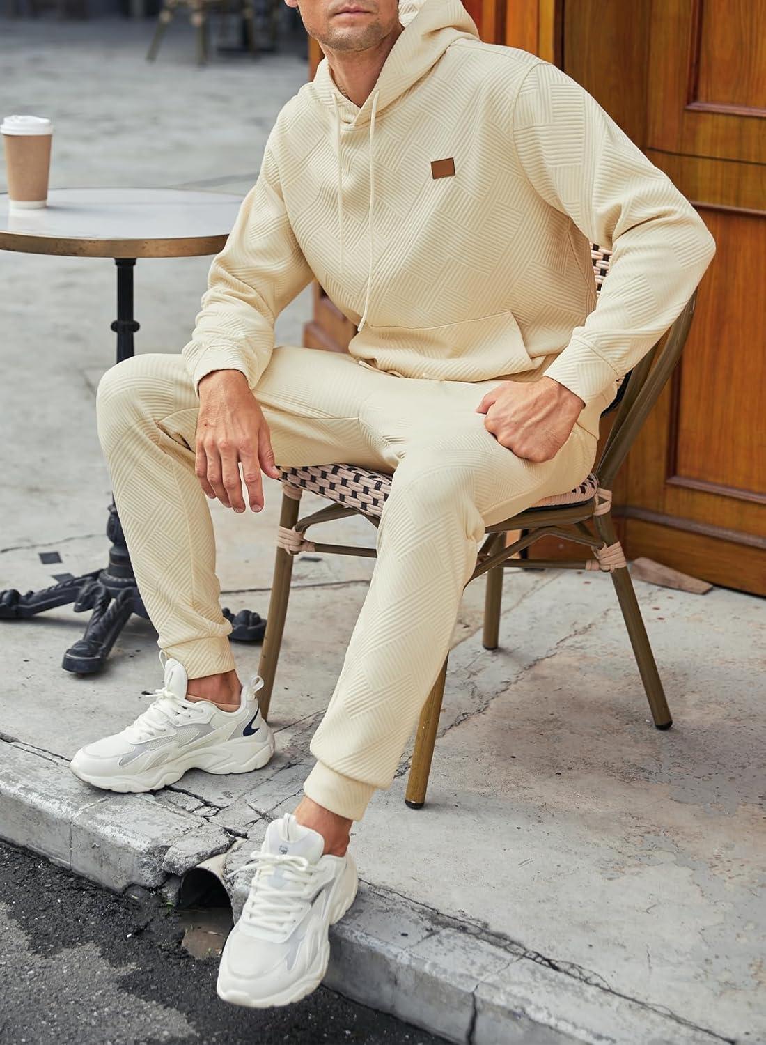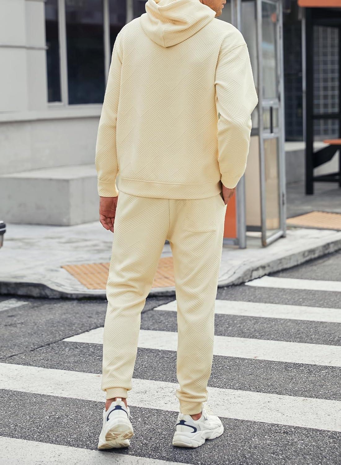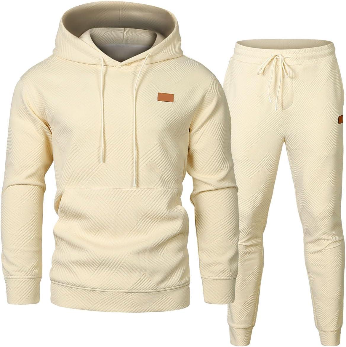 JMIERR Mens 2 Piece Jacquard Sweatsuit Outfits Hoodie Sweatshirt & Joggers Sweatpants Set Tracksuit(Beige)