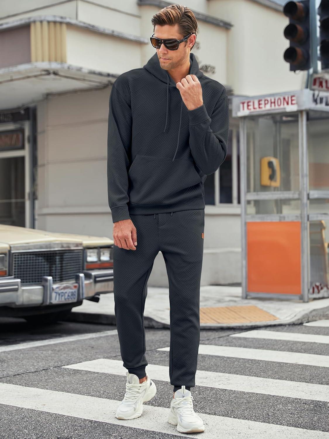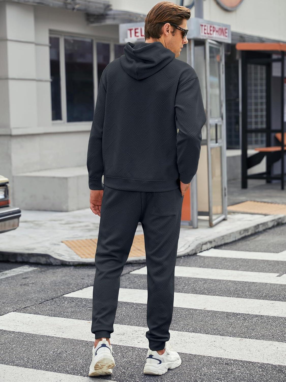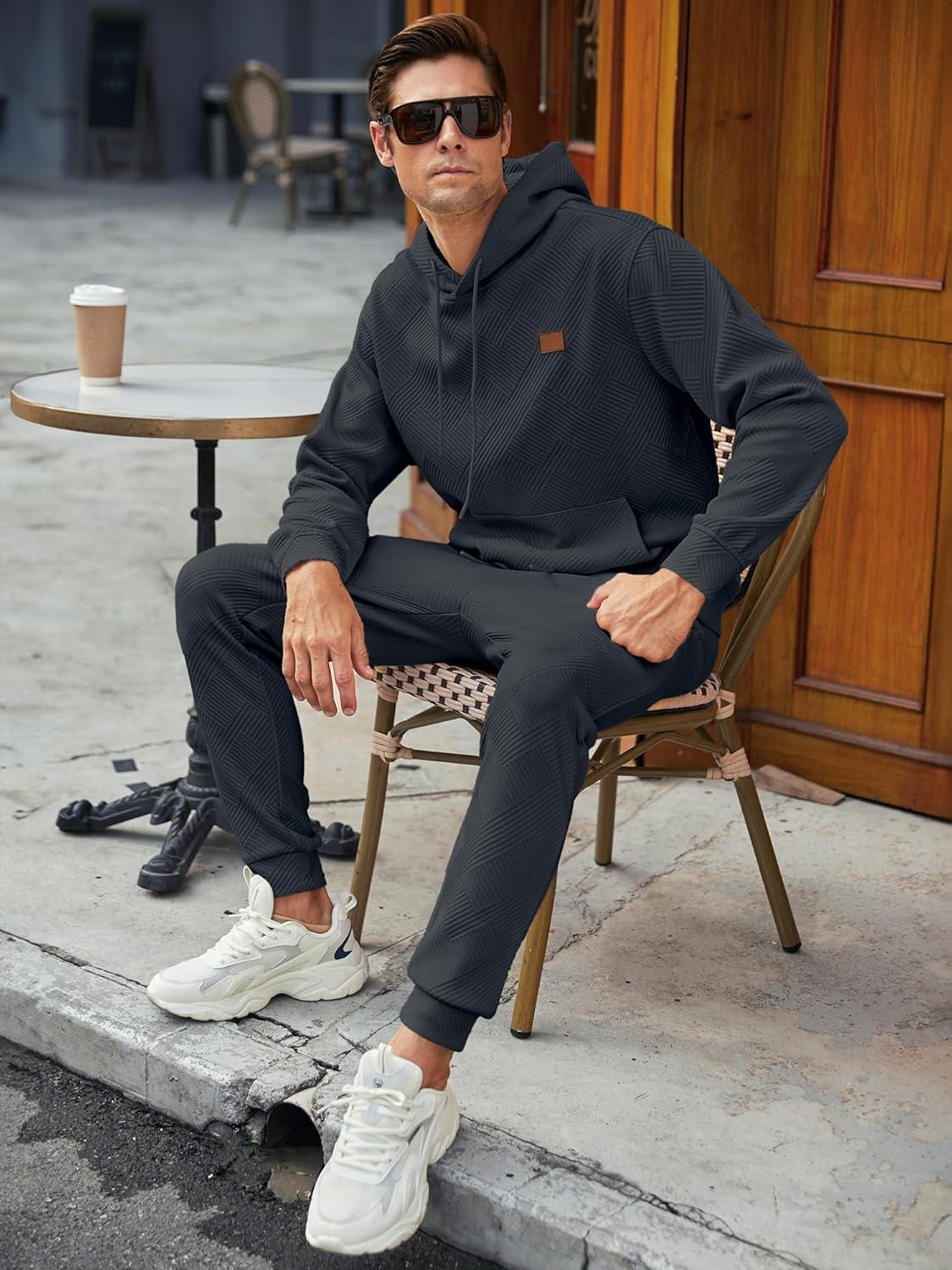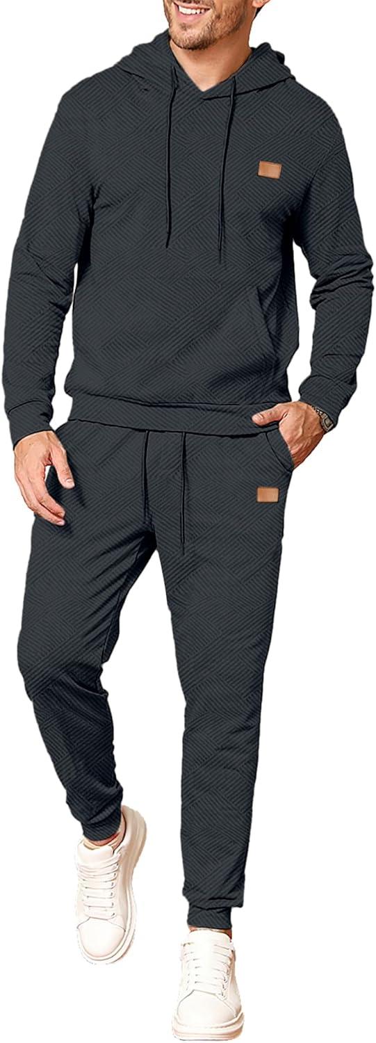 JMIERR Mens 2 Piece Jacquard Sweatsuit Outfits Hoodie Sweatshirt & Joggers Sweatpants Set Tracksuit(Dark Grey)