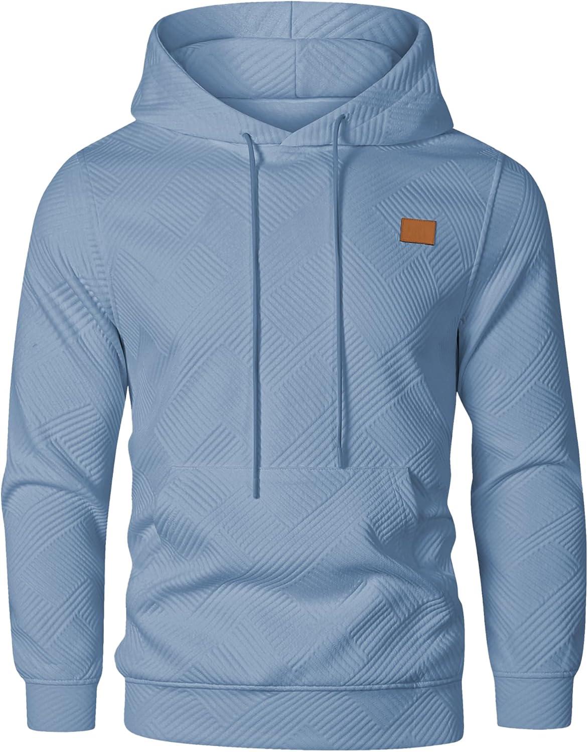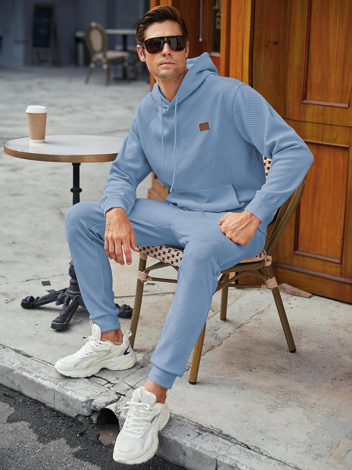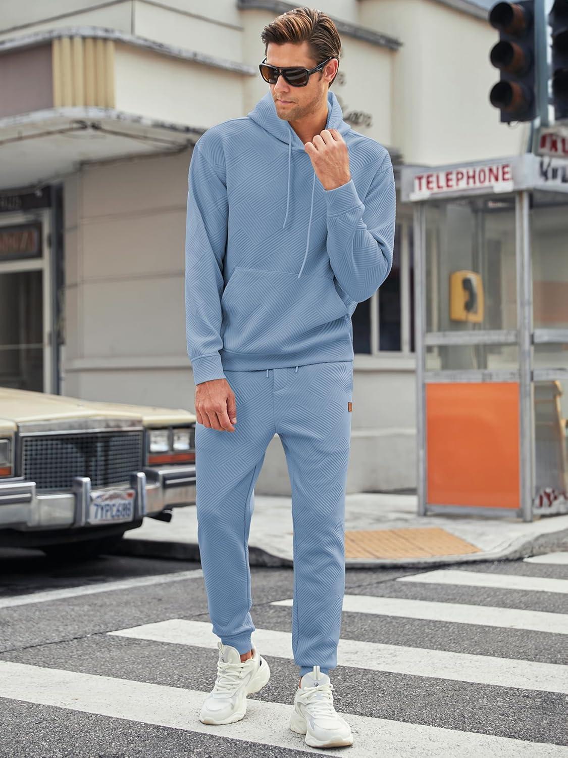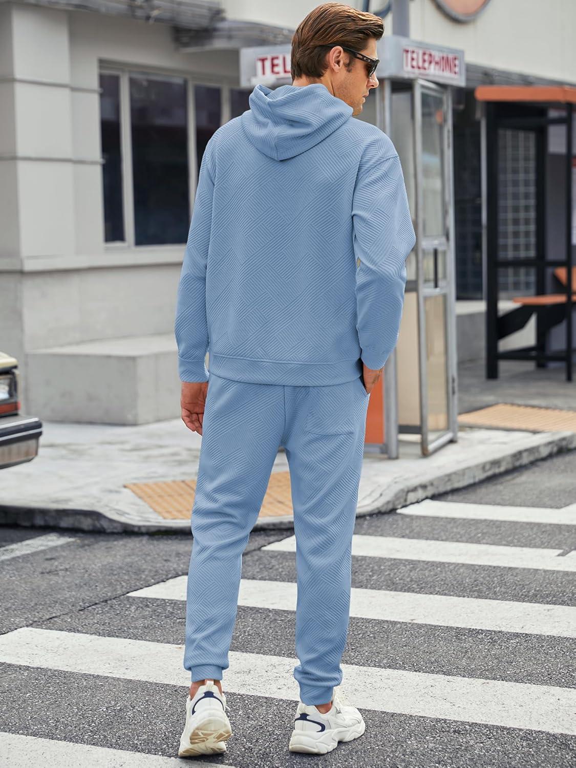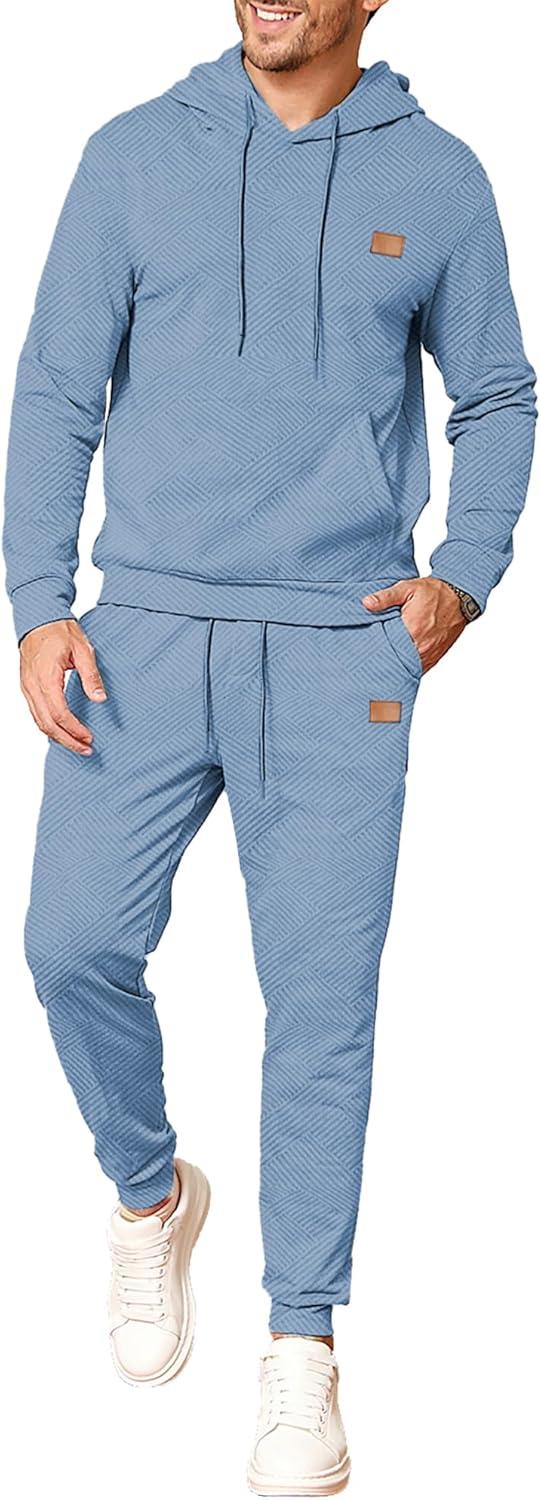 JMIERR Mens 2 Piece Jacquard Sweatsuit Outfits Hoodie Sweatshirt & Joggers Sweatpants Set Tracksuit(Light Blue)