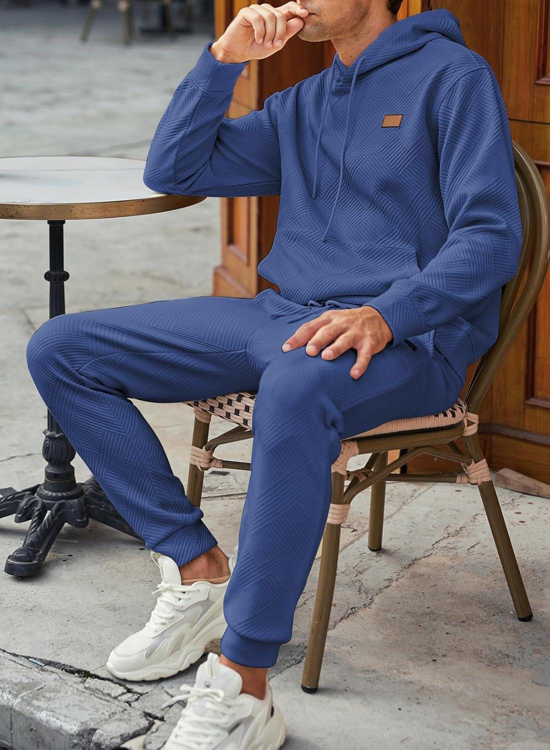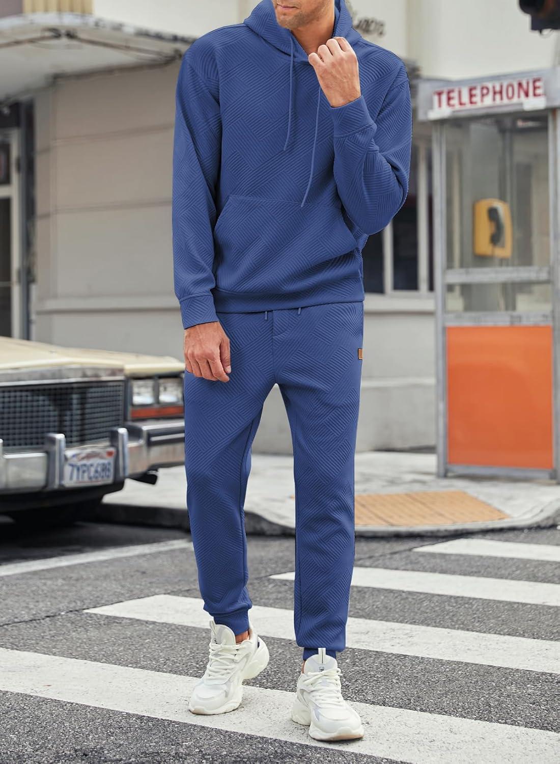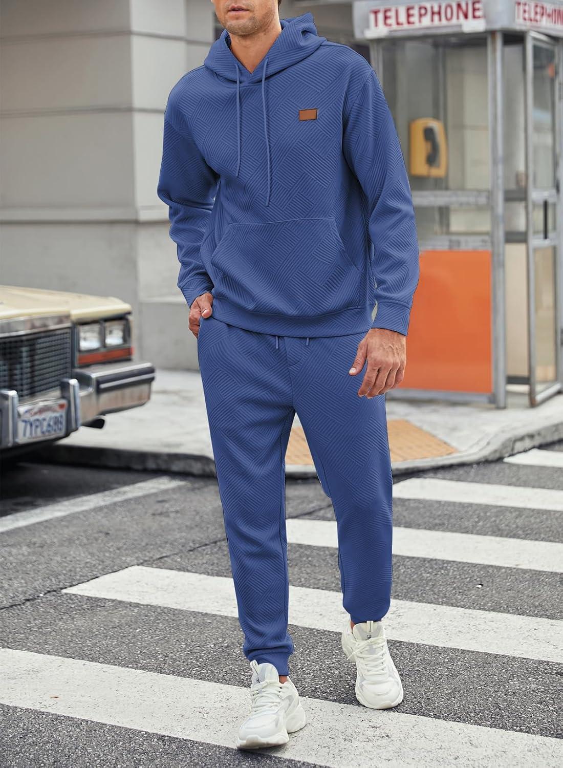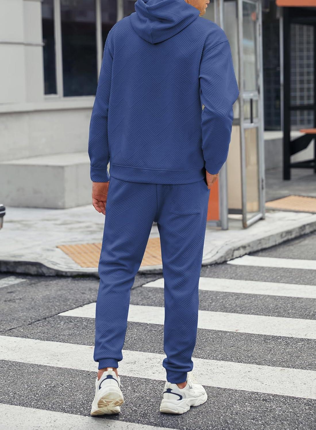 JMIERR Mens 2 Piece Jacquard Sweatsuit Outfits Hoodie Sweatshirt & Joggers Sweatpants Set Tracksuit