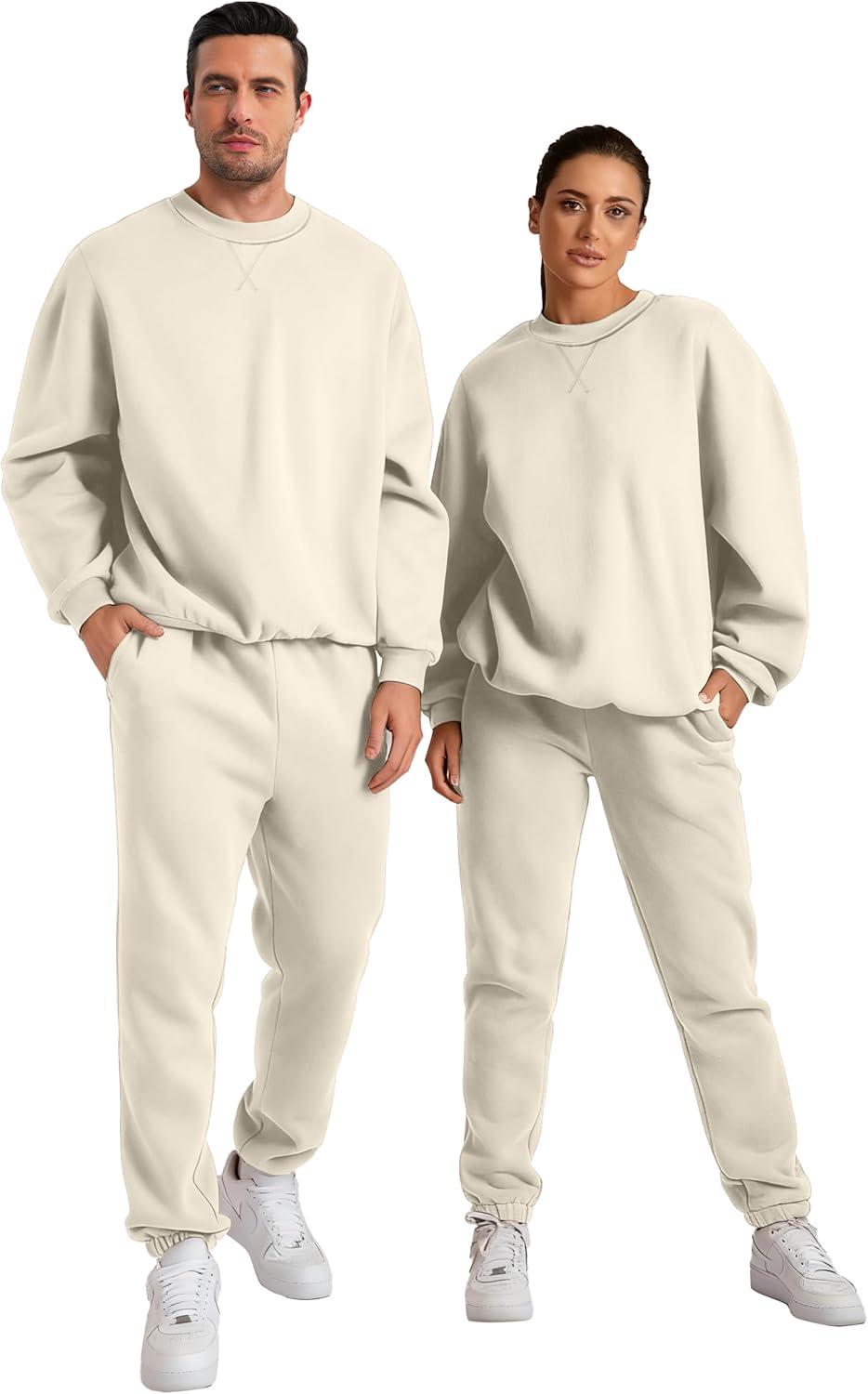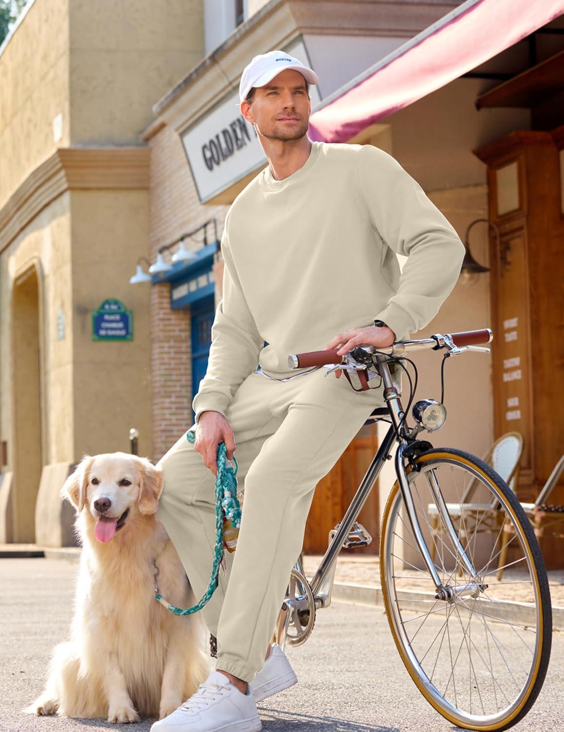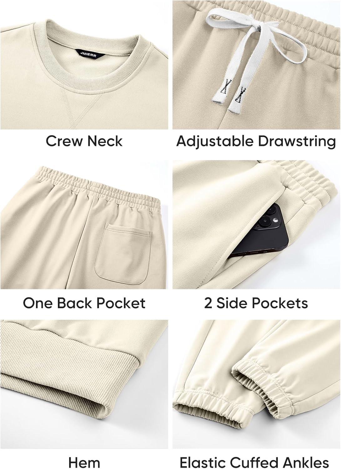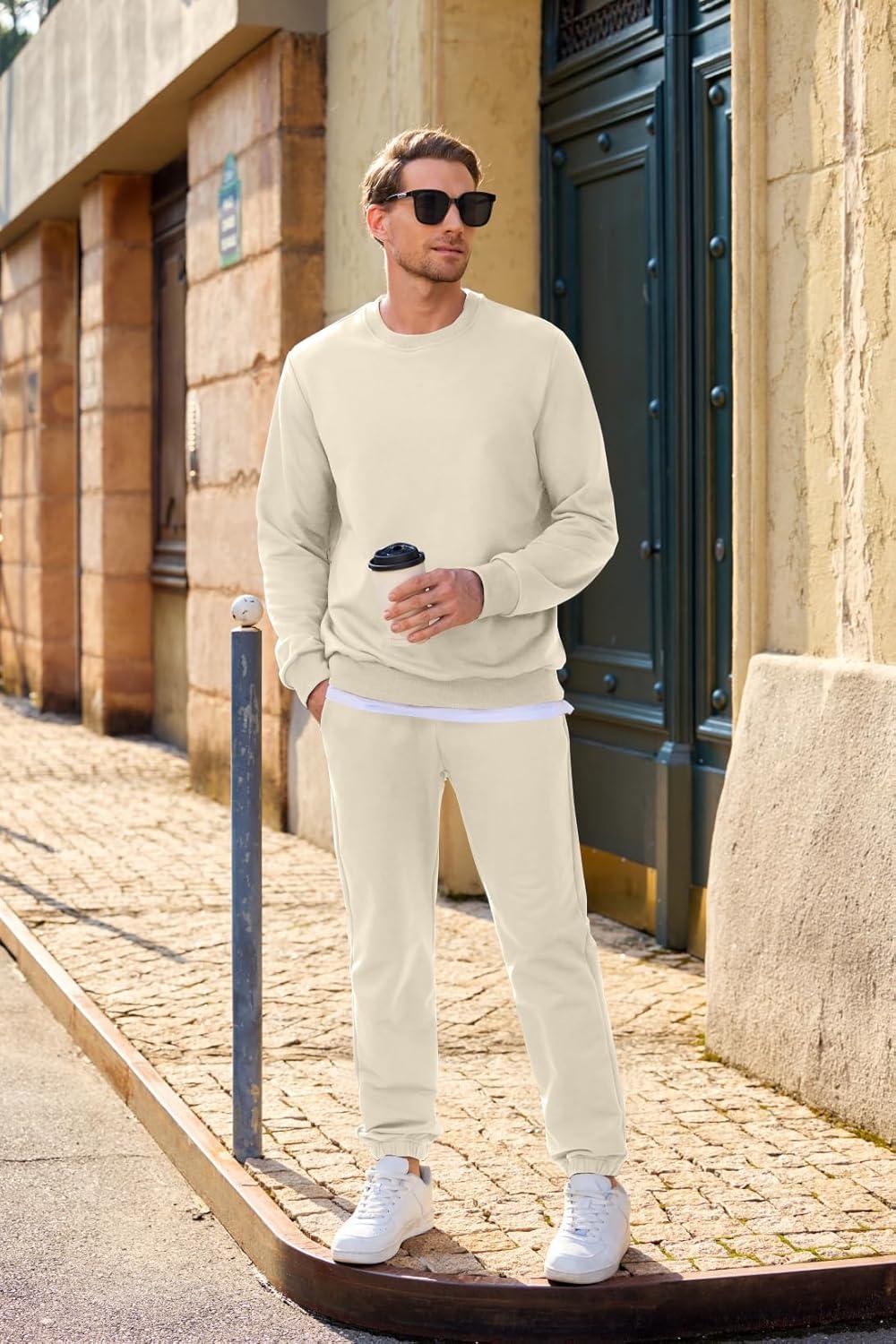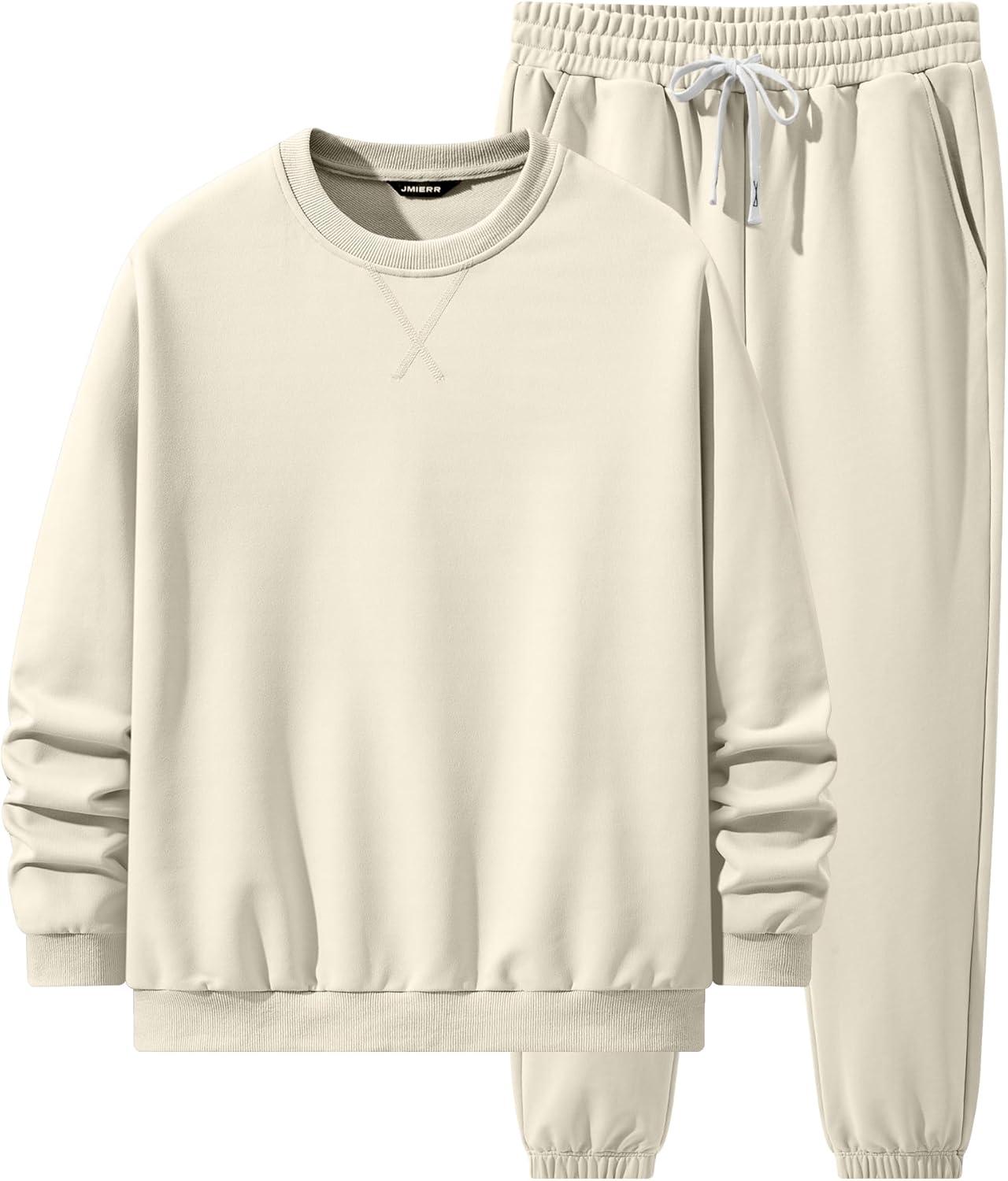 JMIERR Men’s 2 Piece Outfits Crew Neck Sweatshirt Tracksuit & Joggers Sweatpants Sweatsuit Set(Cream)