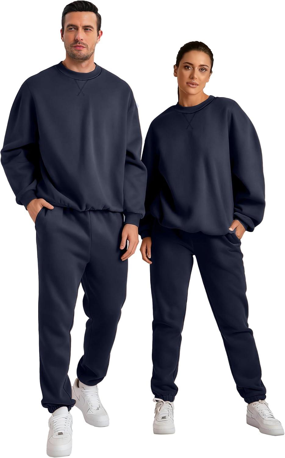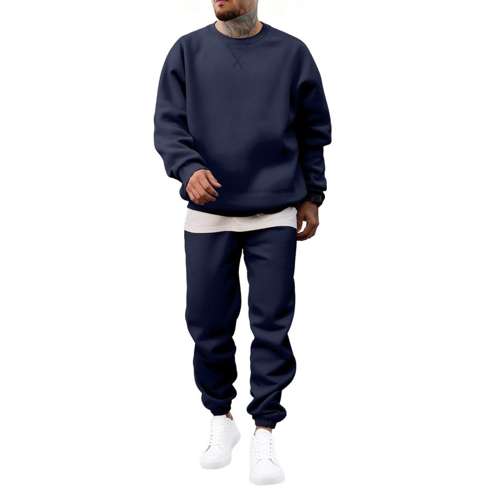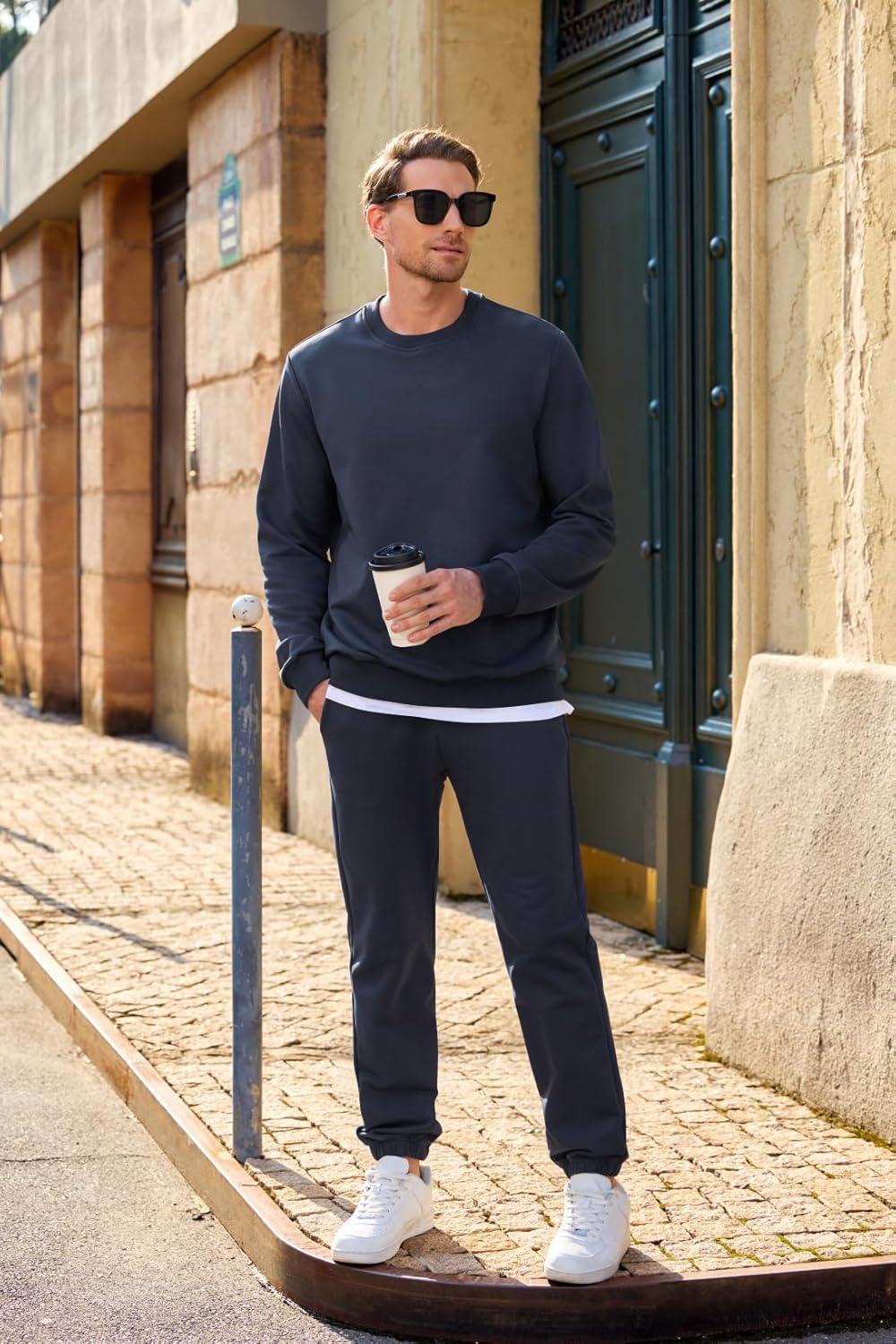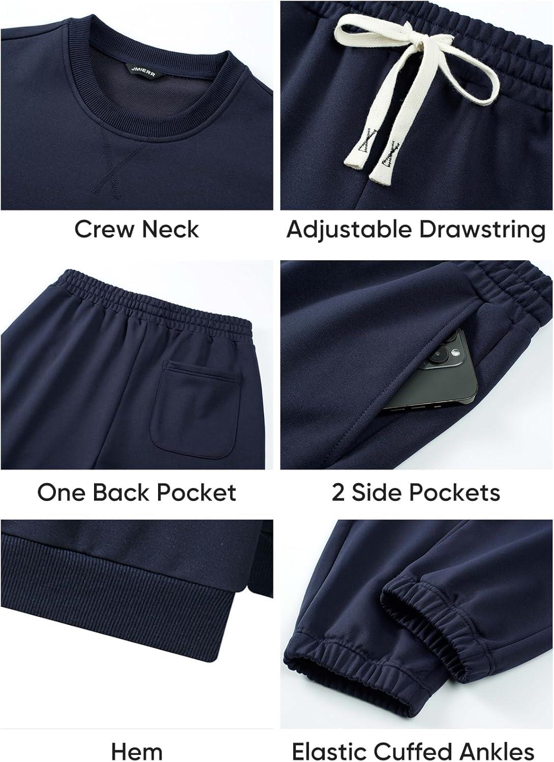 JMIERR Men’s 2 Piece Outfits Crew Neck Sweatshirt Tracksuit & Joggers Sweatpants Sweatsuit Set(Navy Blue)