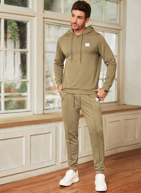 JMIERR Men’s 2 Piece Outfits Hoodie Sweatshirt Tracksuit & Joggers Sweatpants Sweatsuit Set(A Khaki)