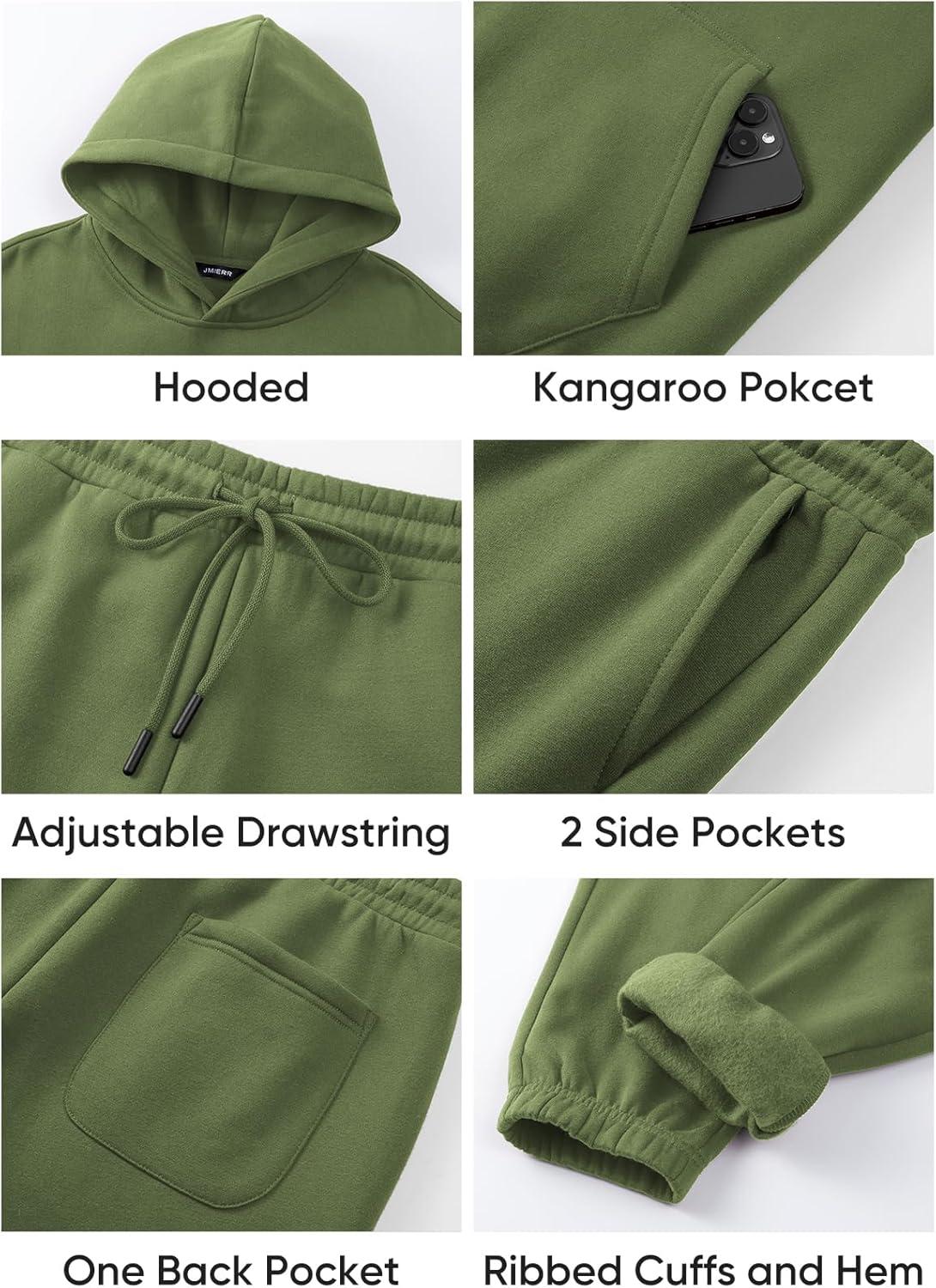 JMIERR Men’s 2 Piece Outfits Hoodie Sweatshirt Tracksuit & Joggers Sweatpants Sweatsuit Set(Avocado Green)