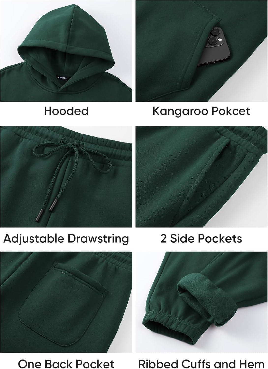 JMIERR Men’s 2 Piece Outfits Hoodie Sweatshirt Tracksuit & Joggers Sweatpants Sweatsuit Set(Dark Green)
