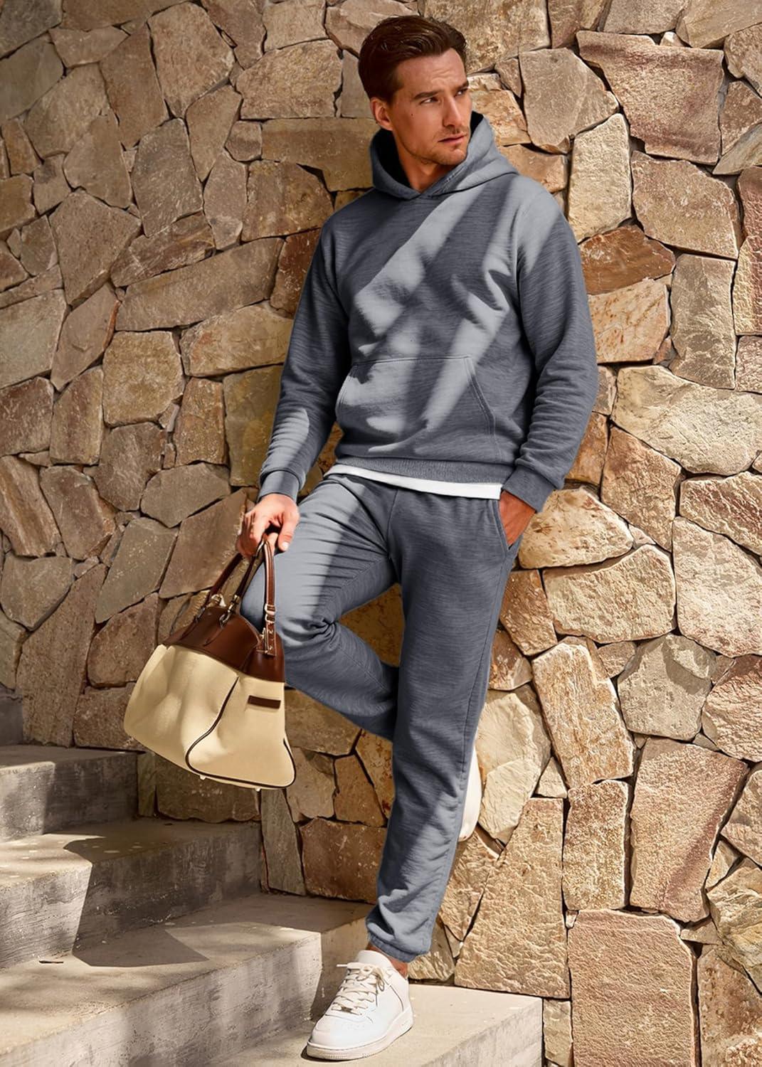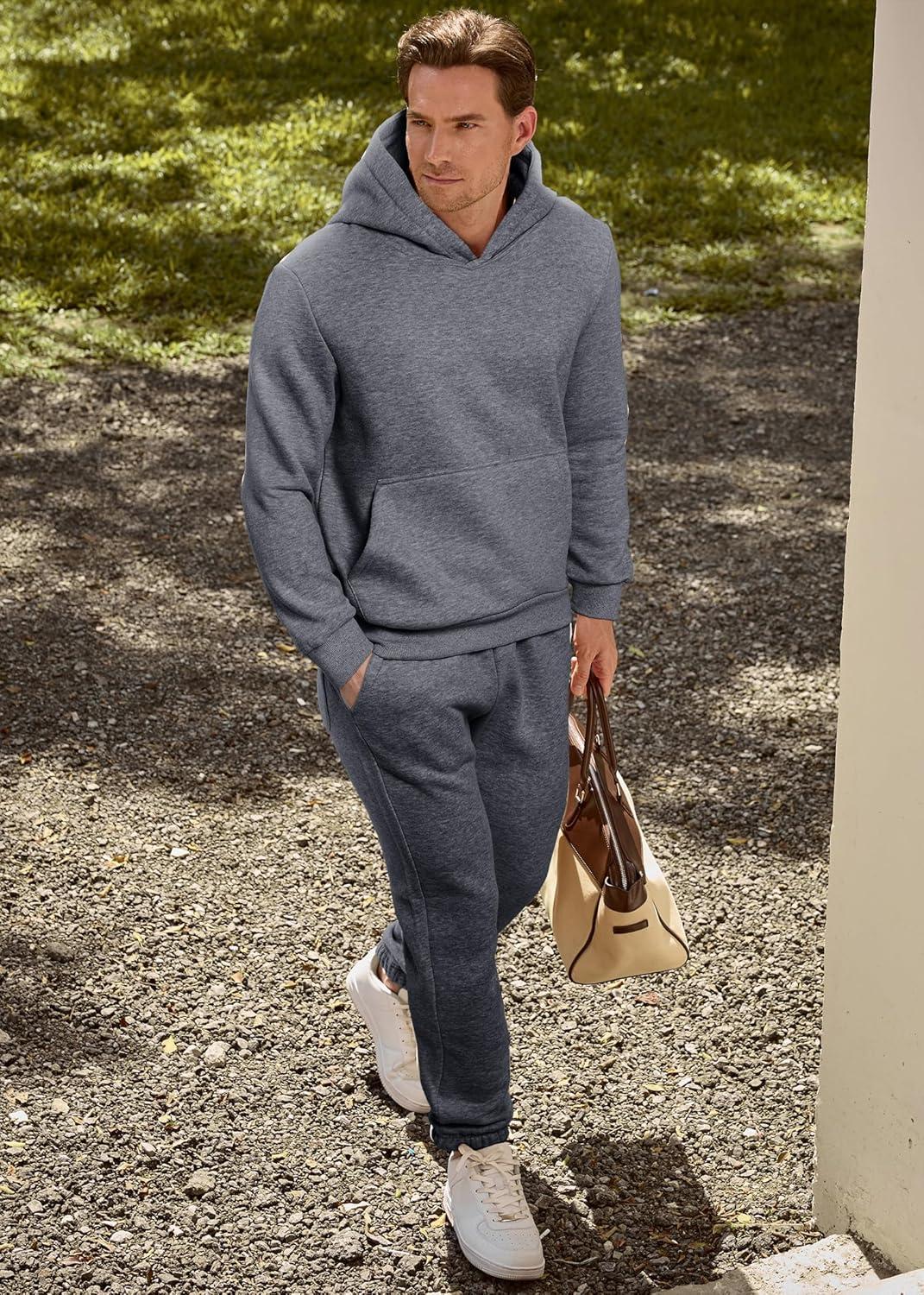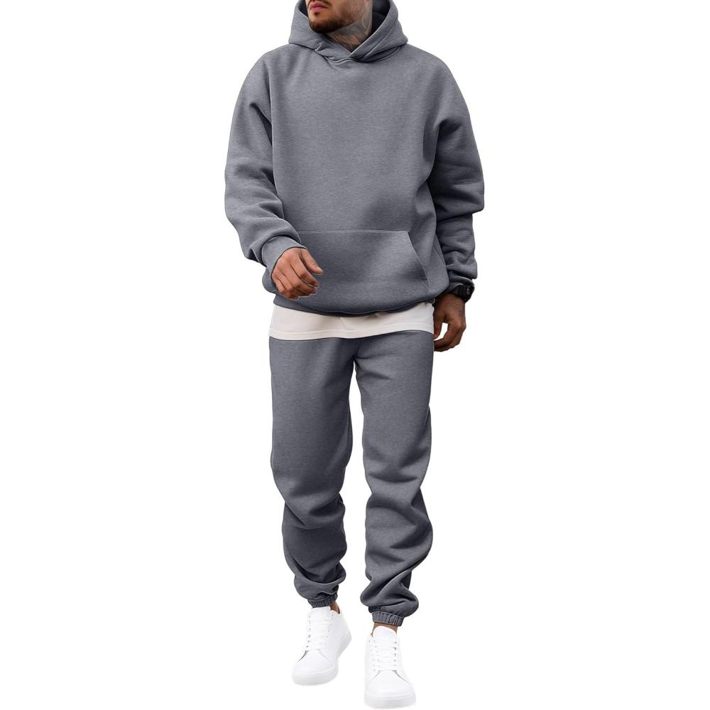 JMIERR Men’s 2 Piece Outfits Hoodie Sweatshirt Tracksuit & Joggers Sweatpants Sweatsuit Set(Medium Grey)