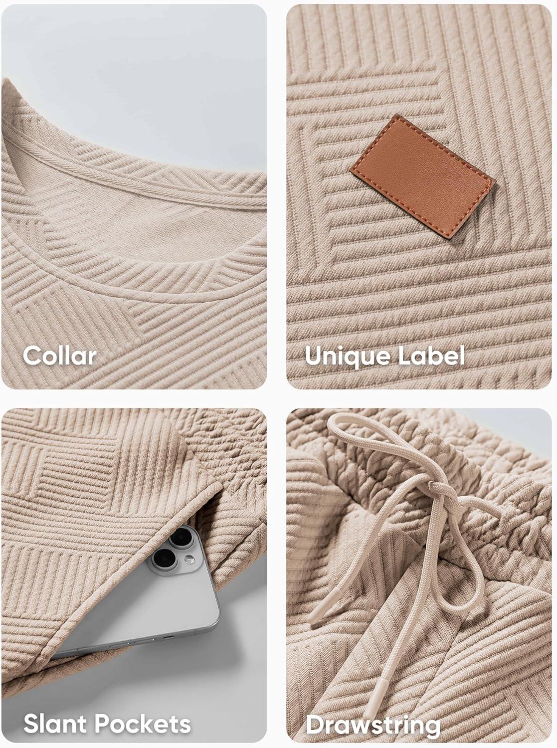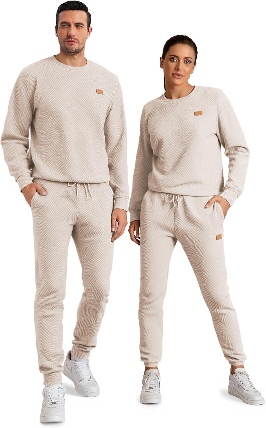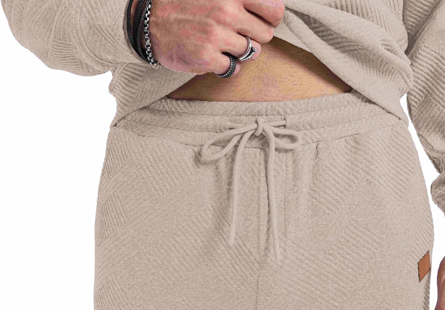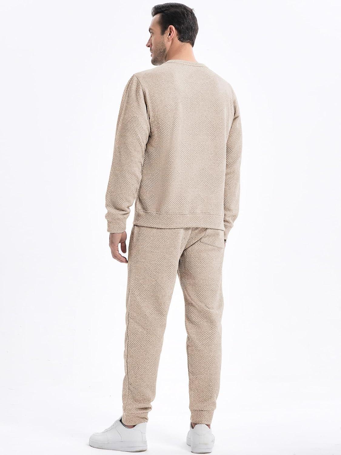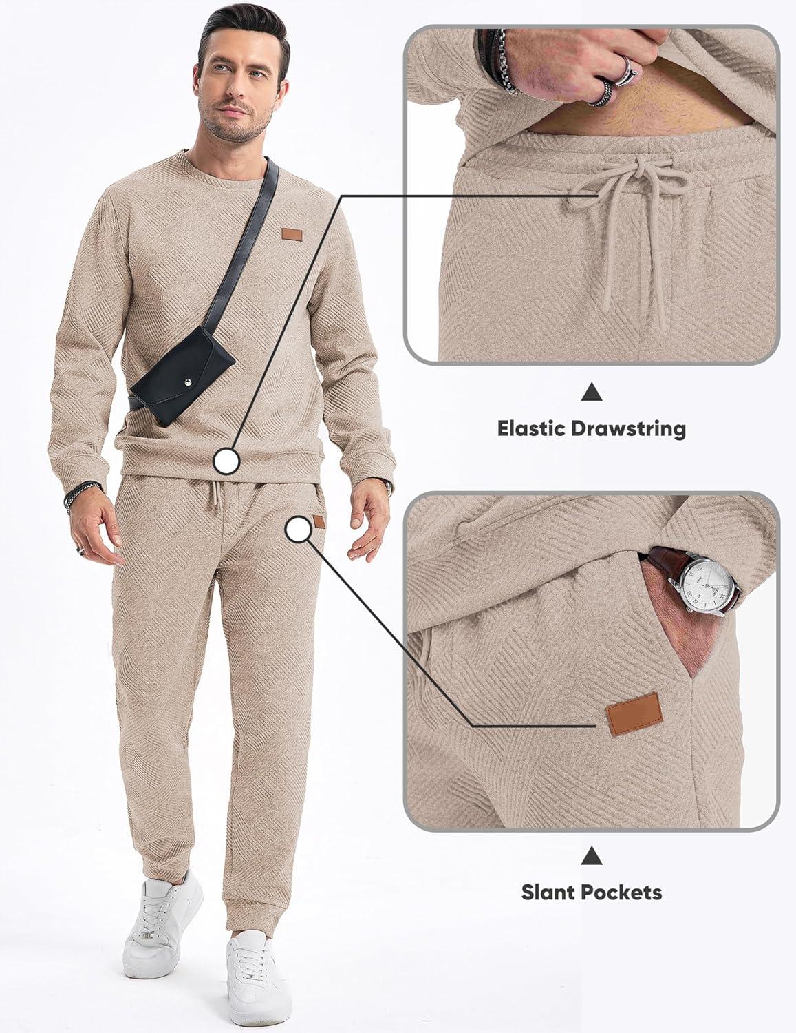 JMIERR Men’s 2 Piece Outfits Knit Jacquard Pullover Sweatshirt Tracksuit & Joggers Sweatpants Sweatsuit Sets with Pockets(Beige)