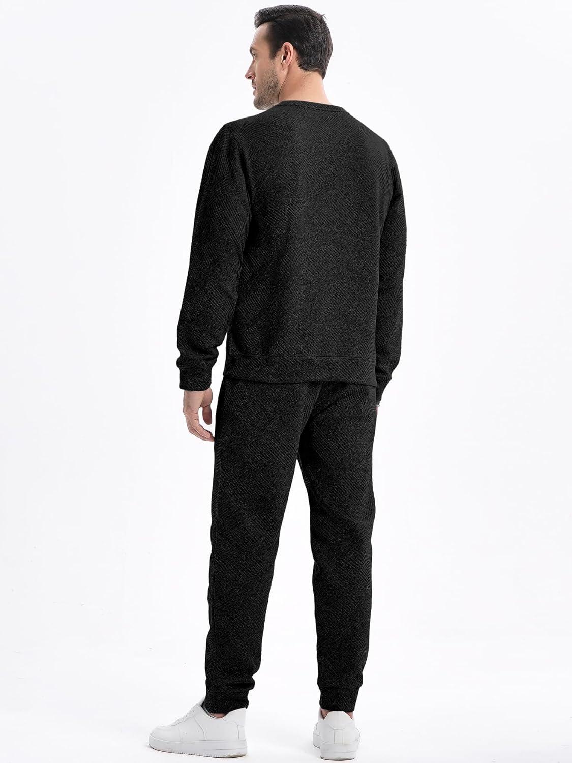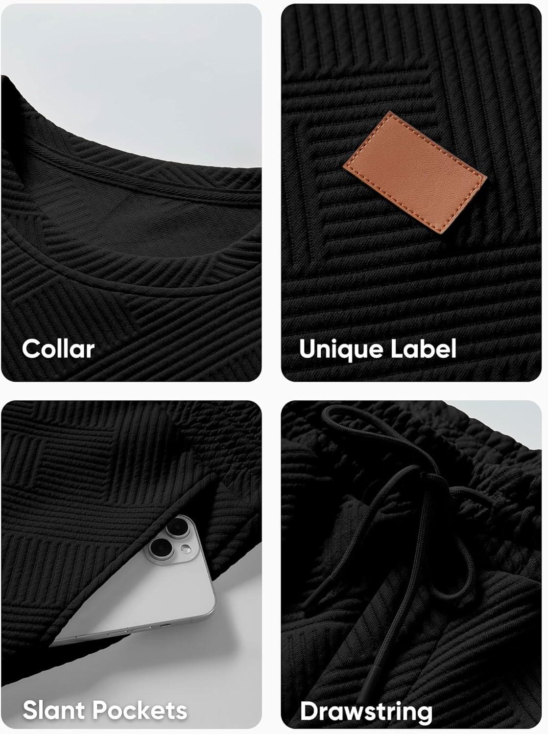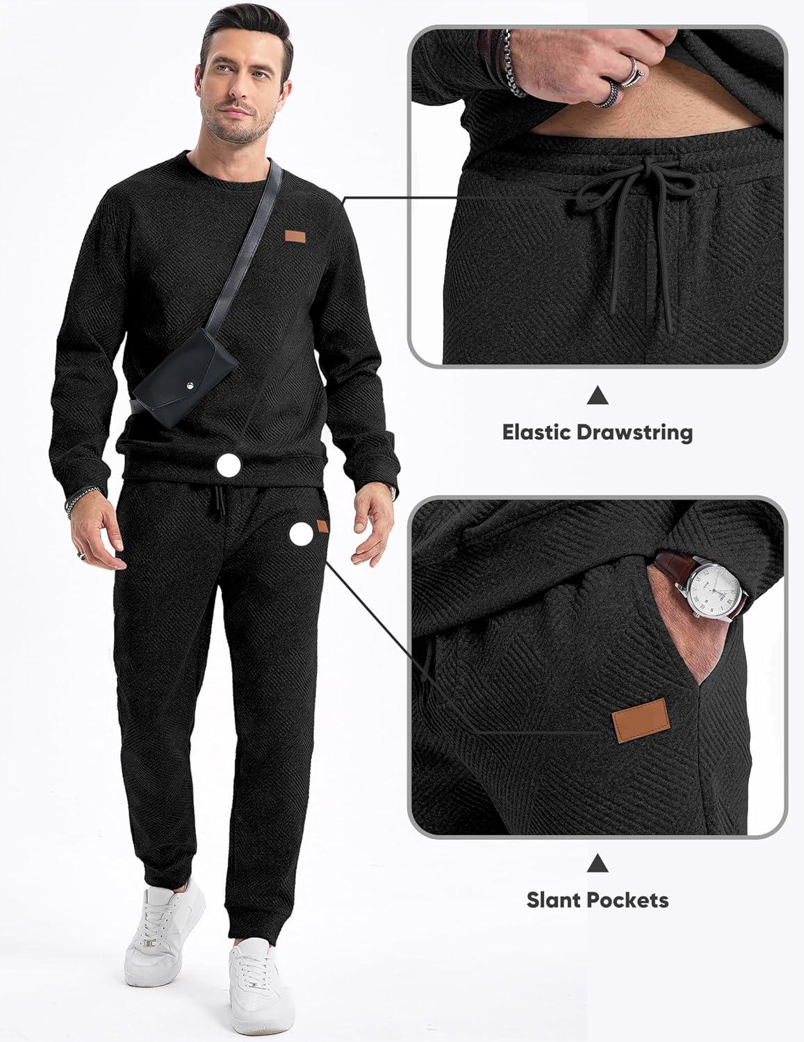 JMIERR Men’s 2 Piece Outfits Knit Jacquard Pullover Sweatshirt Tracksuit & Joggers Sweatpants Sweatsuit Sets with Pockets(Black)