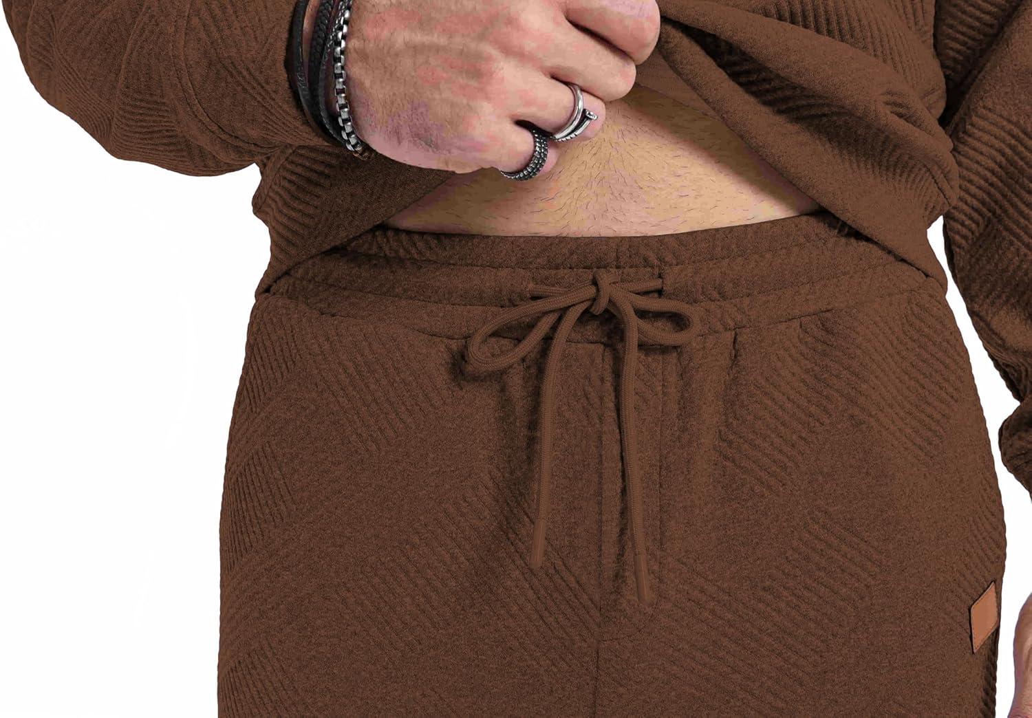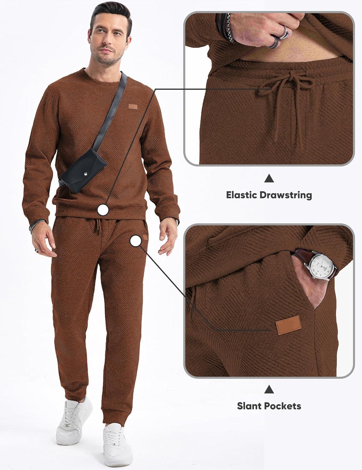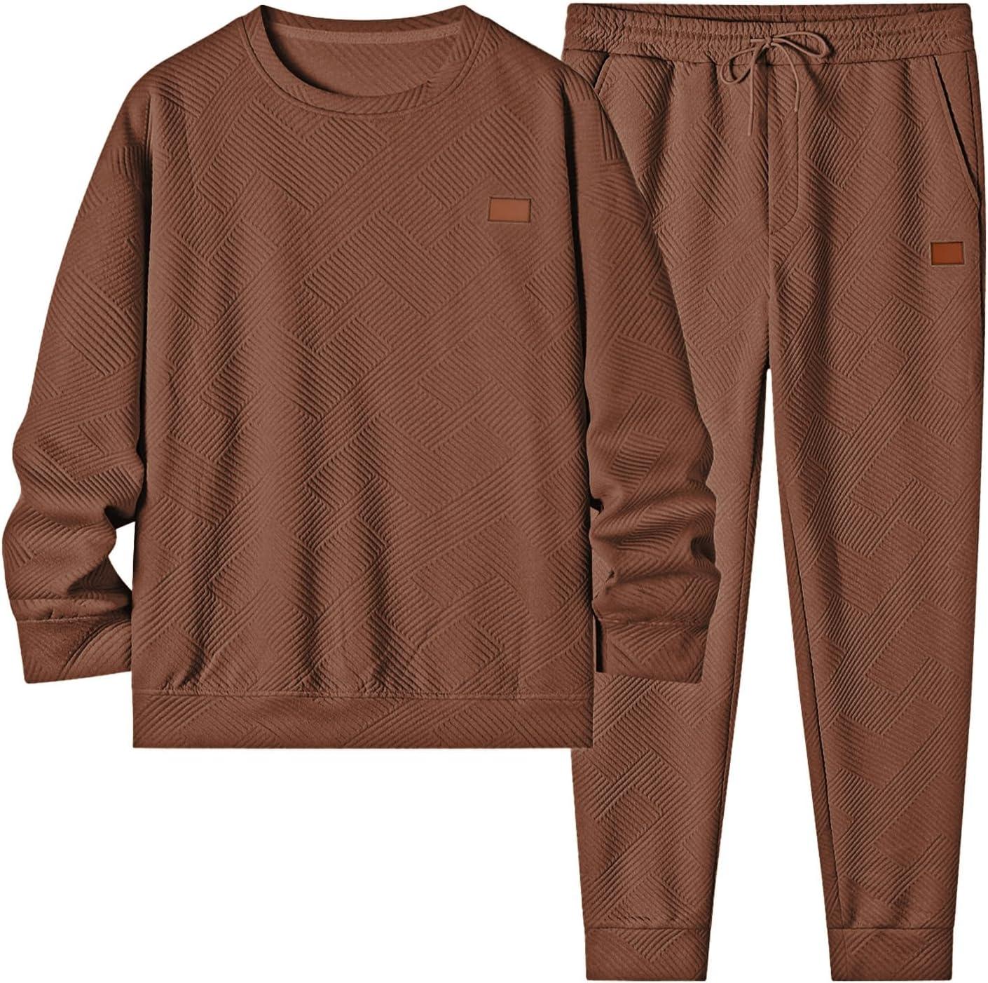 JMIERR Men’s 2 Piece Outfits Knit Jacquard Pullover Sweatshirt Tracksuit & Joggers Sweatpants Sweatsuit Sets with Pockets(Brown)