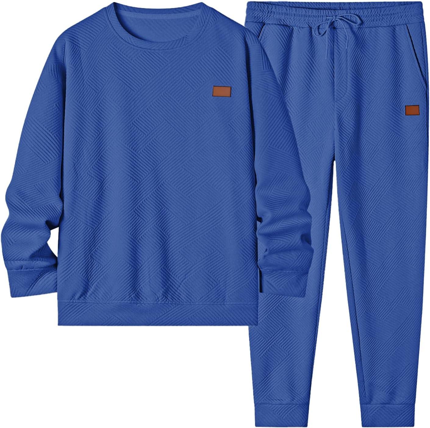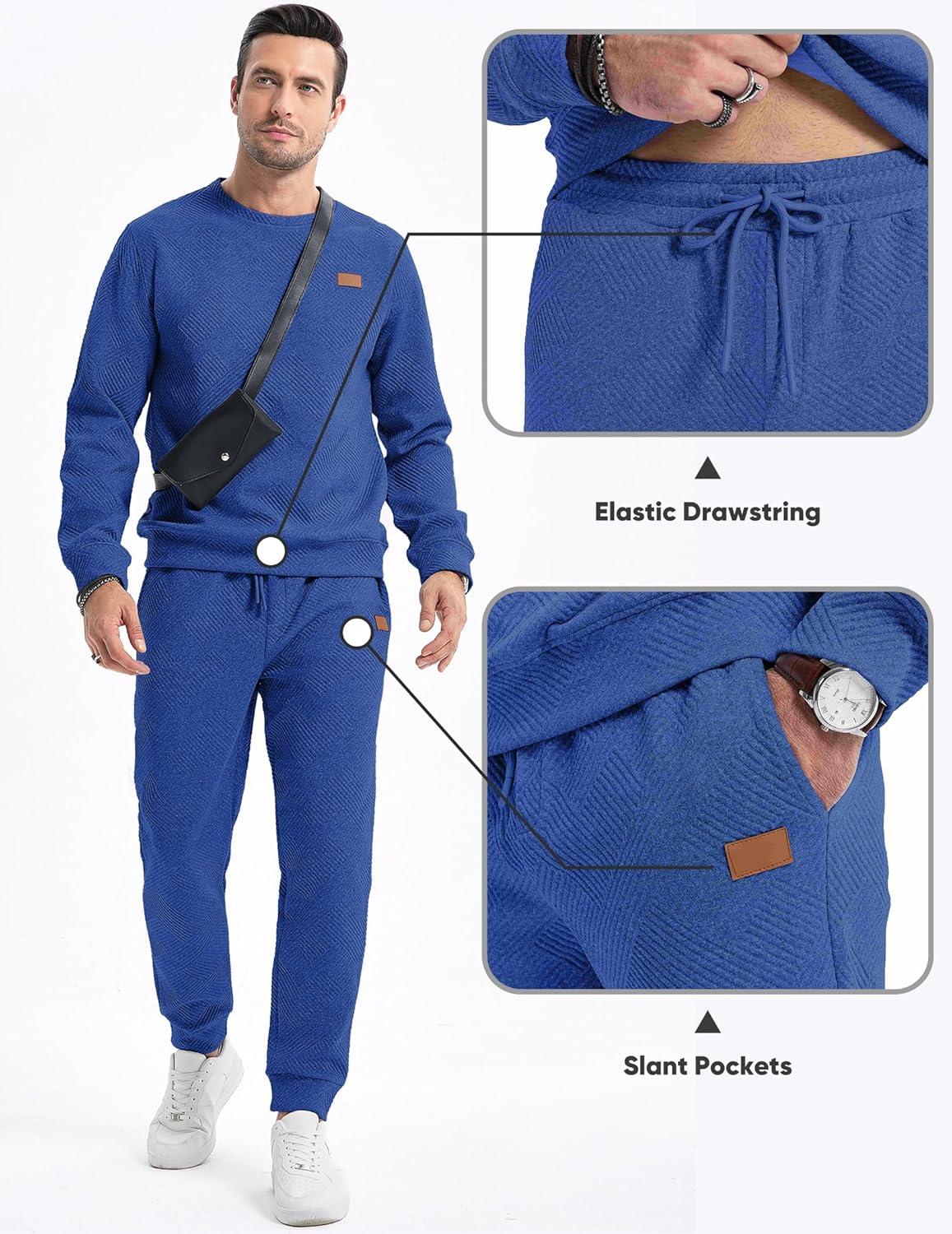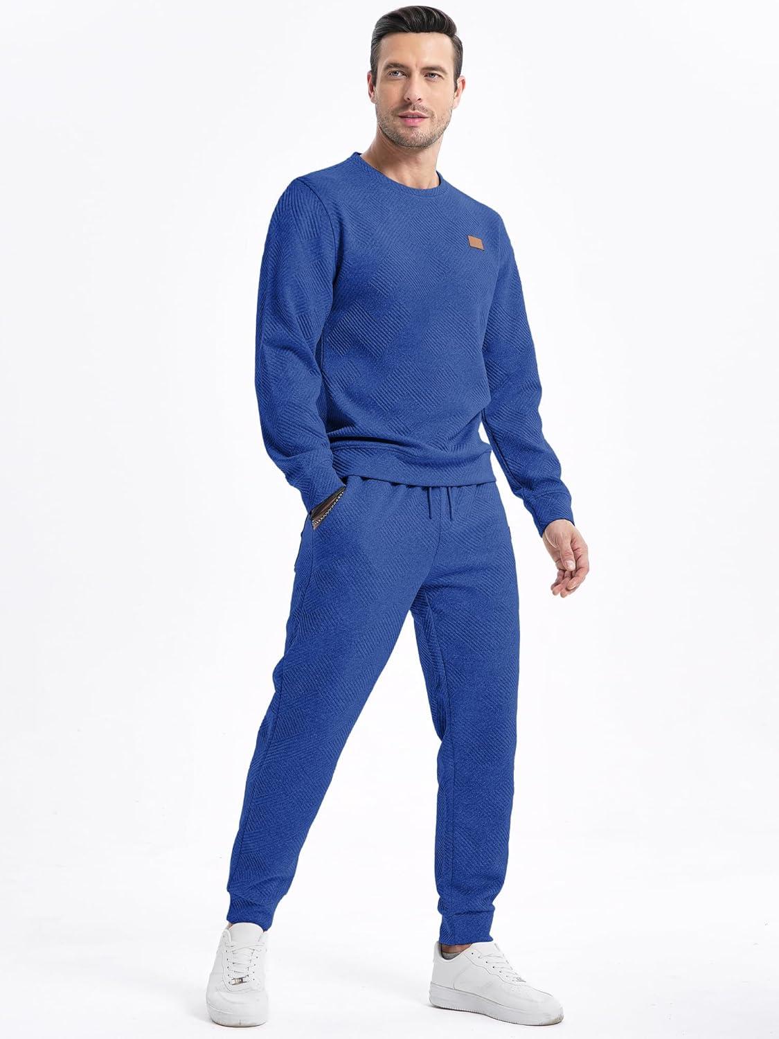 JMIERR Men’s 2 Piece Outfits Knit Jacquard Pullover Sweatshirt Tracksuit & Joggers Sweatpants Sweatsuit Sets with Pockets(Dark Blue)