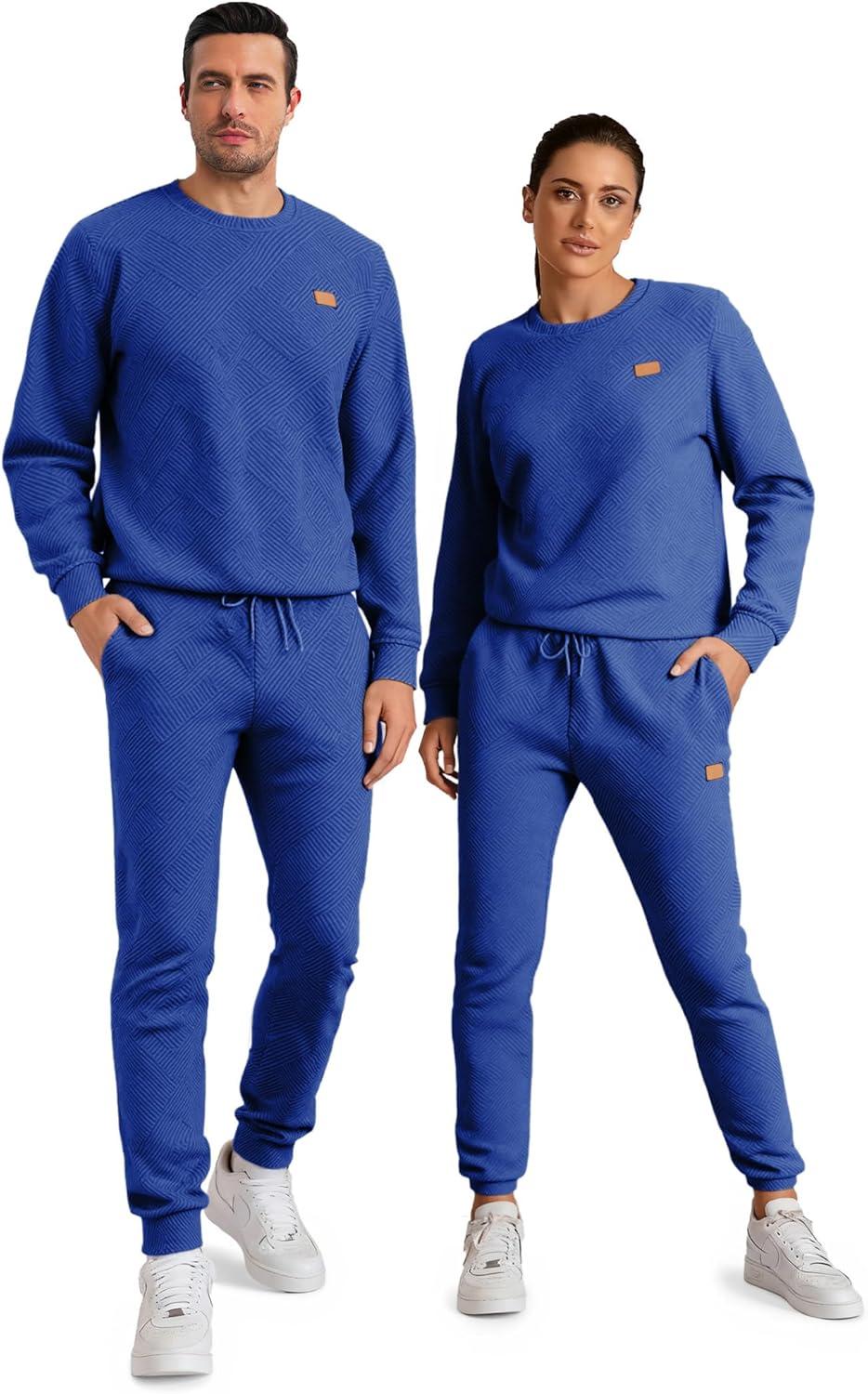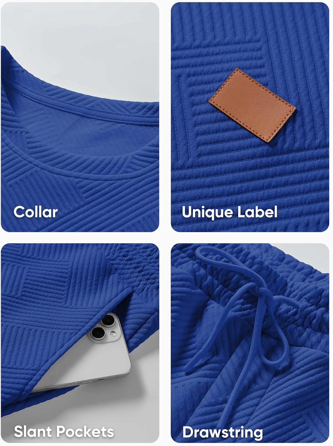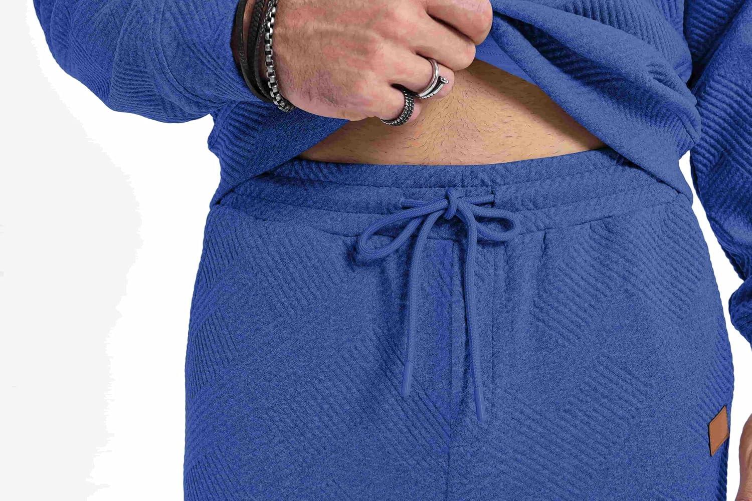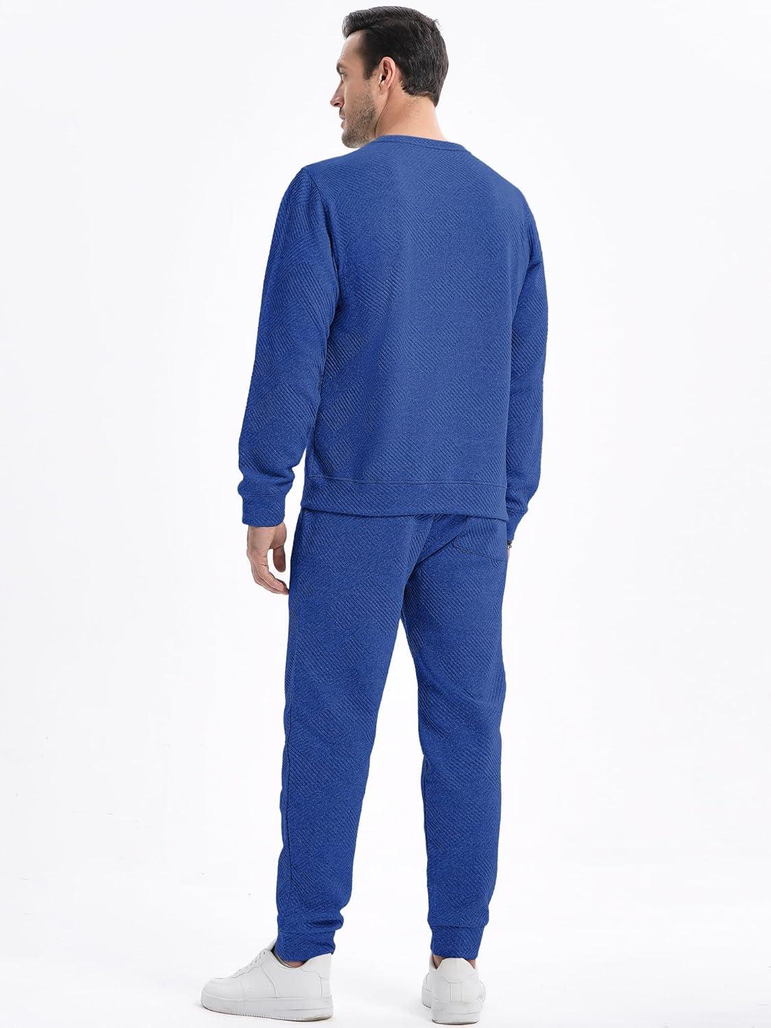 JMIERR Men’s 2 Piece Outfits Knit Jacquard Pullover Sweatshirt Tracksuit & Joggers Sweatpants Sweatsuit Sets with Pockets(Dark Blue)