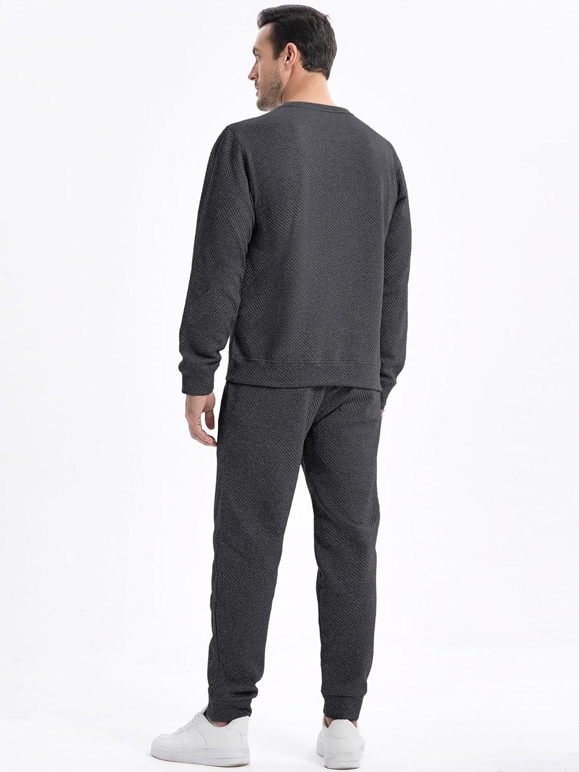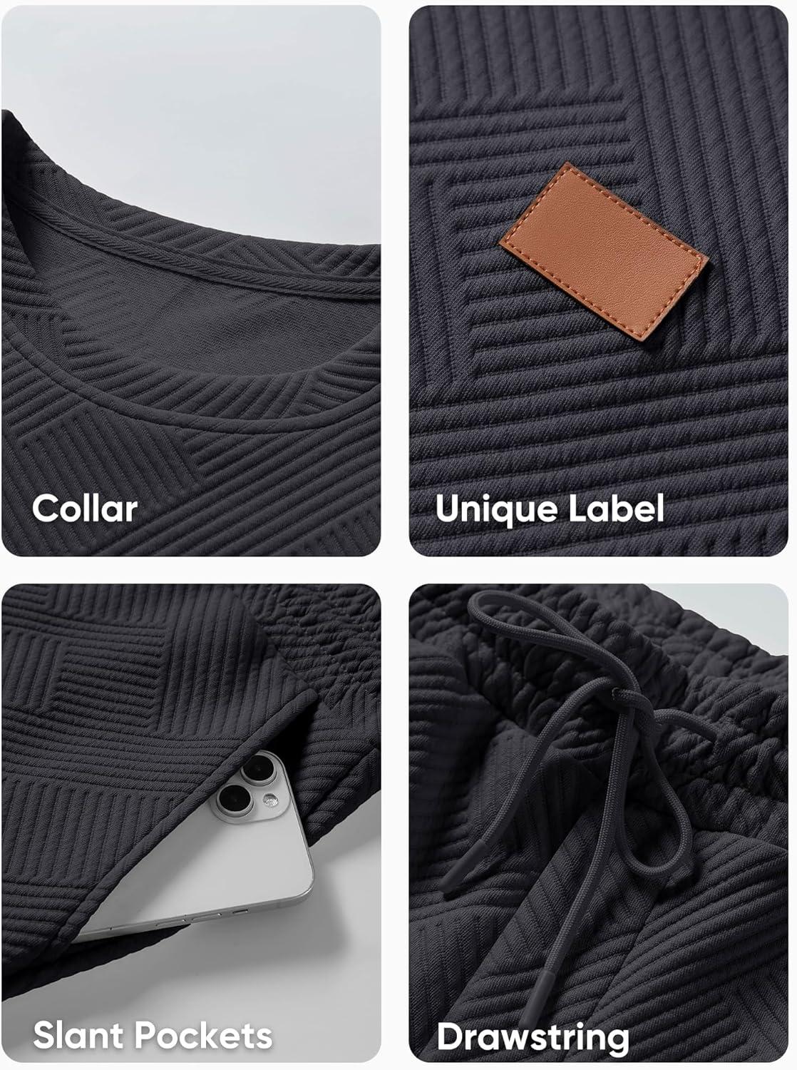 JMIERR Men’s 2 Piece Outfits Knit Jacquard Pullover Sweatshirt Tracksuit & Joggers Sweatpants Sweatsuit Sets with Pockets(Dark Grey)