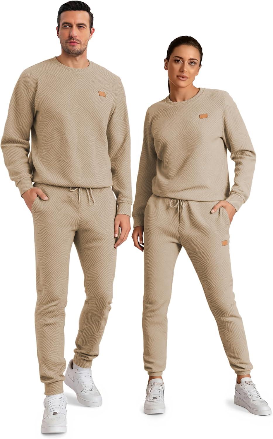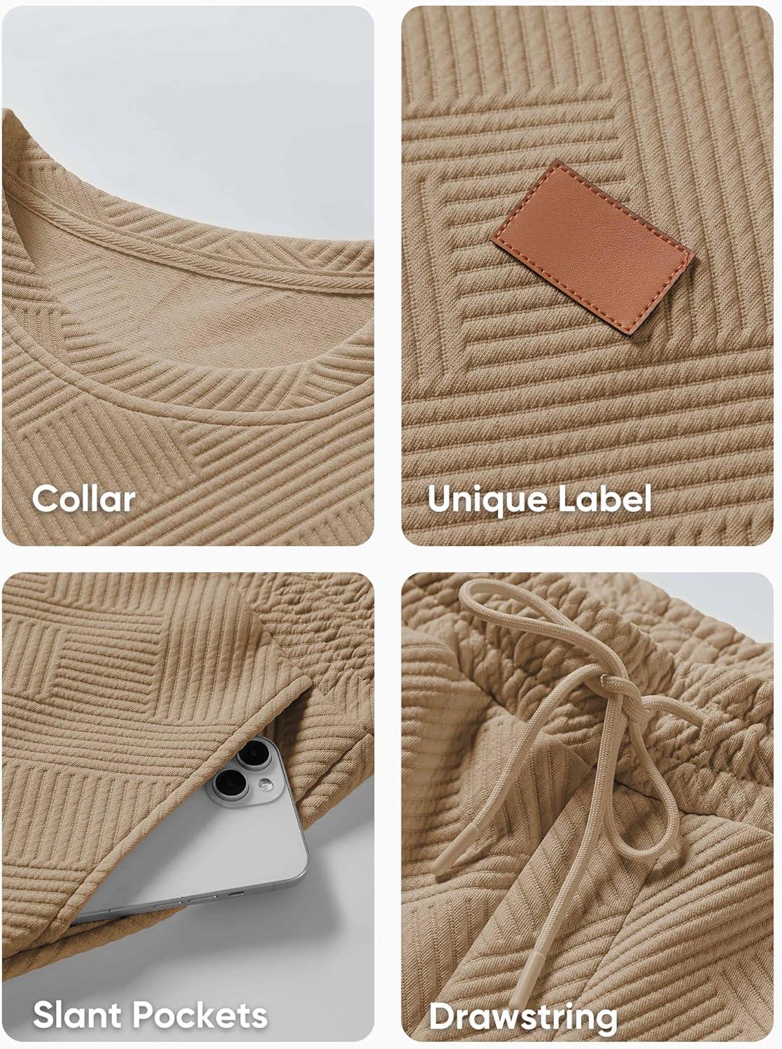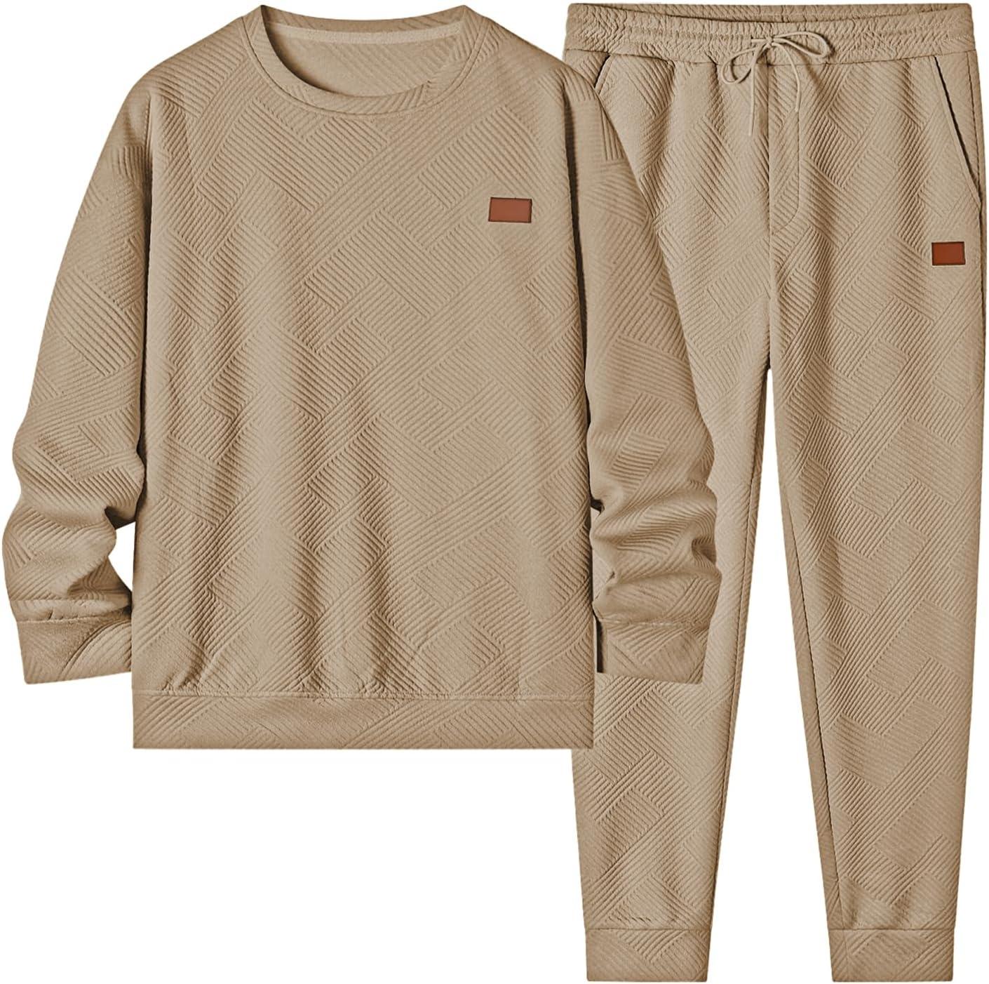 JMIERR Men’s 2 Piece Outfits Knit Jacquard Pullover Sweatshirt Tracksuit & Joggers Sweatpants Sweatsuit Sets with Pockets(Khaki)