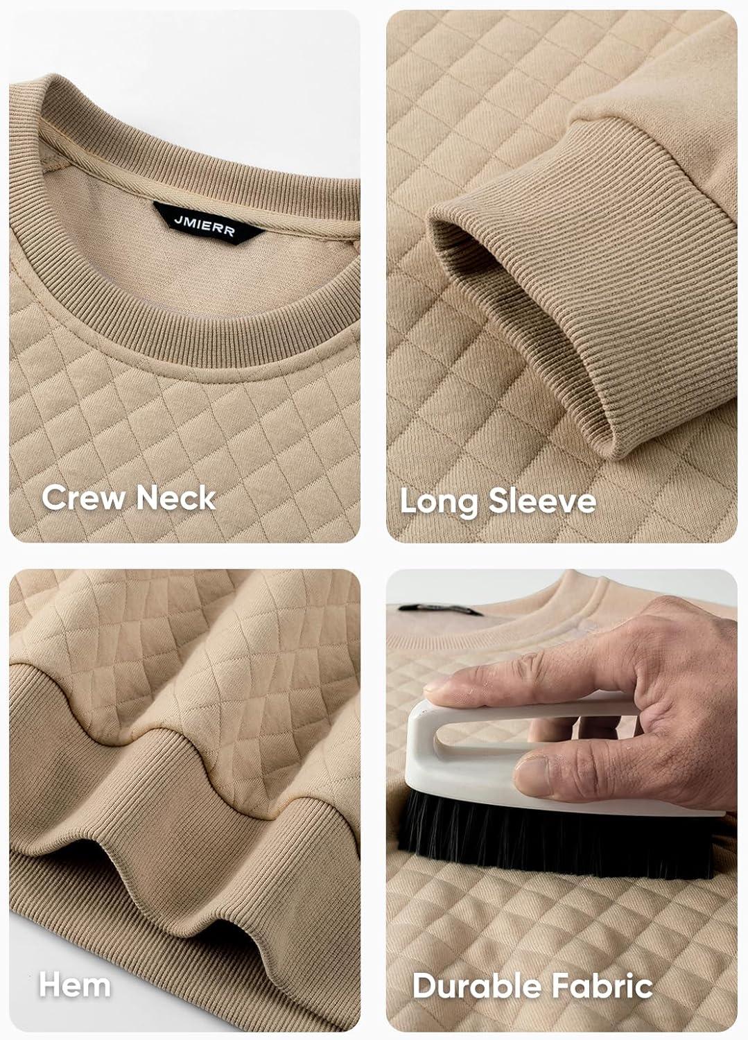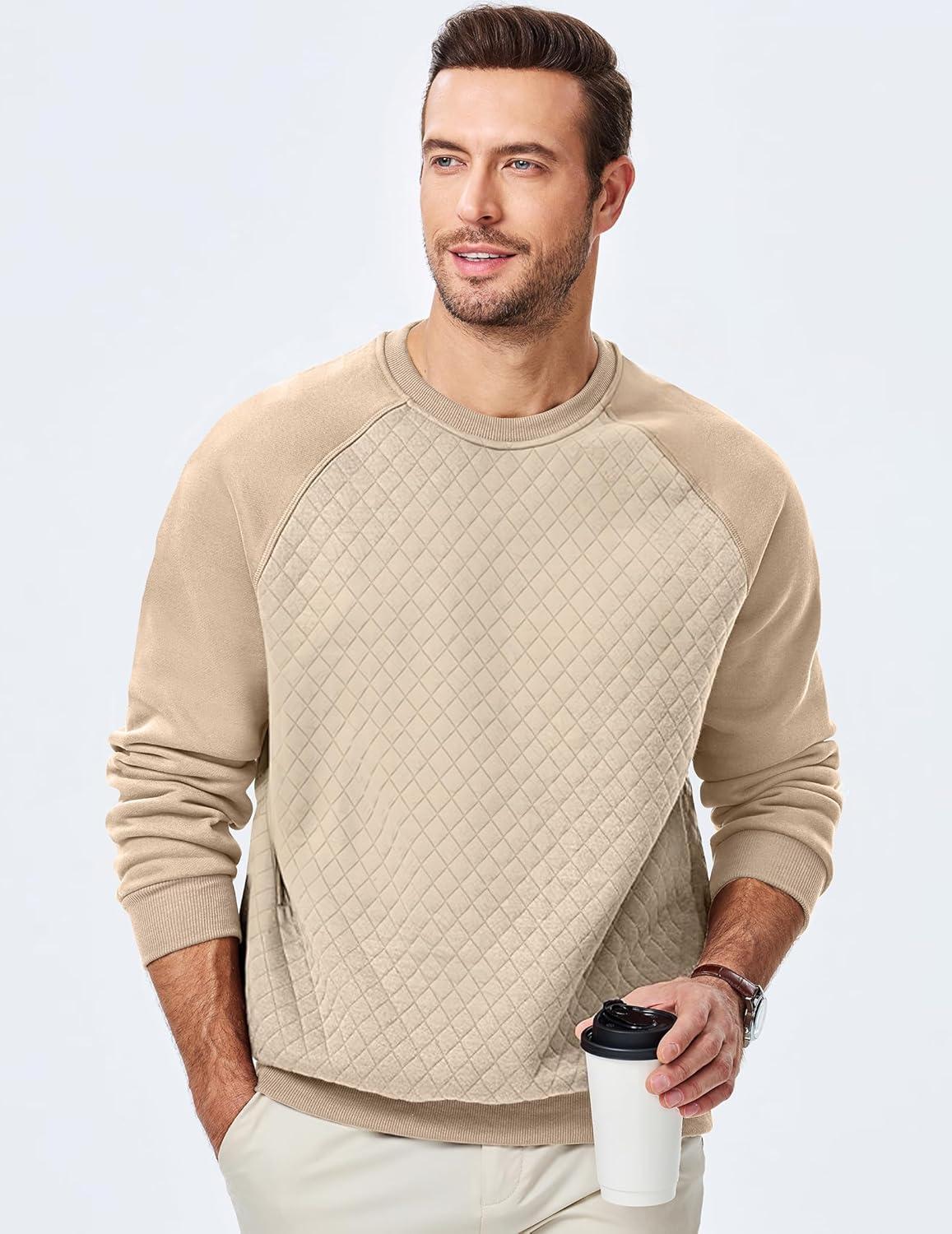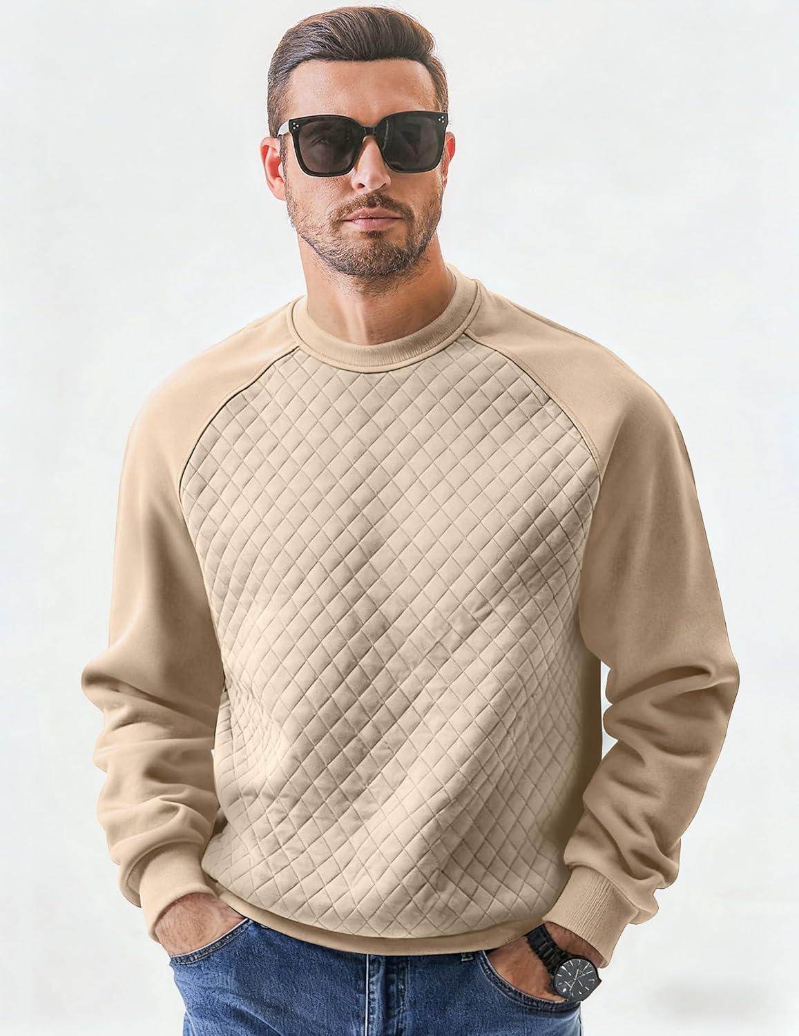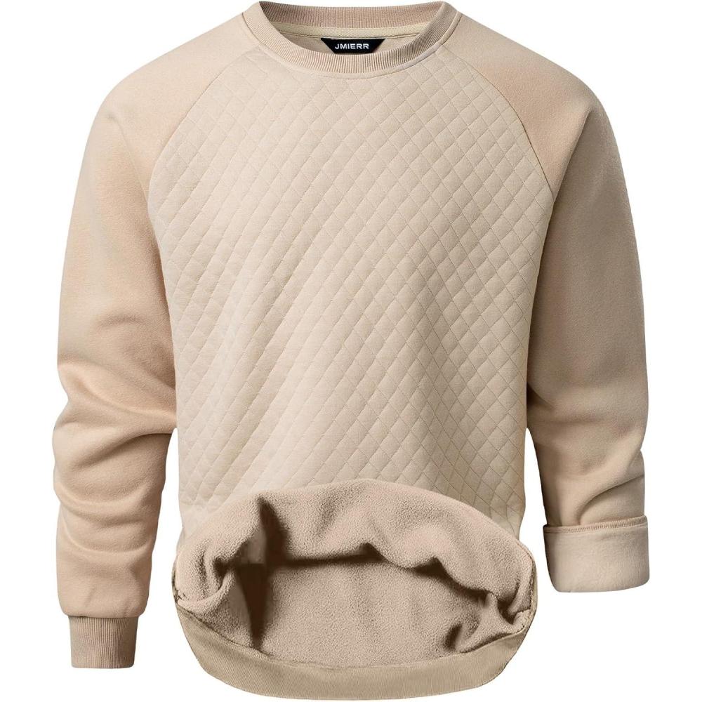 JMIERR Men’s 2025 Casual Crewneck Dress Sweatshirts Pullover Fall Fleece Diamond Texture Warm Winter Comfy Long Sleeve(Beige)