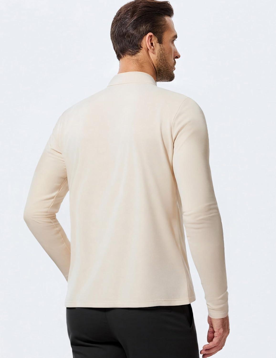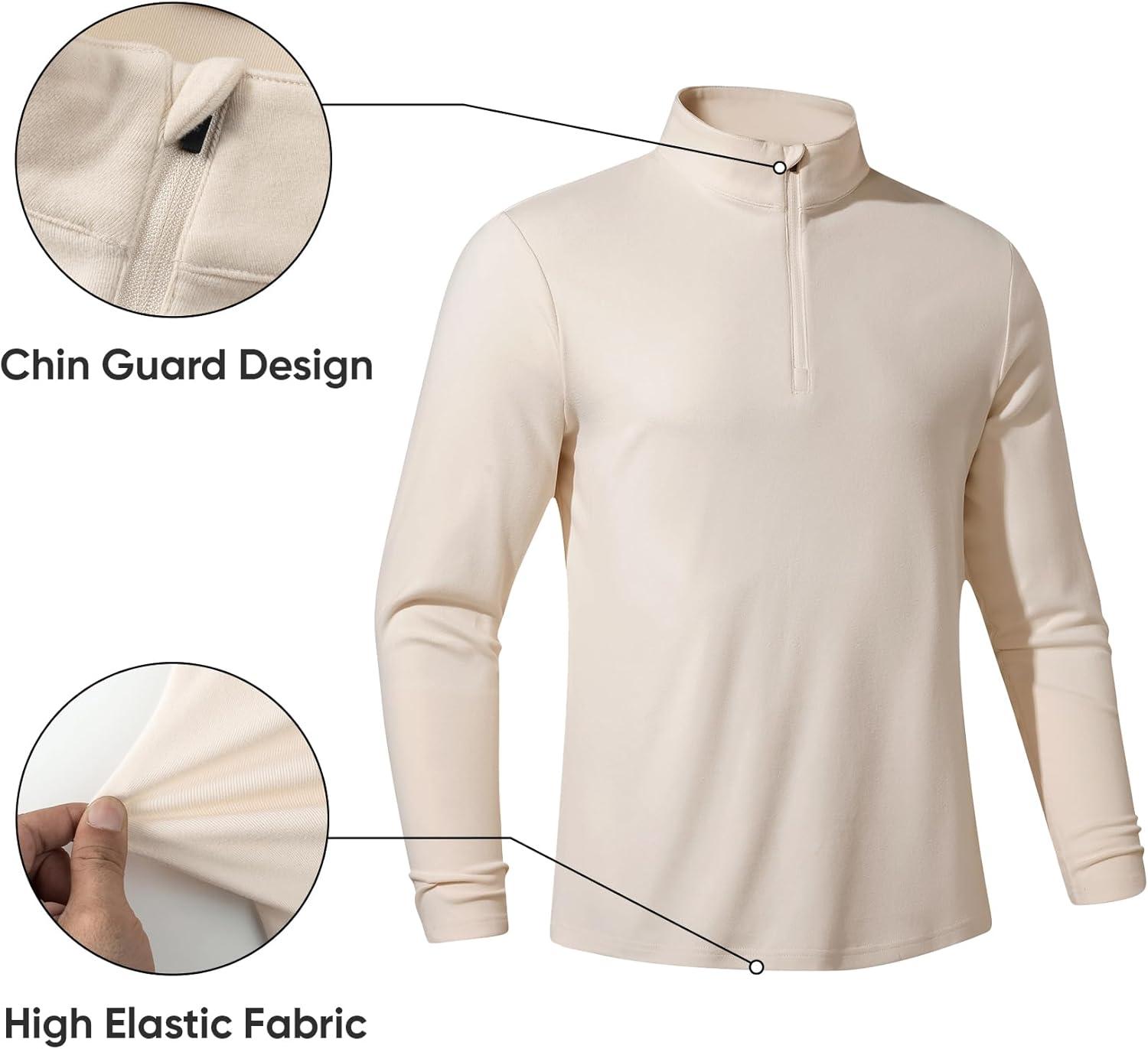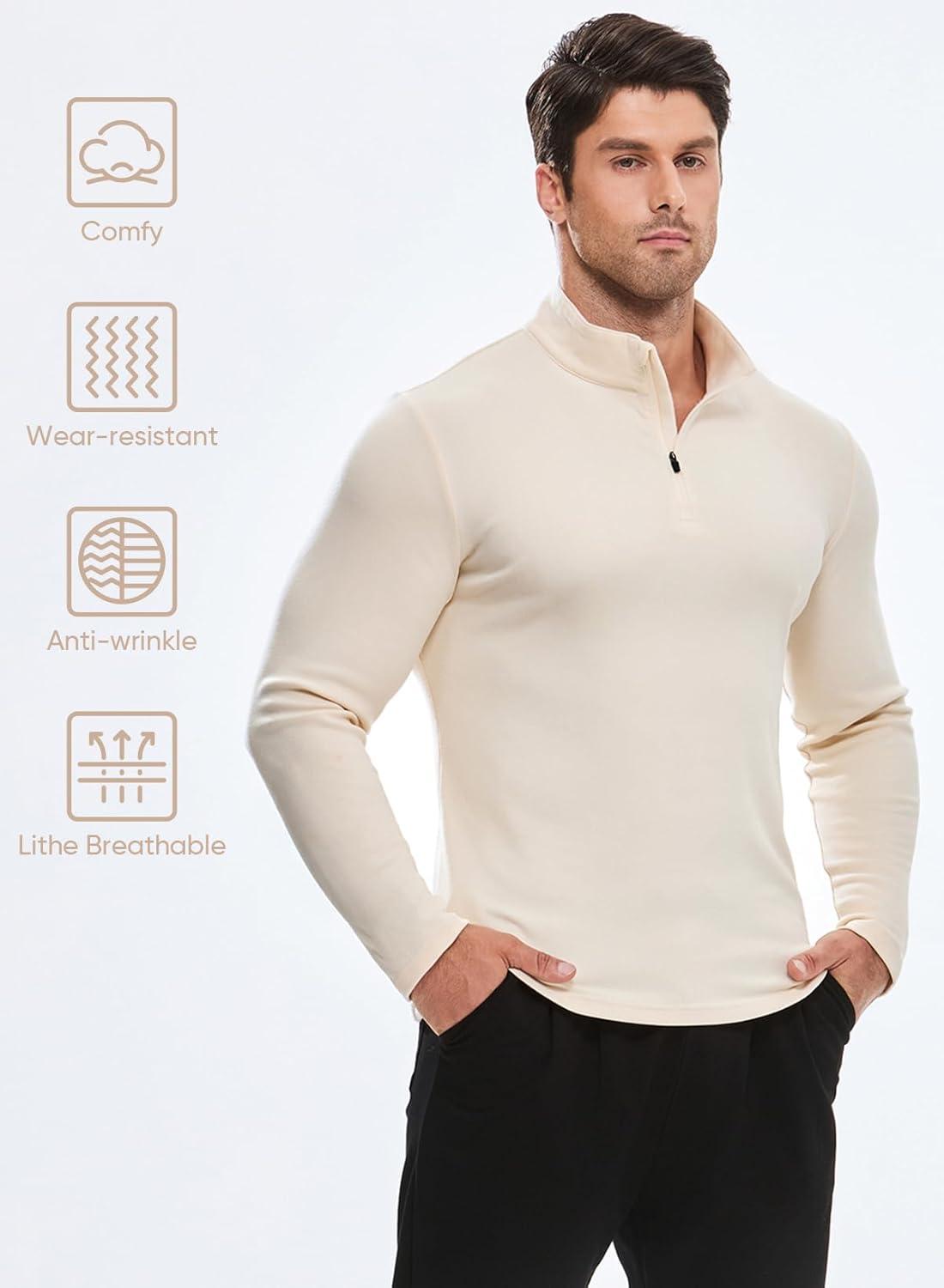 JMIERR Men’s 2025 Casual Quarter Zip Pullover Sweatshirts Stretch Fall Polo Plush Long Sleeve Shirt Comfy Underwear(A Beige)
