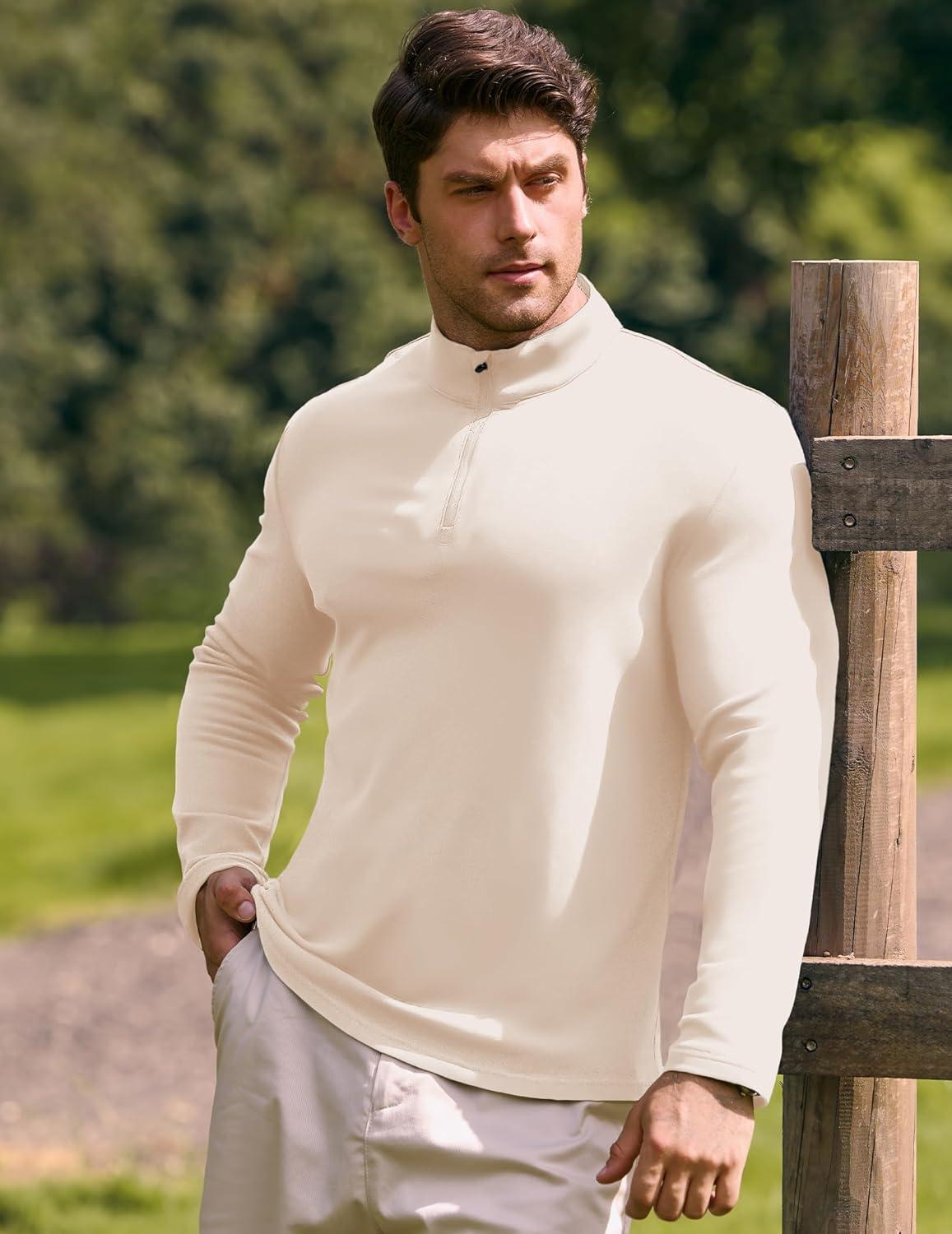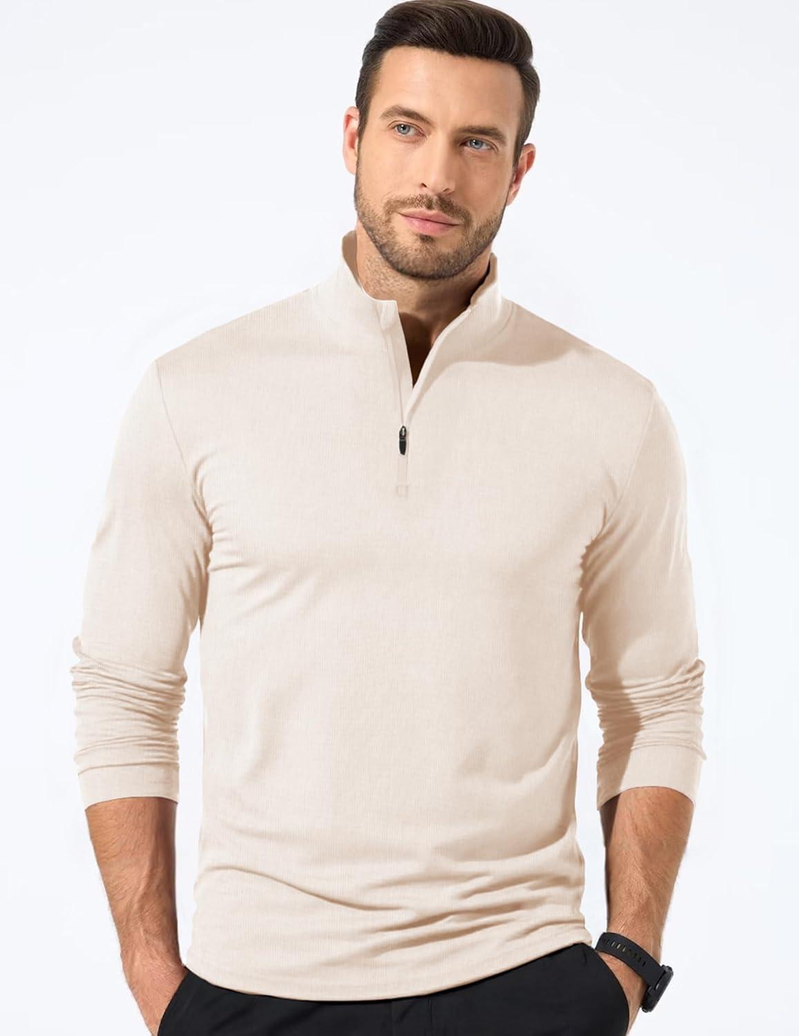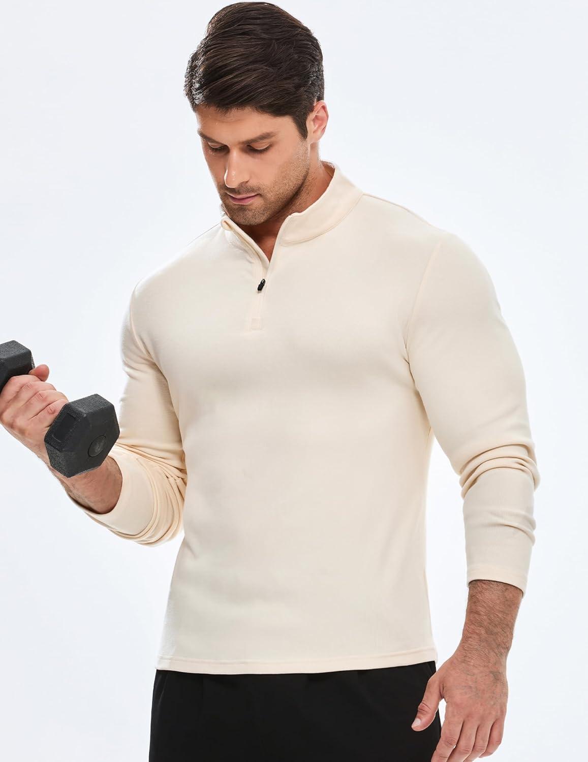 JMIERR Men’s 2025 Casual Quarter Zip Pullover Sweatshirts Stretch Fall Polo Plush Long Sleeve Shirt Comfy Underwear(A Beige)