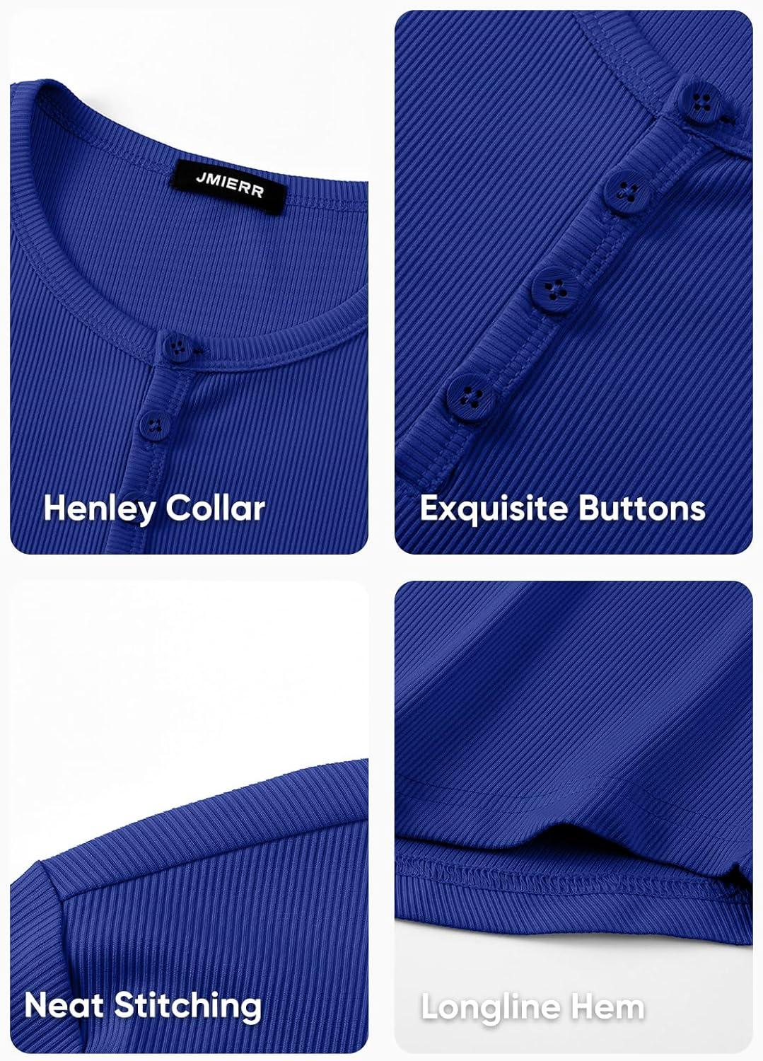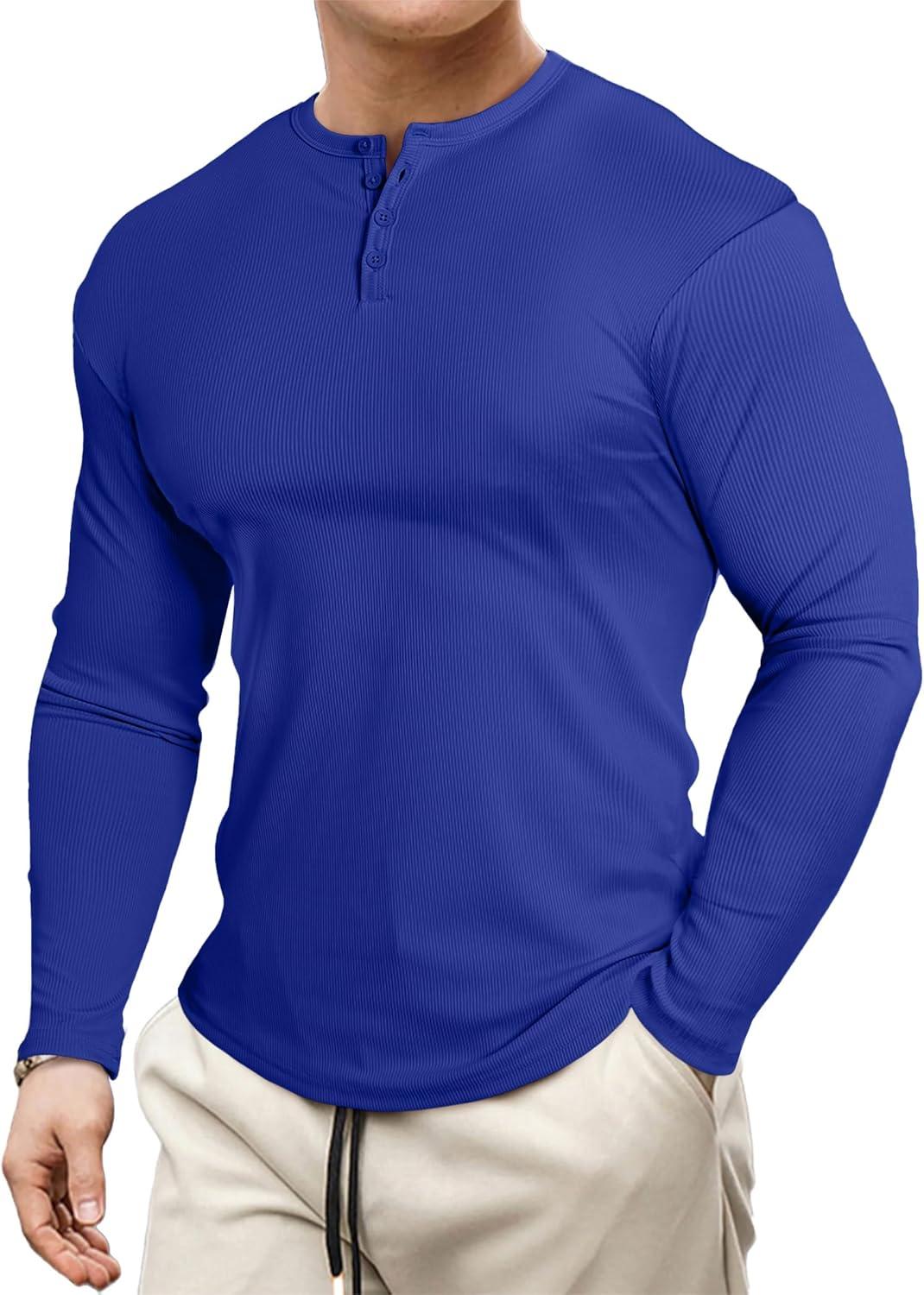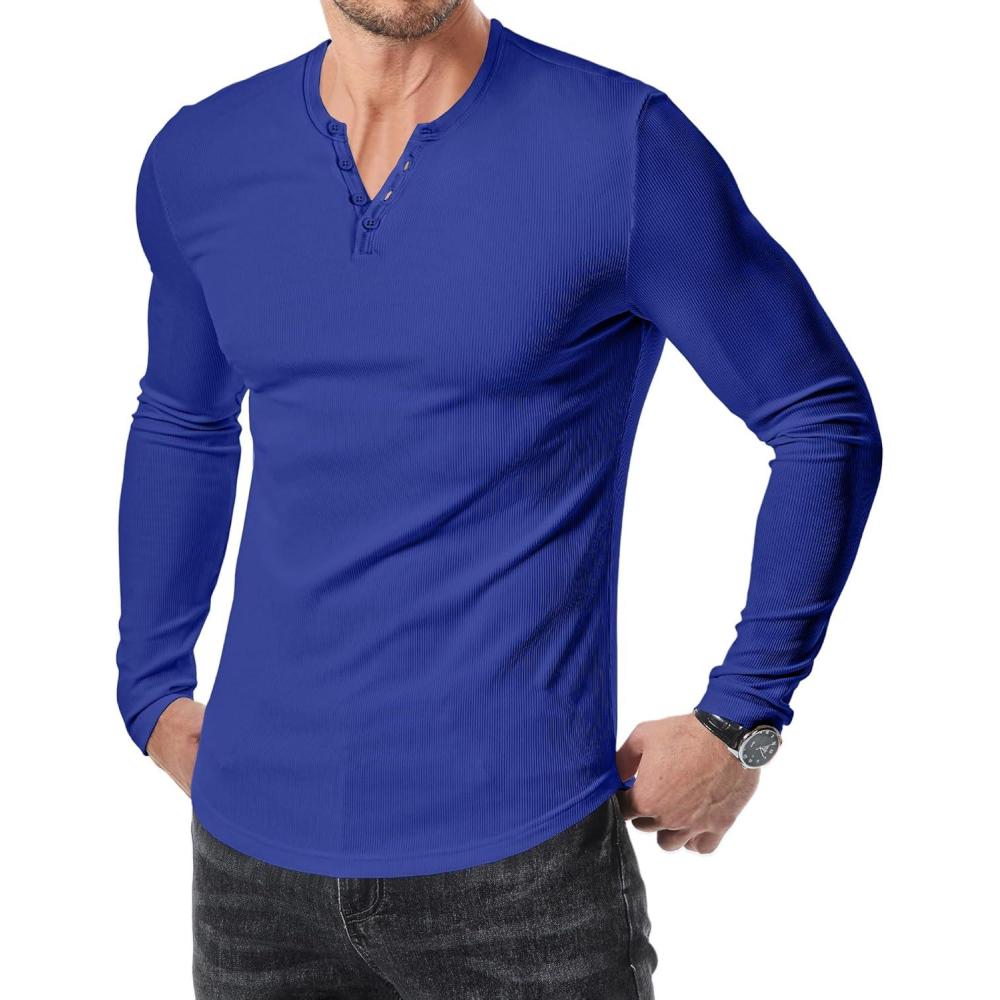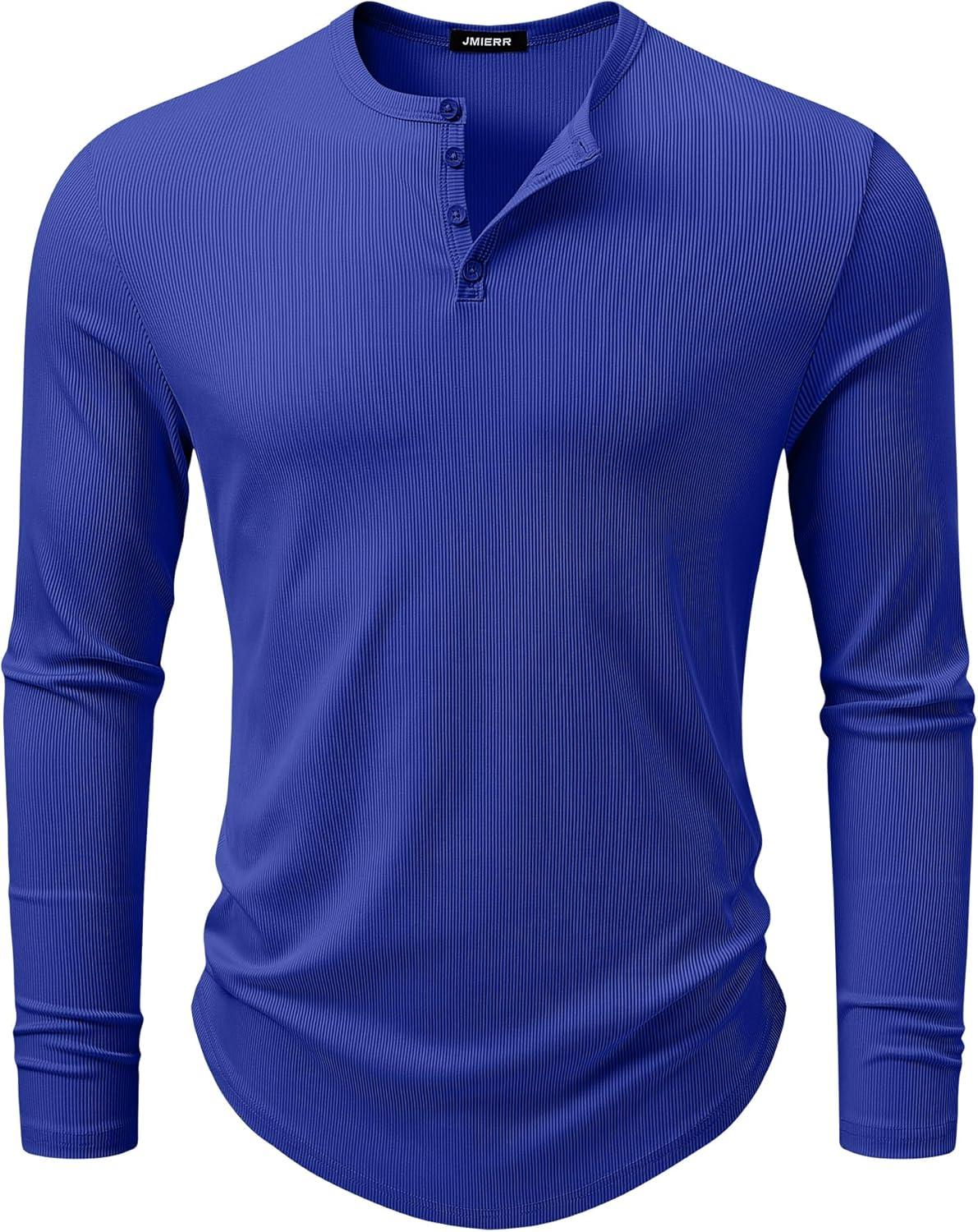 JMIERR Mens 2025 Fall Fashion Casual Henley Shirt Long Sleeve Slim Fitted Shirts Curved Hem for Athletic Gym Workout(D Blue 3)