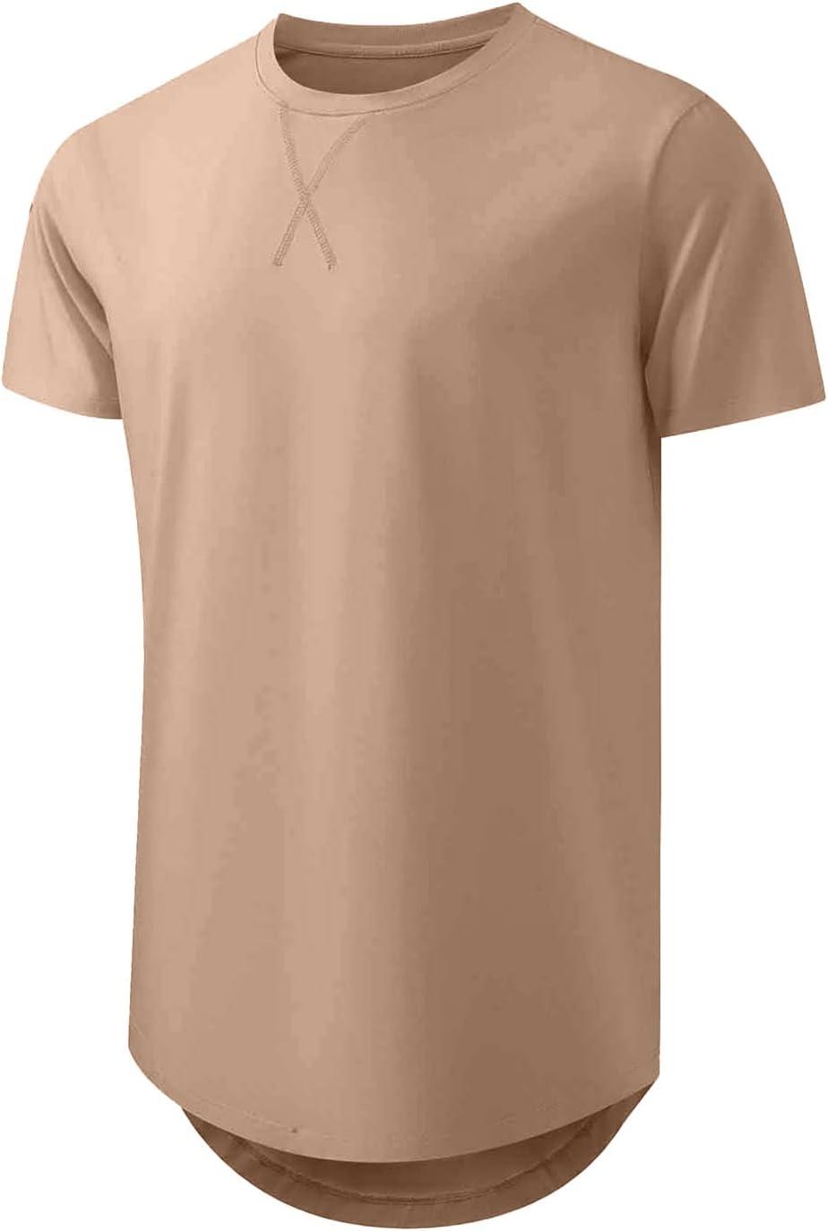 JMIERR Mens 3 Pack Cotton Hipster Hip Hop Longline Crewneck T-Shirt(1-black/Dark Grey/Khaki)