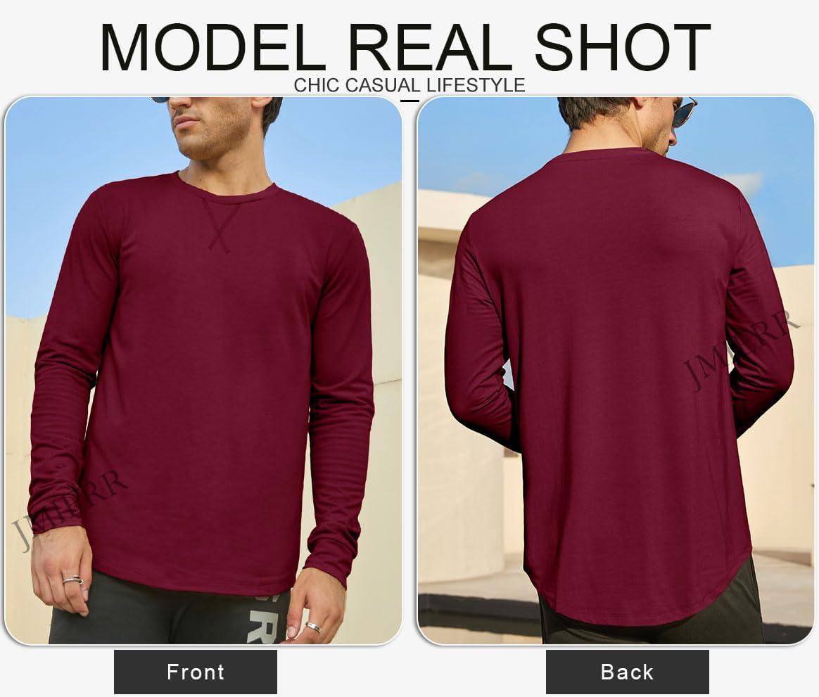JMIERR Mens 3 Pack Cotton Hipster Hip Hop Longline Crewneck T-Shirt(A-black/Light Grey/Red)