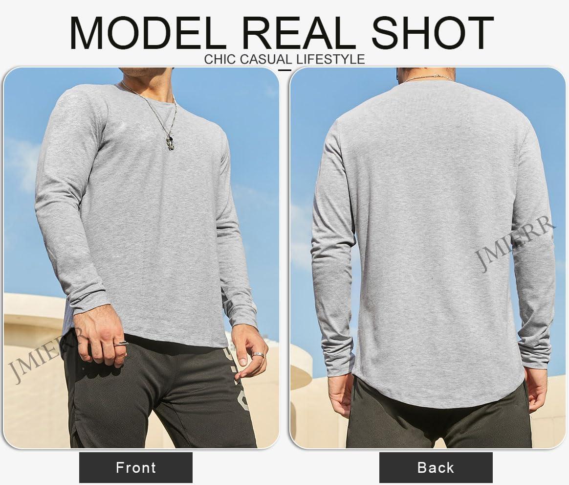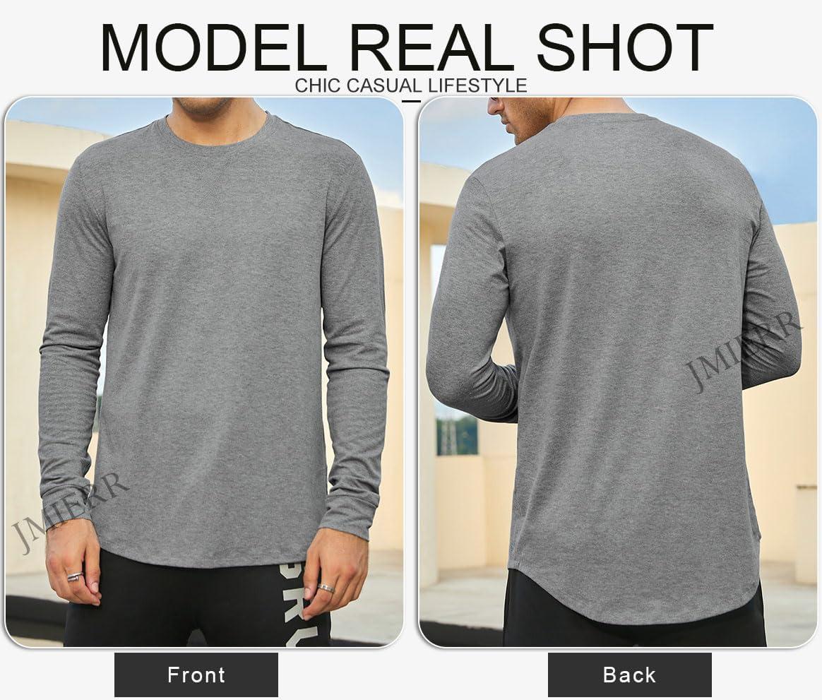 JMIERR Mens 3 Pack Cotton Hipster Hip Hop Longline Crewneck T-Shirt(B-black/Light Grey/Dark Grey)