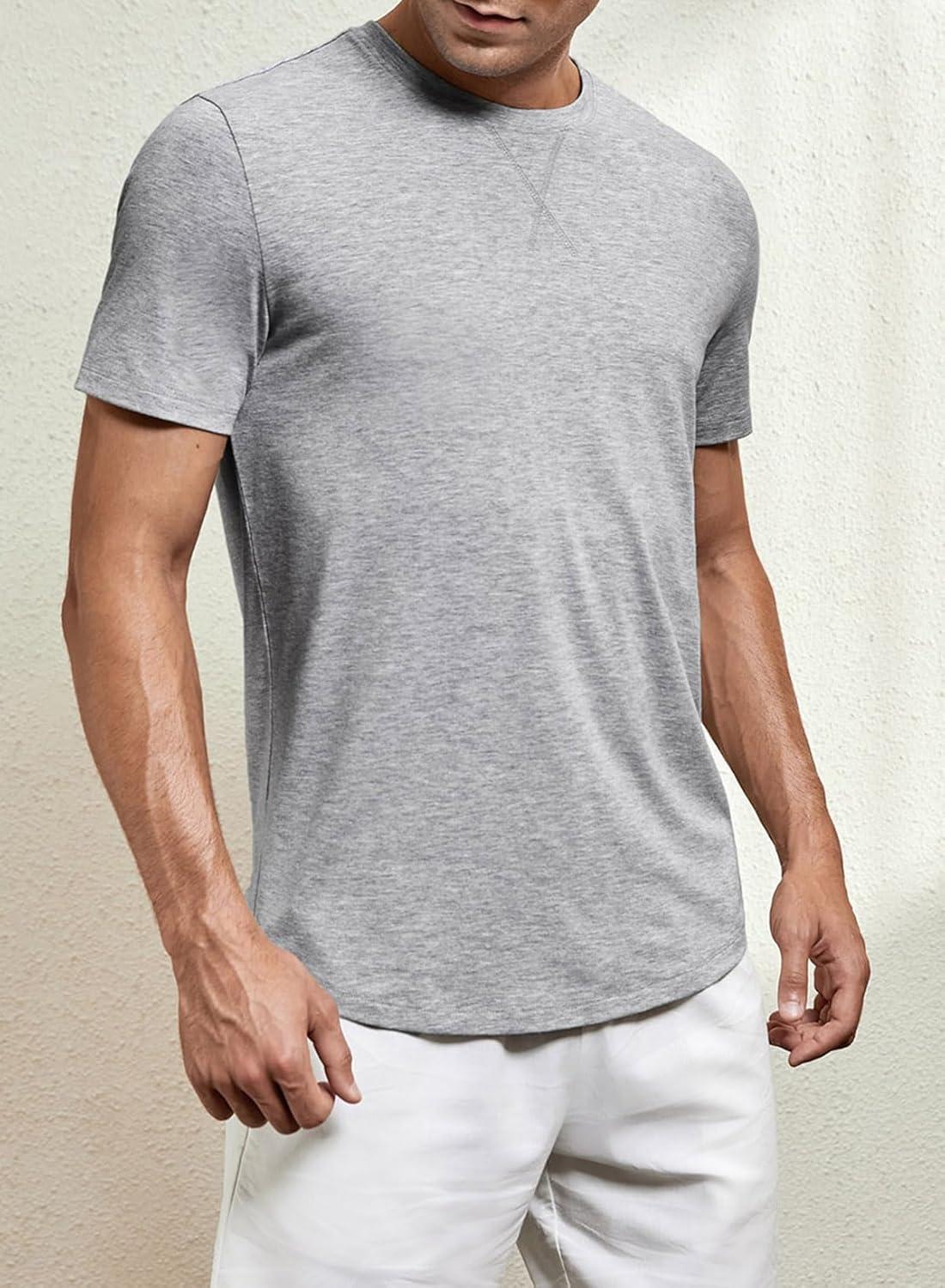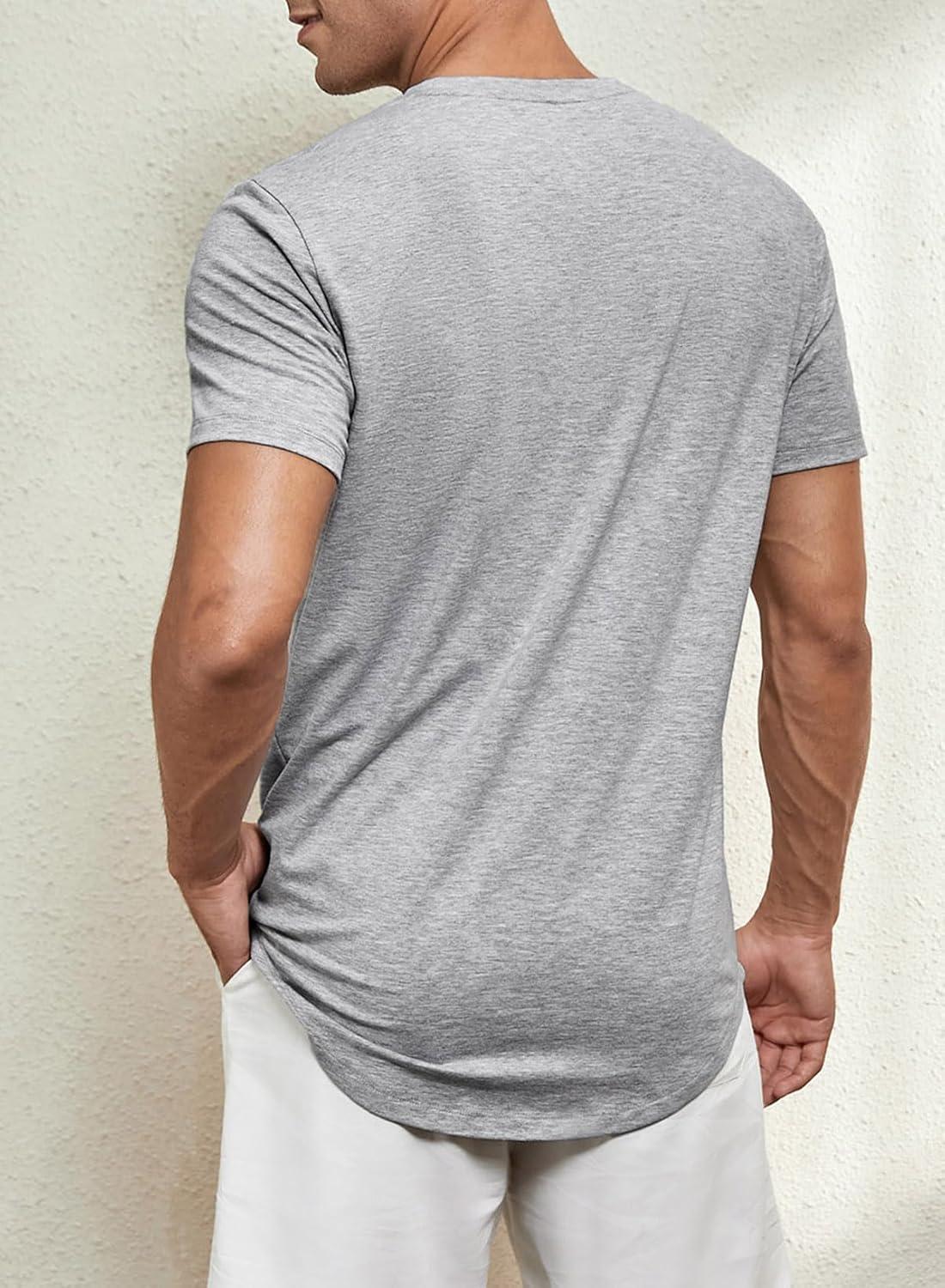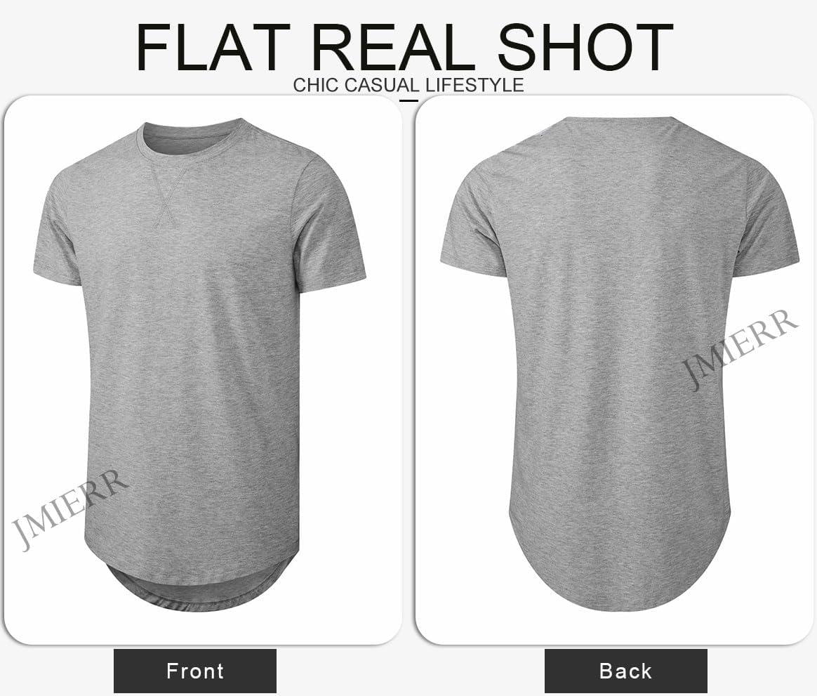 JMIERR Mens 3 Pack Cotton Hipster Hip Hop Longline Crewneck T-Shirt(One Piece-light Grey)