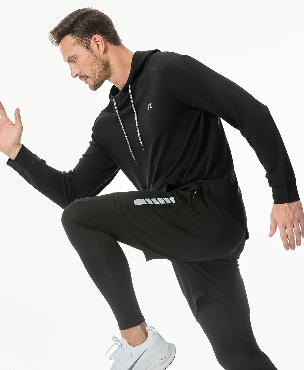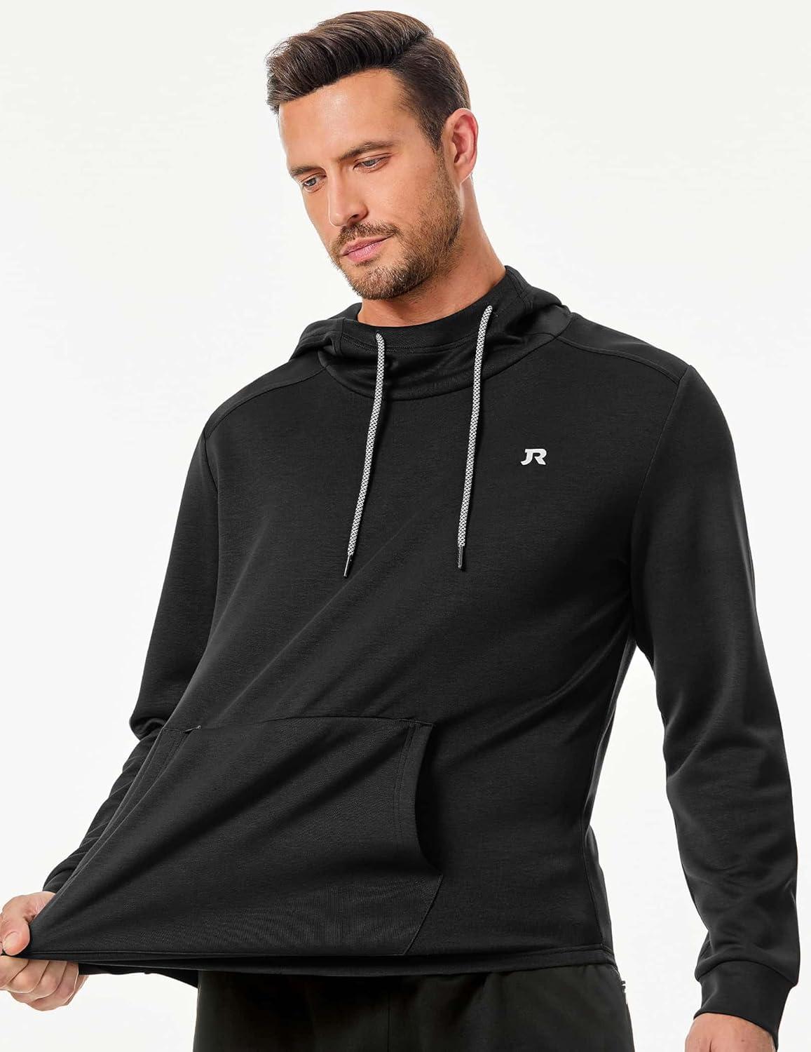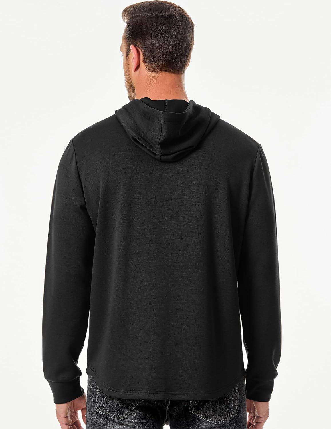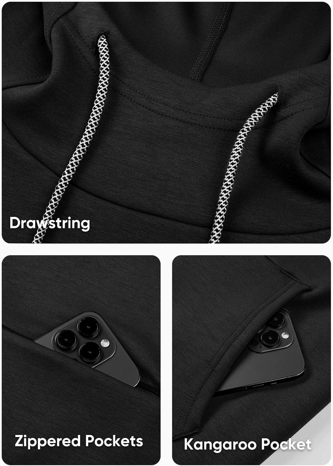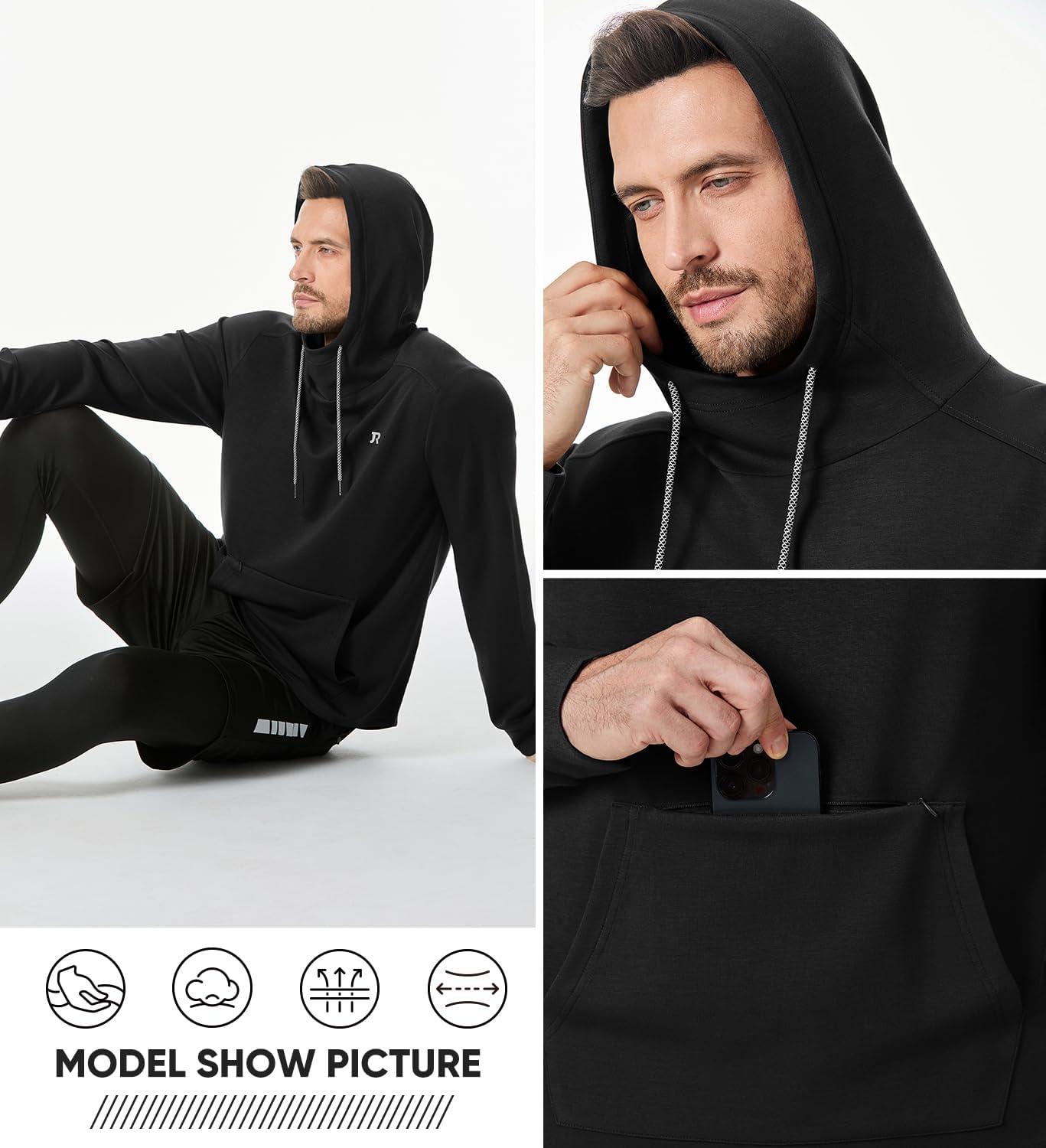 JMIERR Mens Athletic Hoodies Sport Sweatshirt Solid Muscle Fit Drawstring Pullover Sweatshirts with Zipper Kanga Pockets(Black)