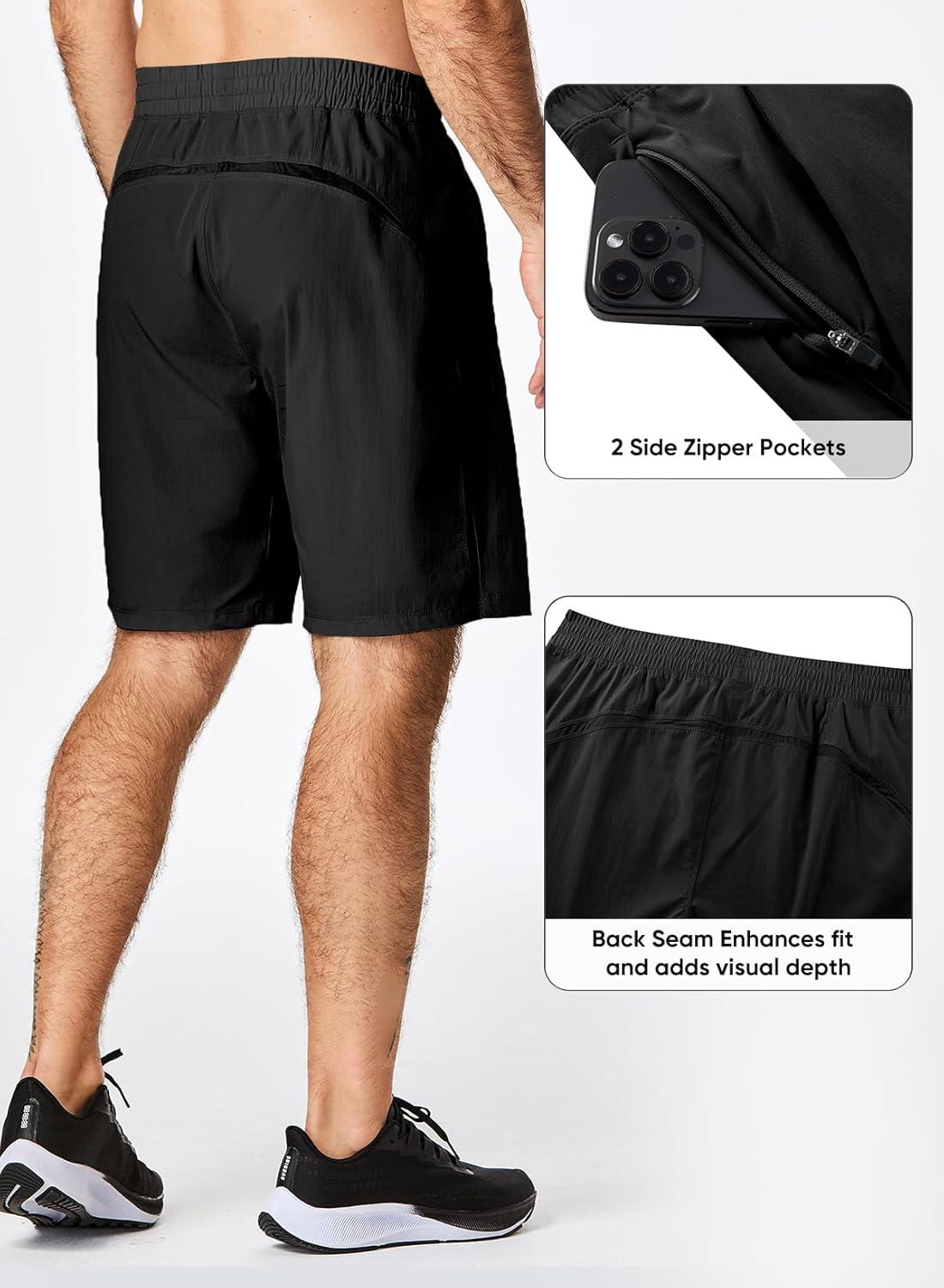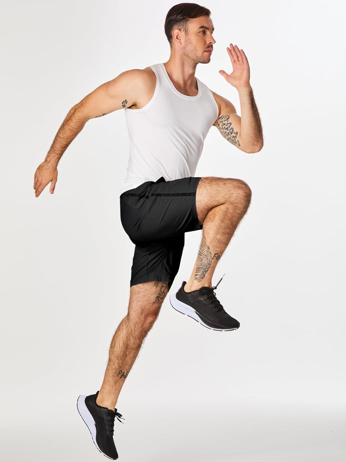 JMIERR Men’s Athletic Running Shorts Lightweight Quick Dry Workout Basketball Gym 7″ Sports Shorts with Zipper Pockets(7″ Black)