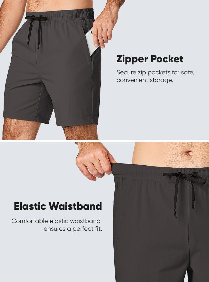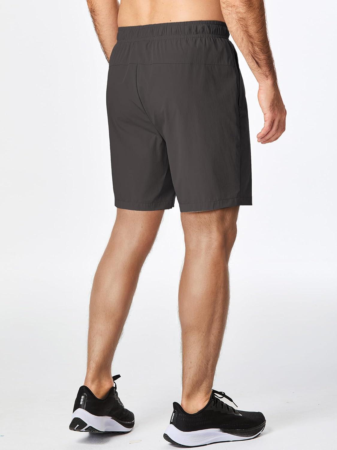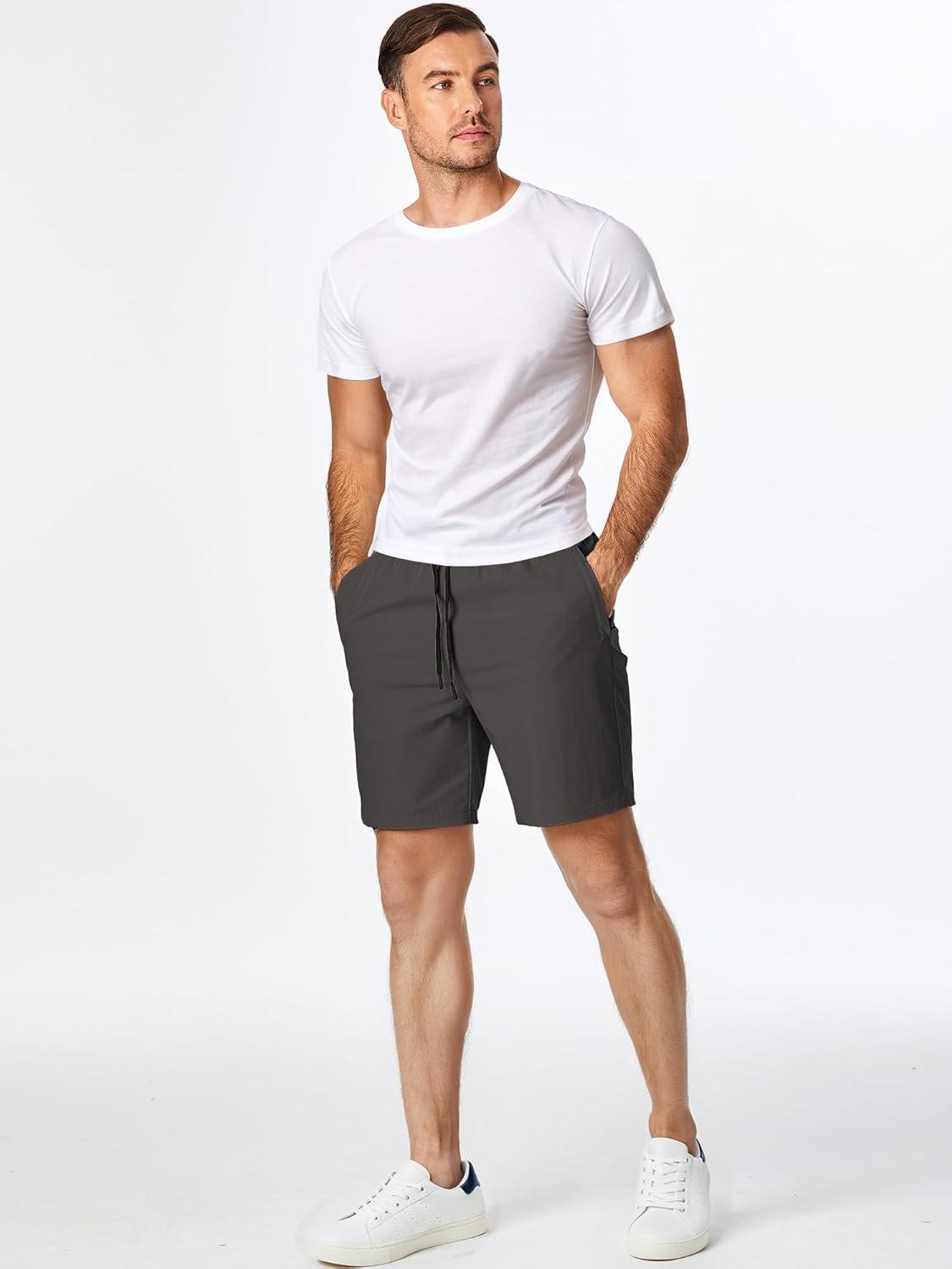 JMIERR Mens Athletic Shorts 4 Way Stretch 7 Inch Drawstring Shorts with Zipper Pockets(Dark Grey)