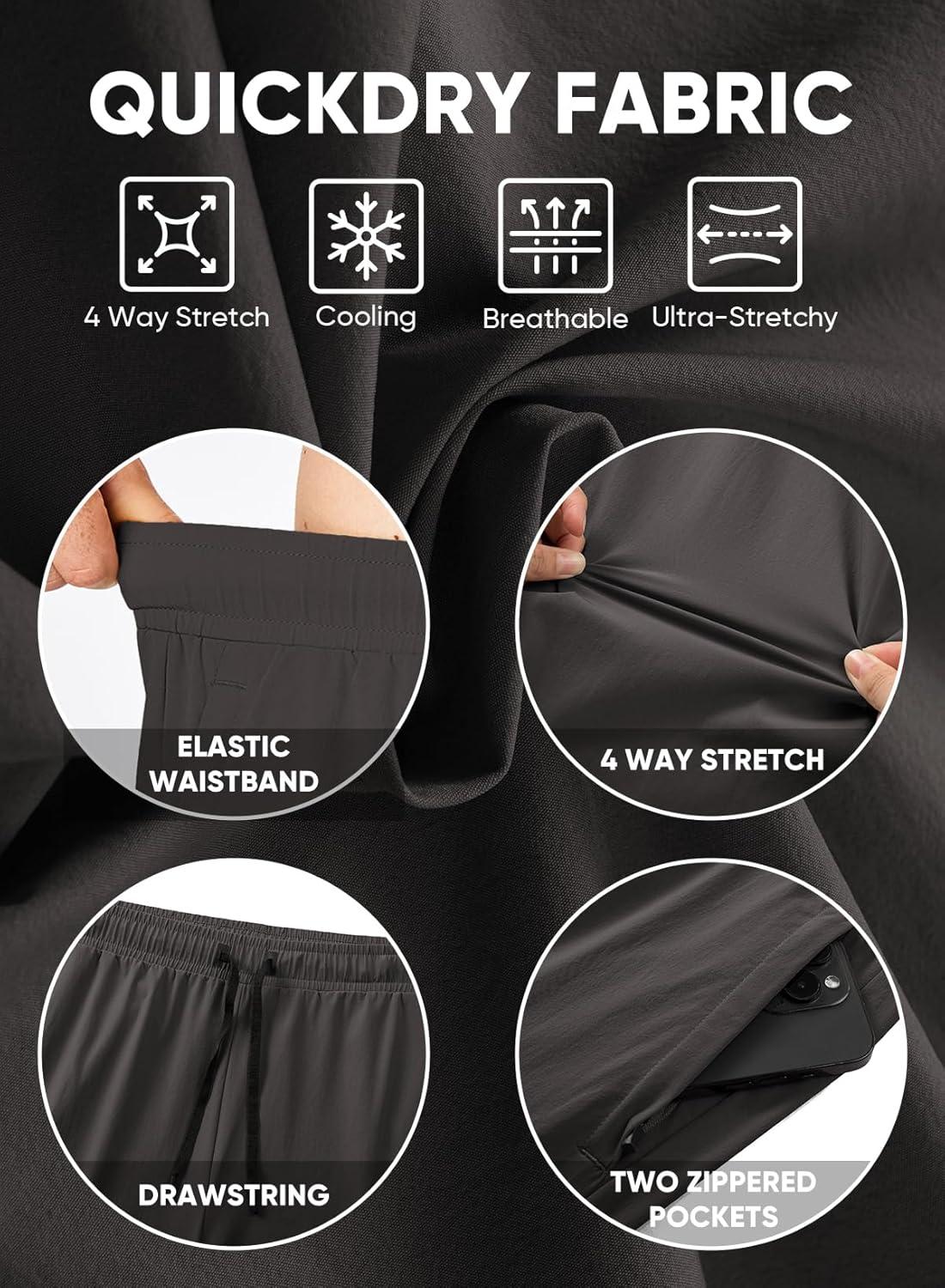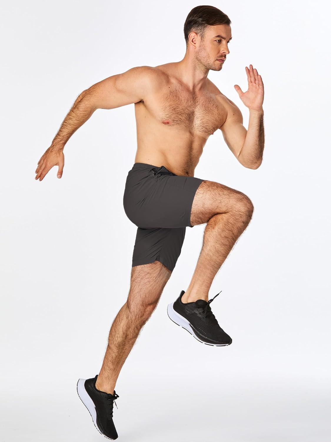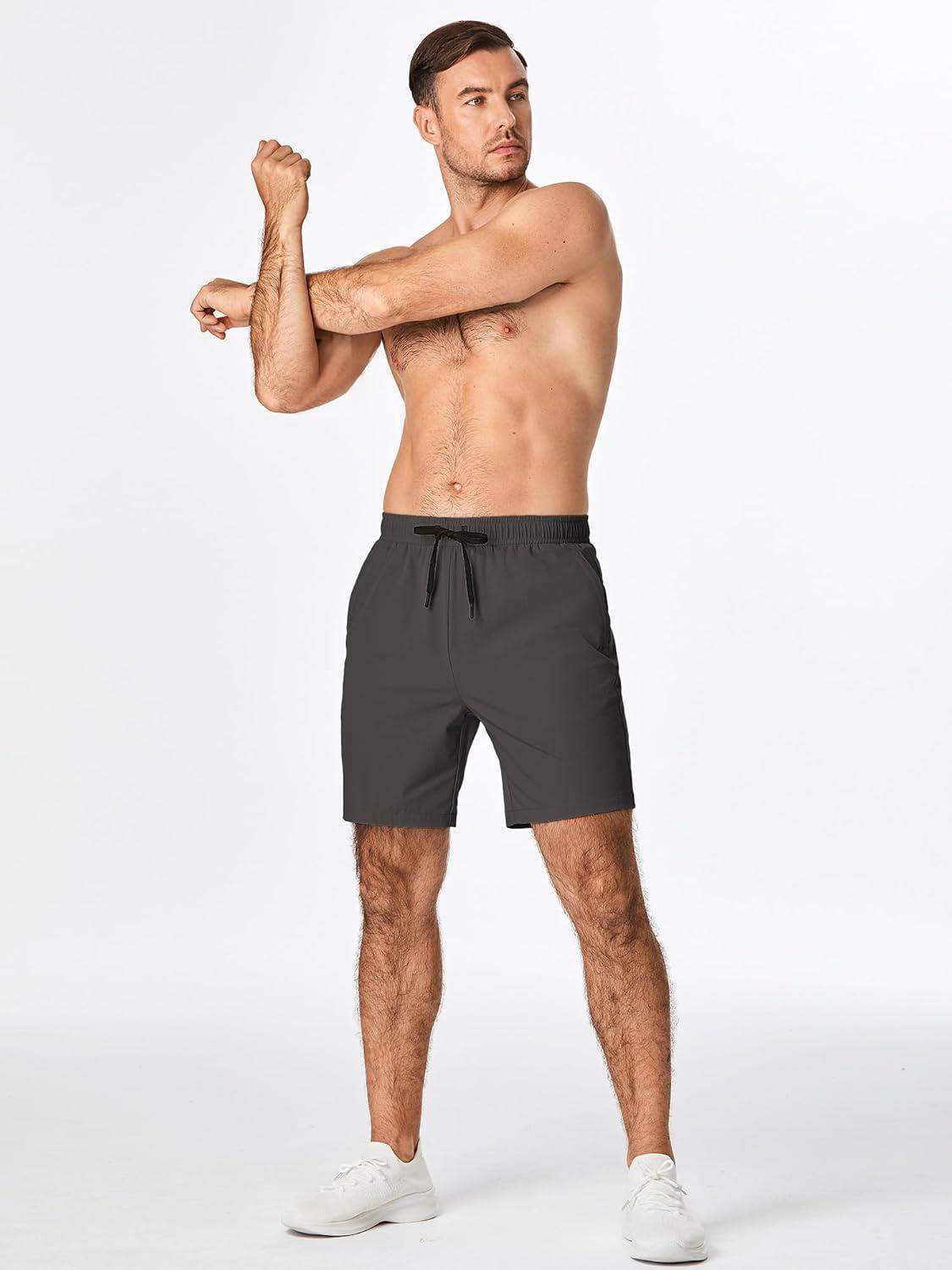 JMIERR Mens Athletic Shorts 4 Way Stretch 7 Inch Drawstring Shorts with Zipper Pockets(Dark Grey)