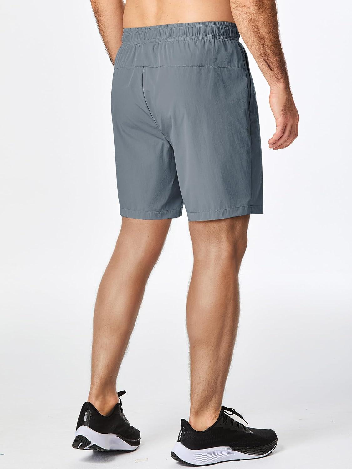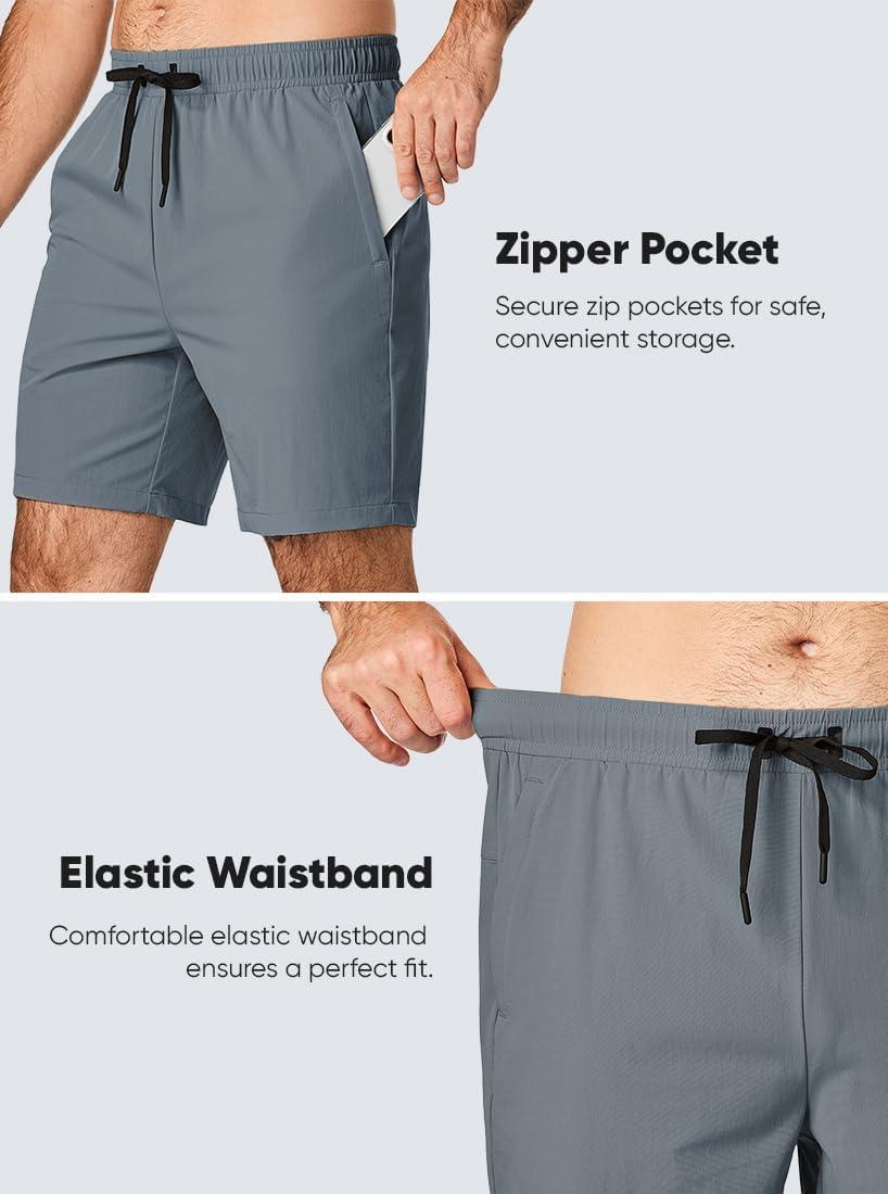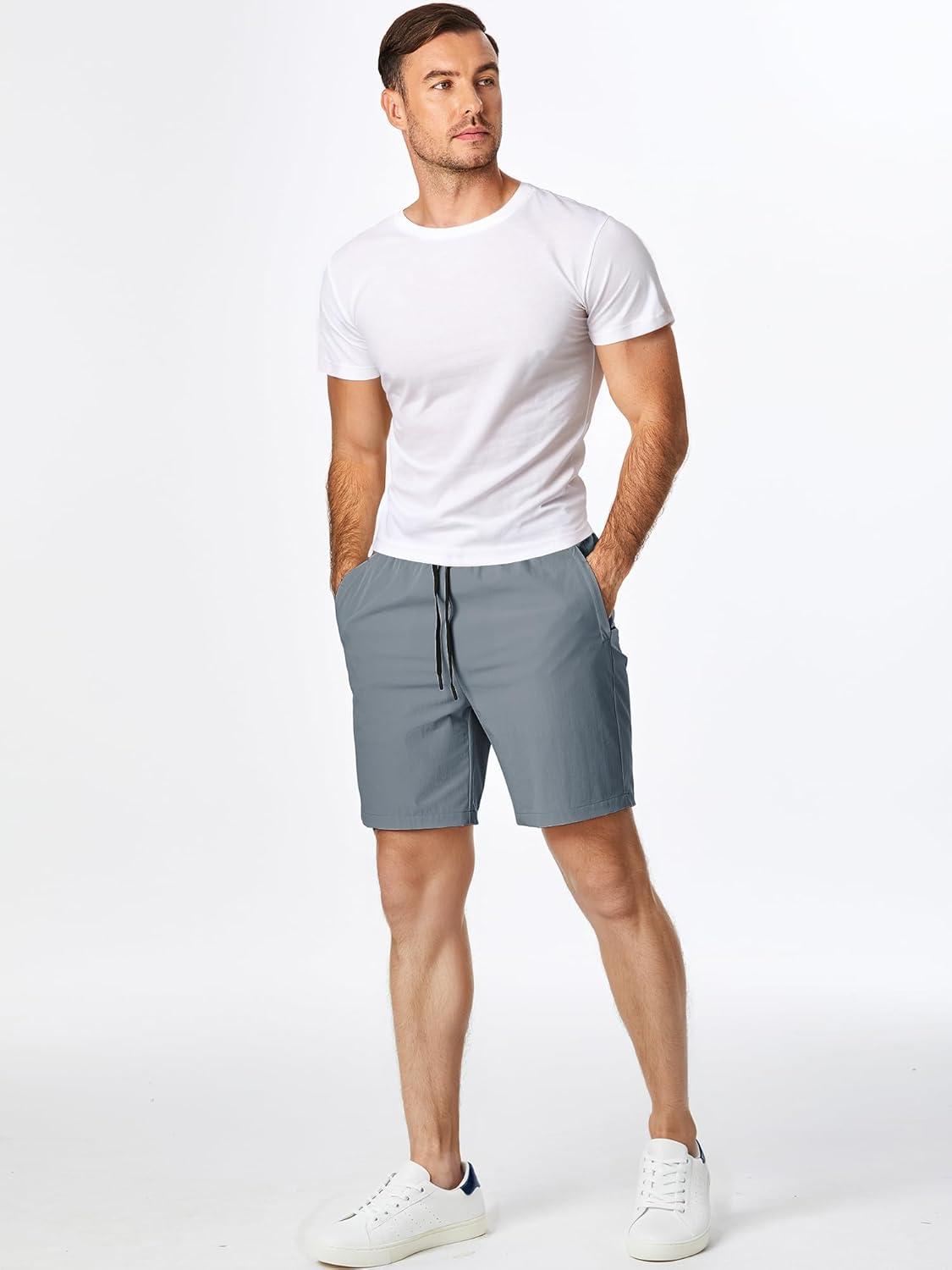 JMIERR Mens Athletic Shorts 4 Way Stretch 7 Inch Drawstring Shorts with Zipper Pockets(Light Blue)