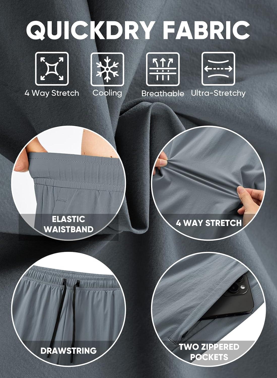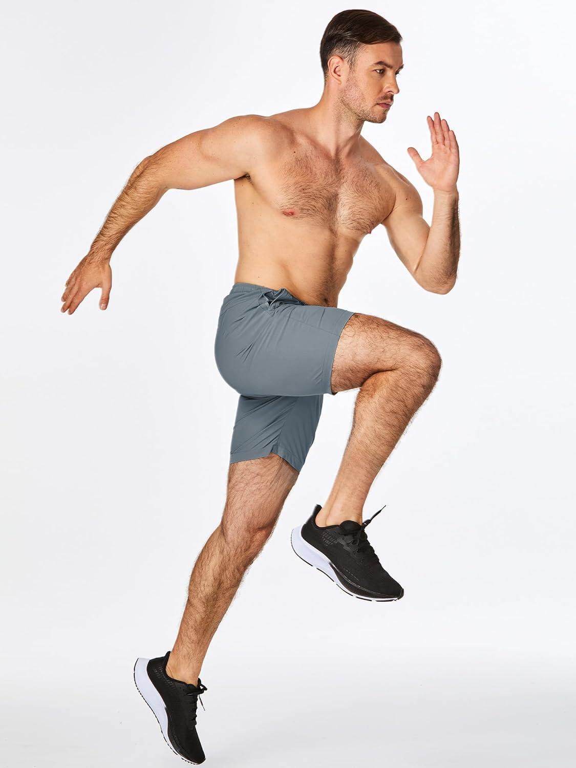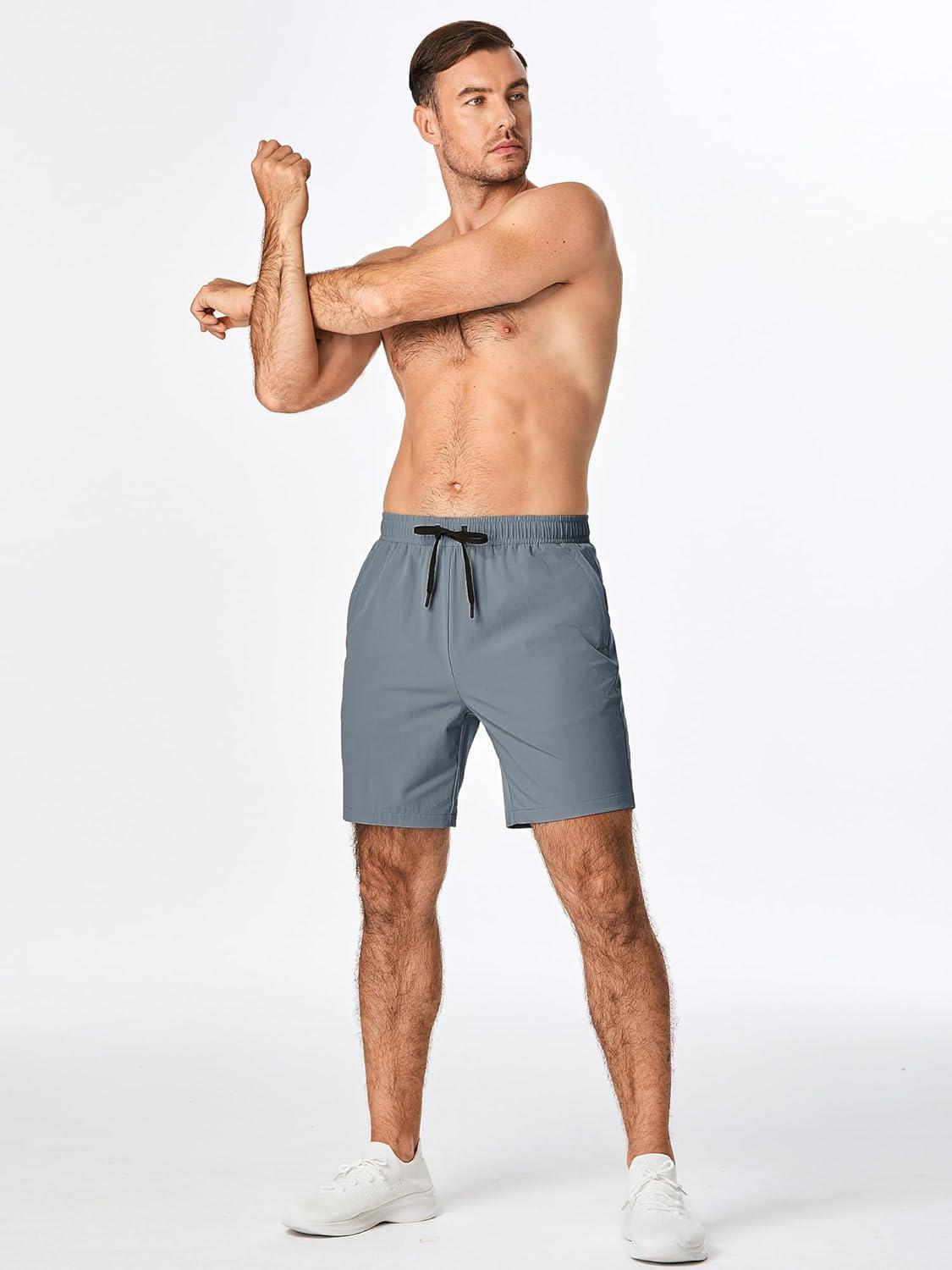 JMIERR Mens Athletic Shorts 4 Way Stretch 7 Inch Drawstring Shorts with Zipper Pockets(Light Blue)