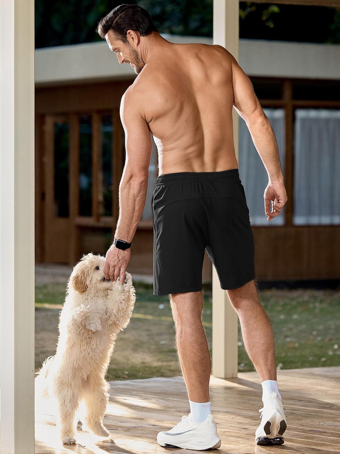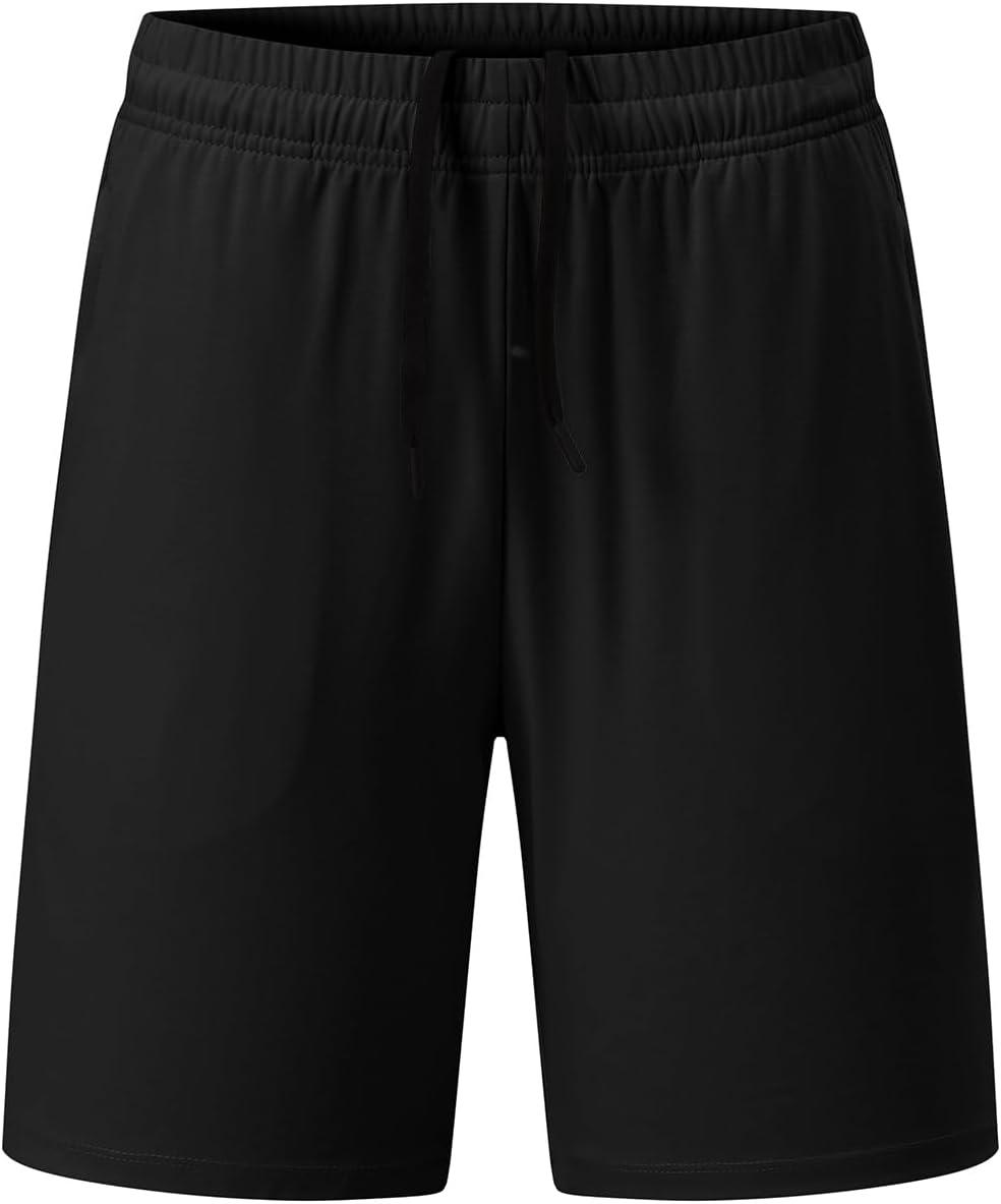 JMIERR Mens Athletic Shorts Knit 4 Way Stretch Short with Zipper Pockets Running Workout Sports Gym Lightweight 7″ Shorts(Black)