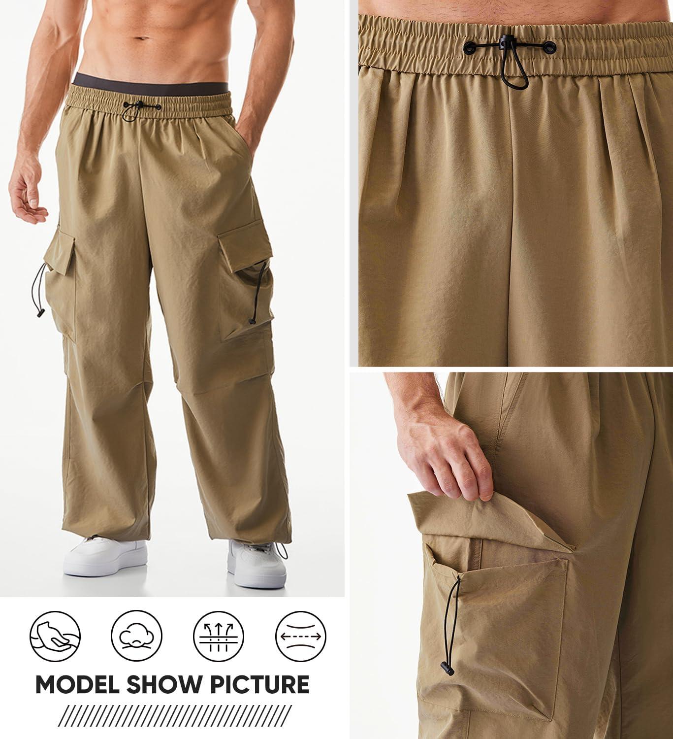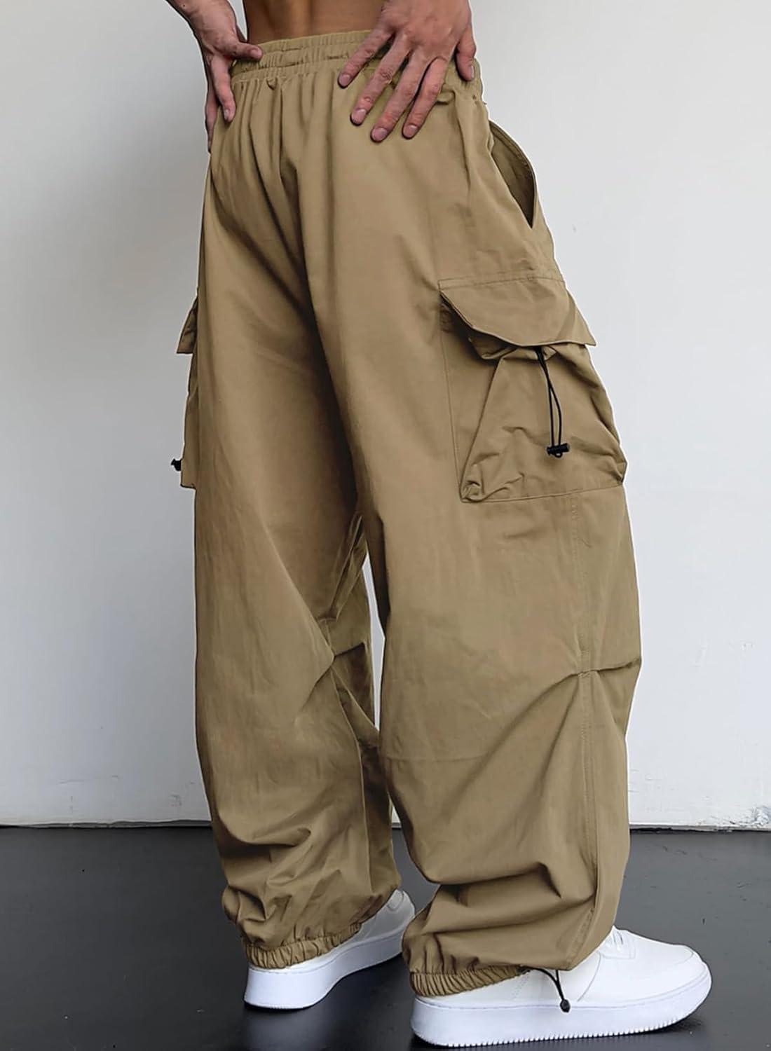 JMIERR Men’s Baggy Cargo Pants Trendy Casual Parachute Pant Loose Fit Harem Joggers with Pockets for Streetwear(A6 Khaki)