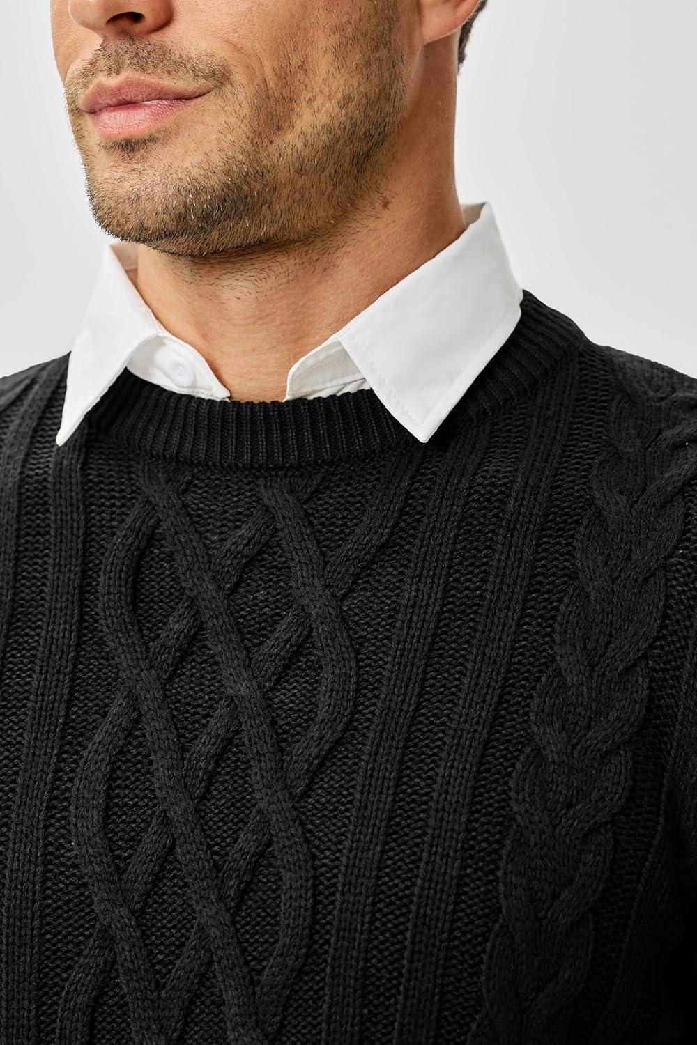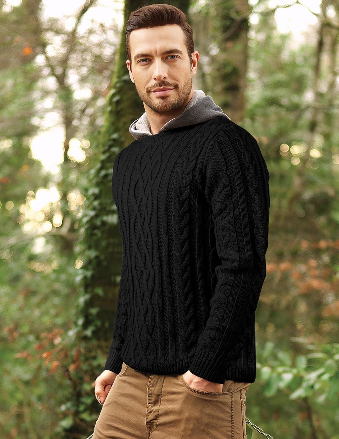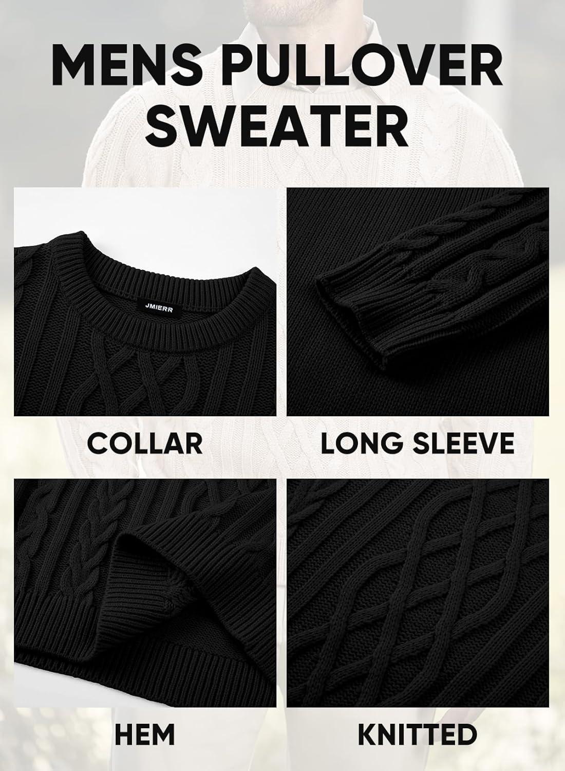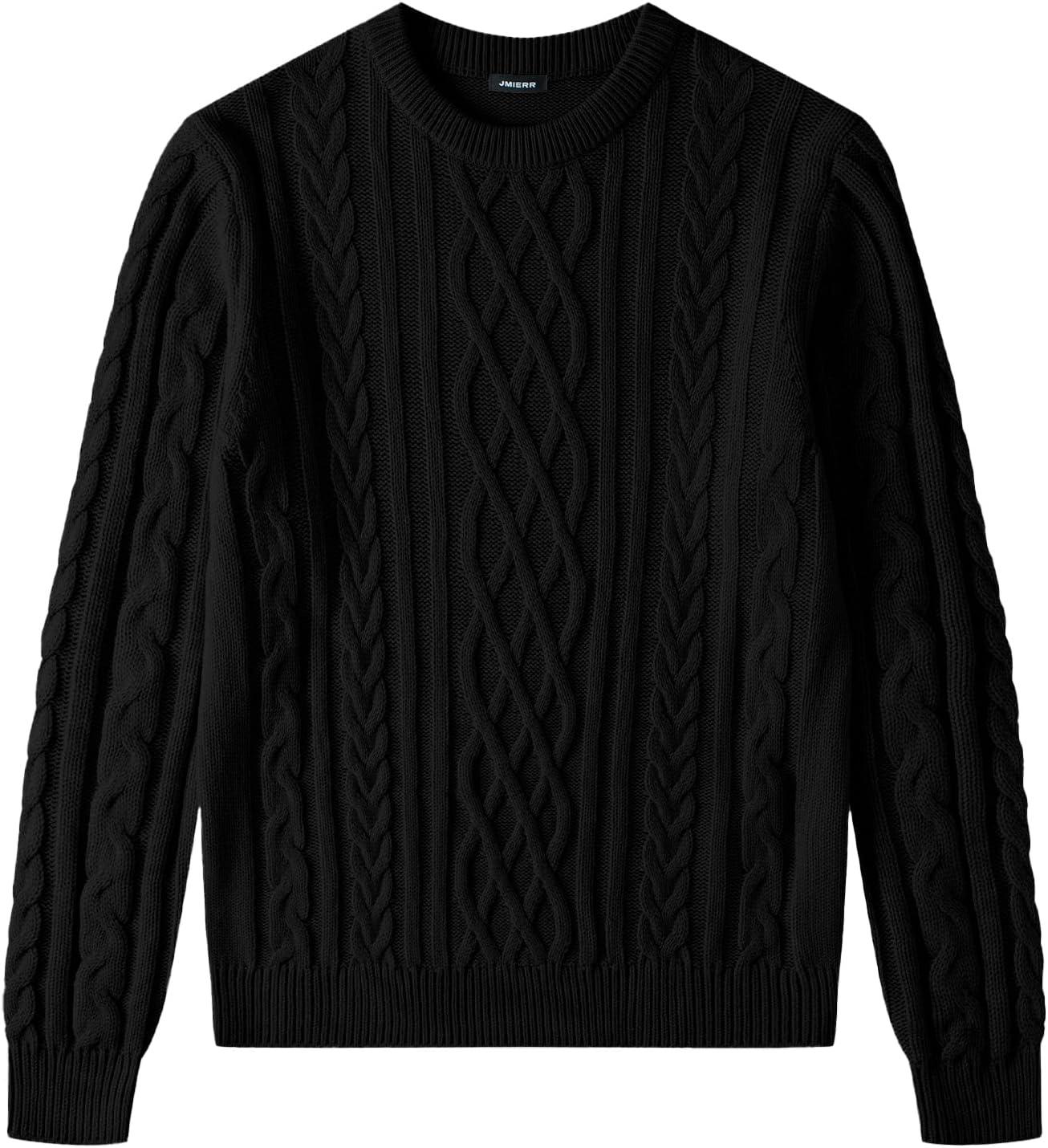 JMIERR Men’s Cable Knit Pullover Fisherman Sweaters Casual Long Sleeve Crewneck Knitted Chunky Sweater(Black)