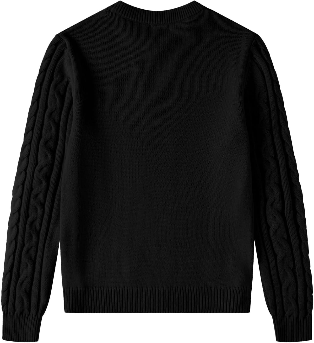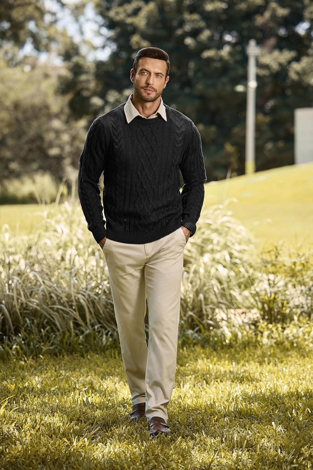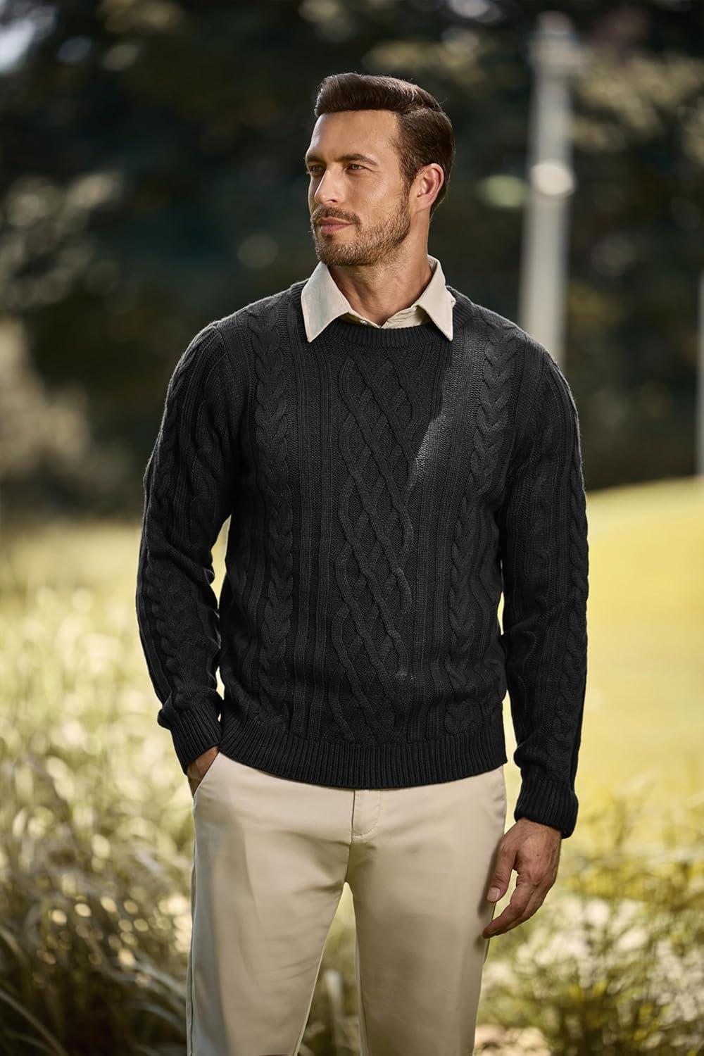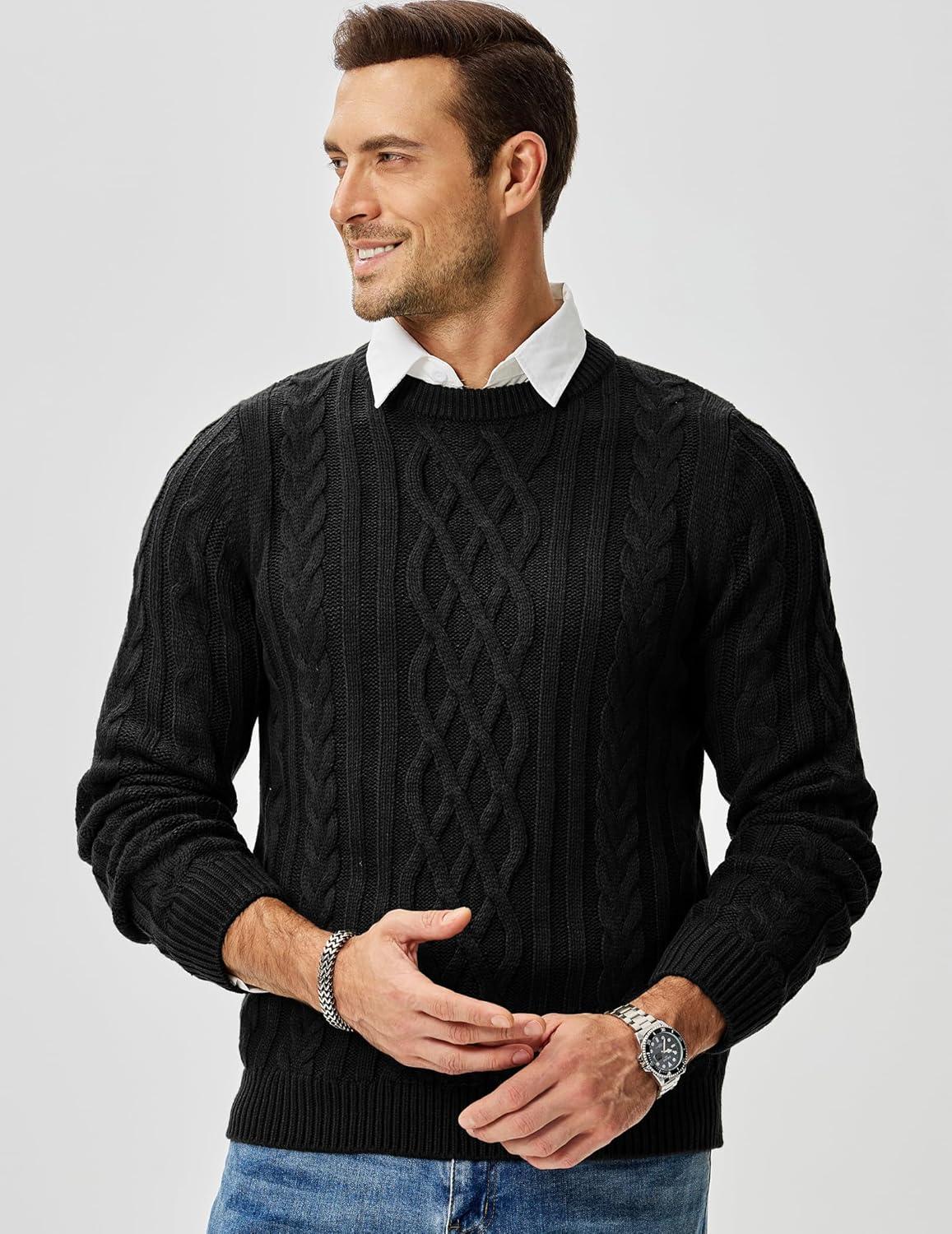 JMIERR Men’s Cable Knit Pullover Fisherman Sweaters Casual Long Sleeve Crewneck Knitted Chunky Sweater(Black)