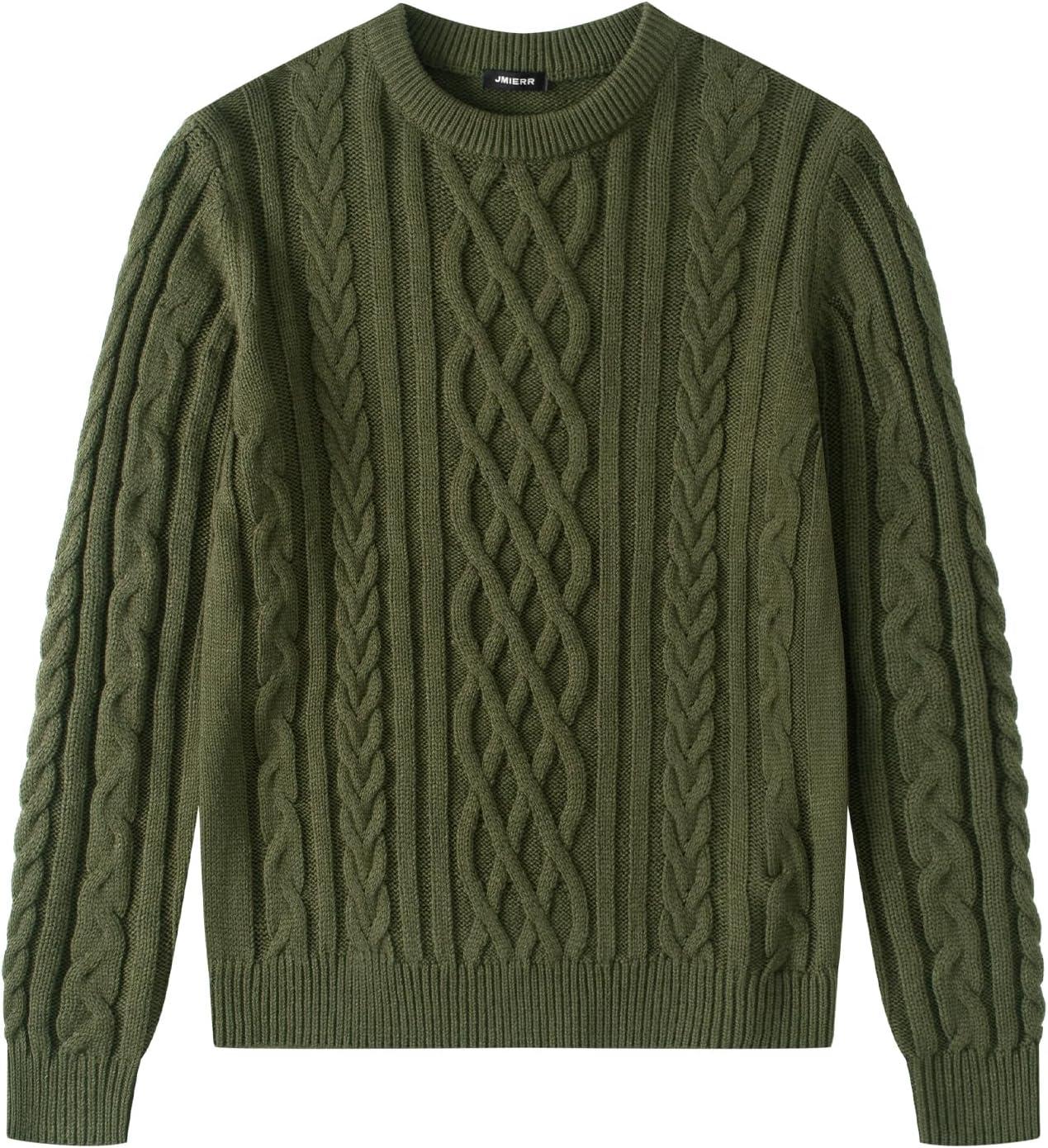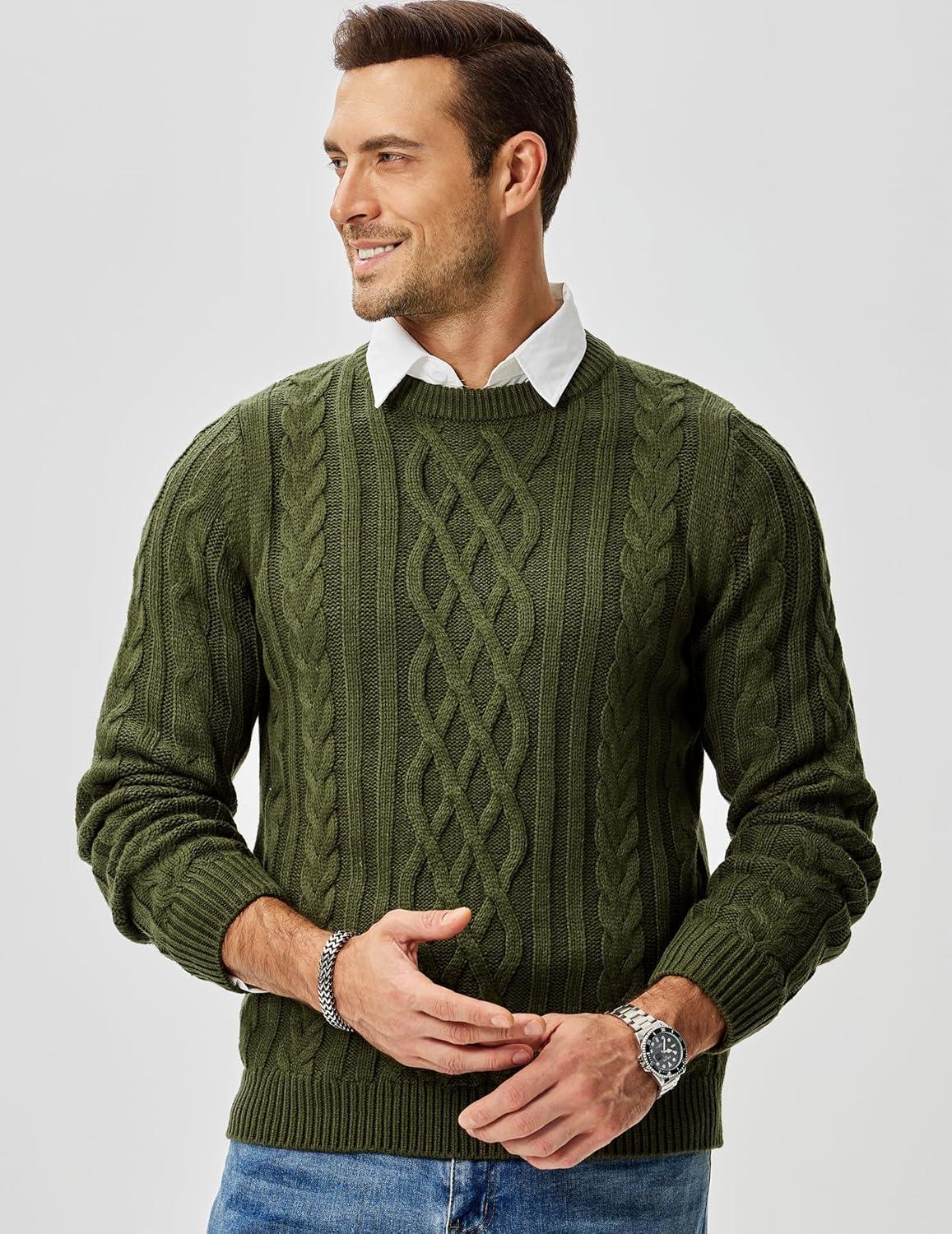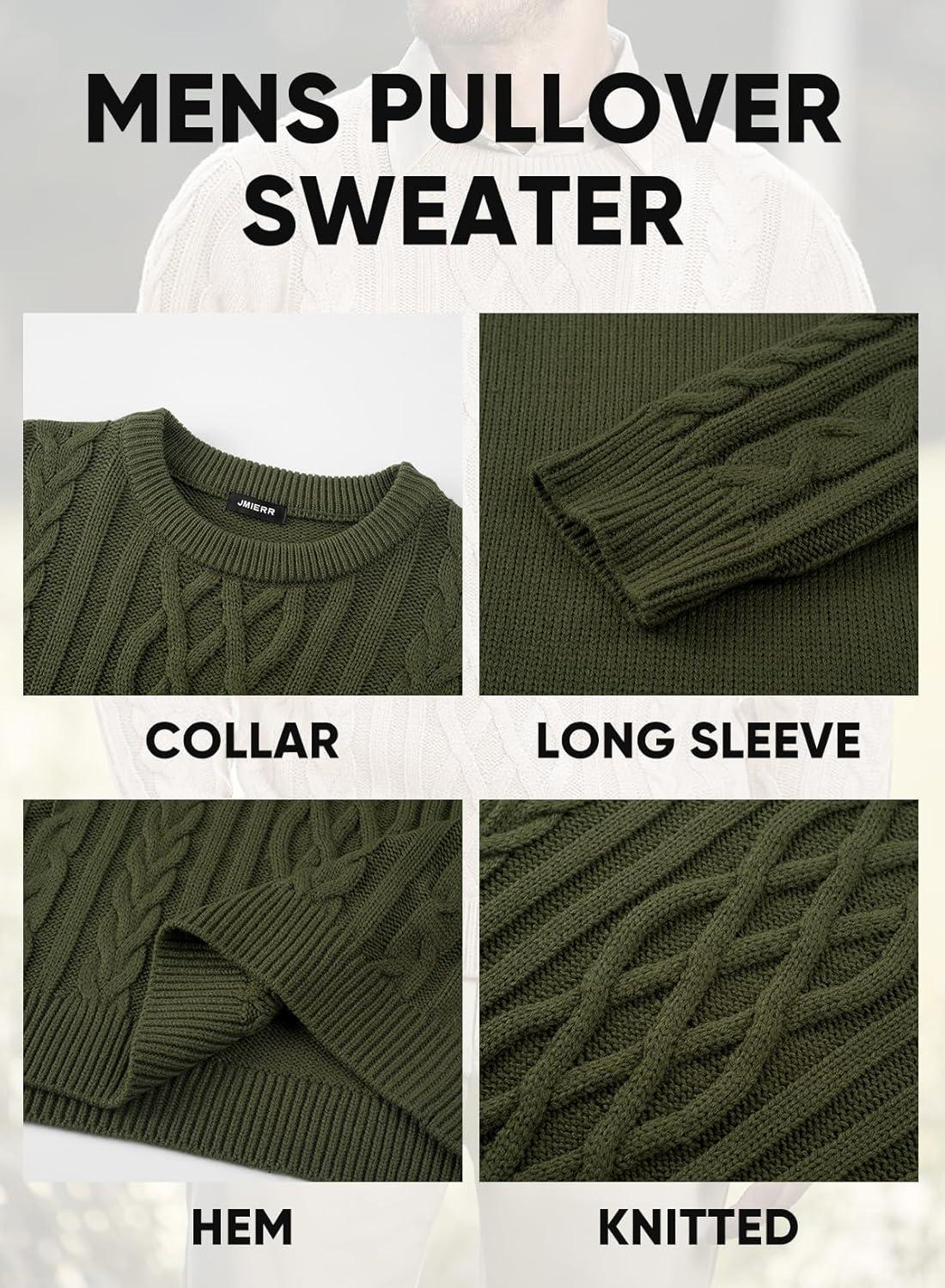 JMIERR Men’s Cable Knit Pullover Fisherman Sweaters Casual Long Sleeve Crewneck Knitted Chunky Sweater(Green)
