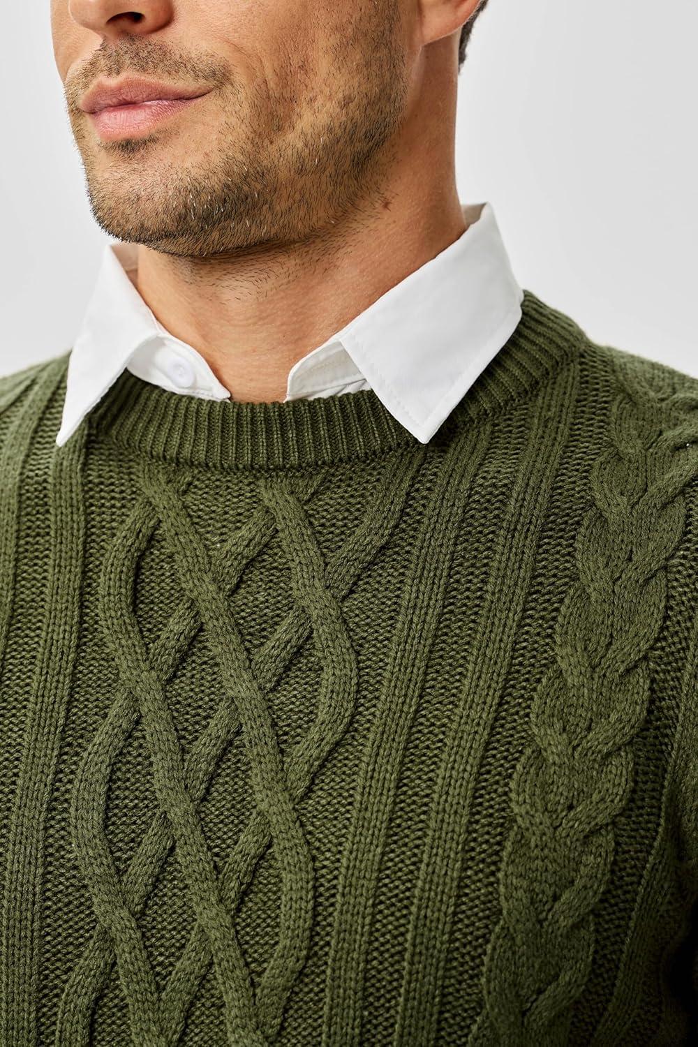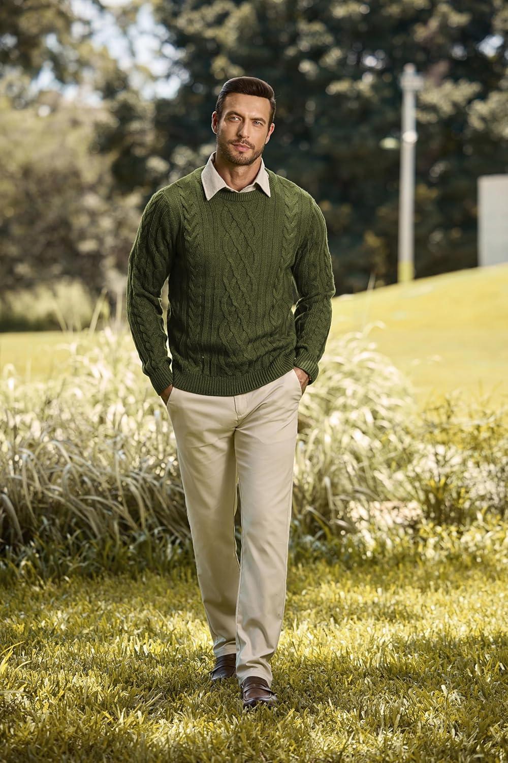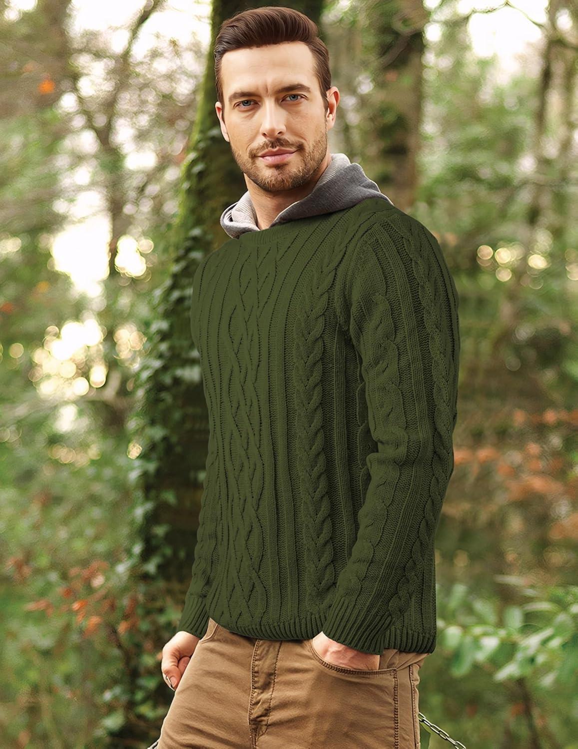 JMIERR Men’s Cable Knit Pullover Fisherman Sweaters Casual Long Sleeve Crewneck Knitted Chunky Sweater(Green)