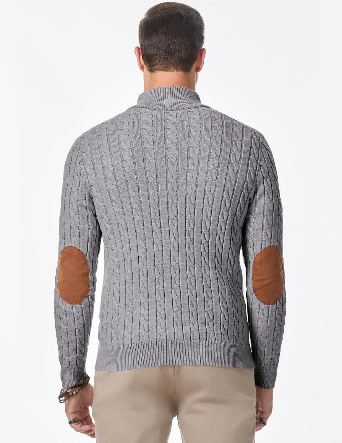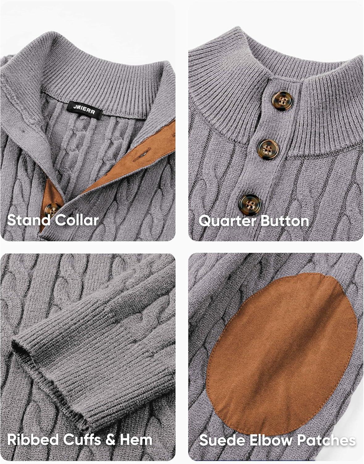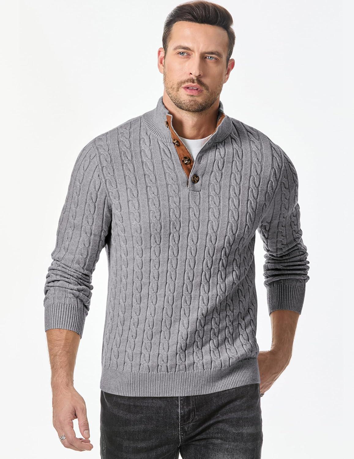JMIERR Men’s Cable Knit Pullover Sweater Casual Long Sleeve Stand Collar Button Knitted Sweaters(Grey)