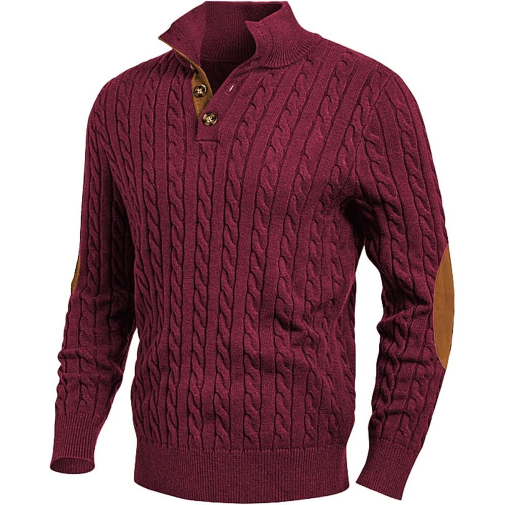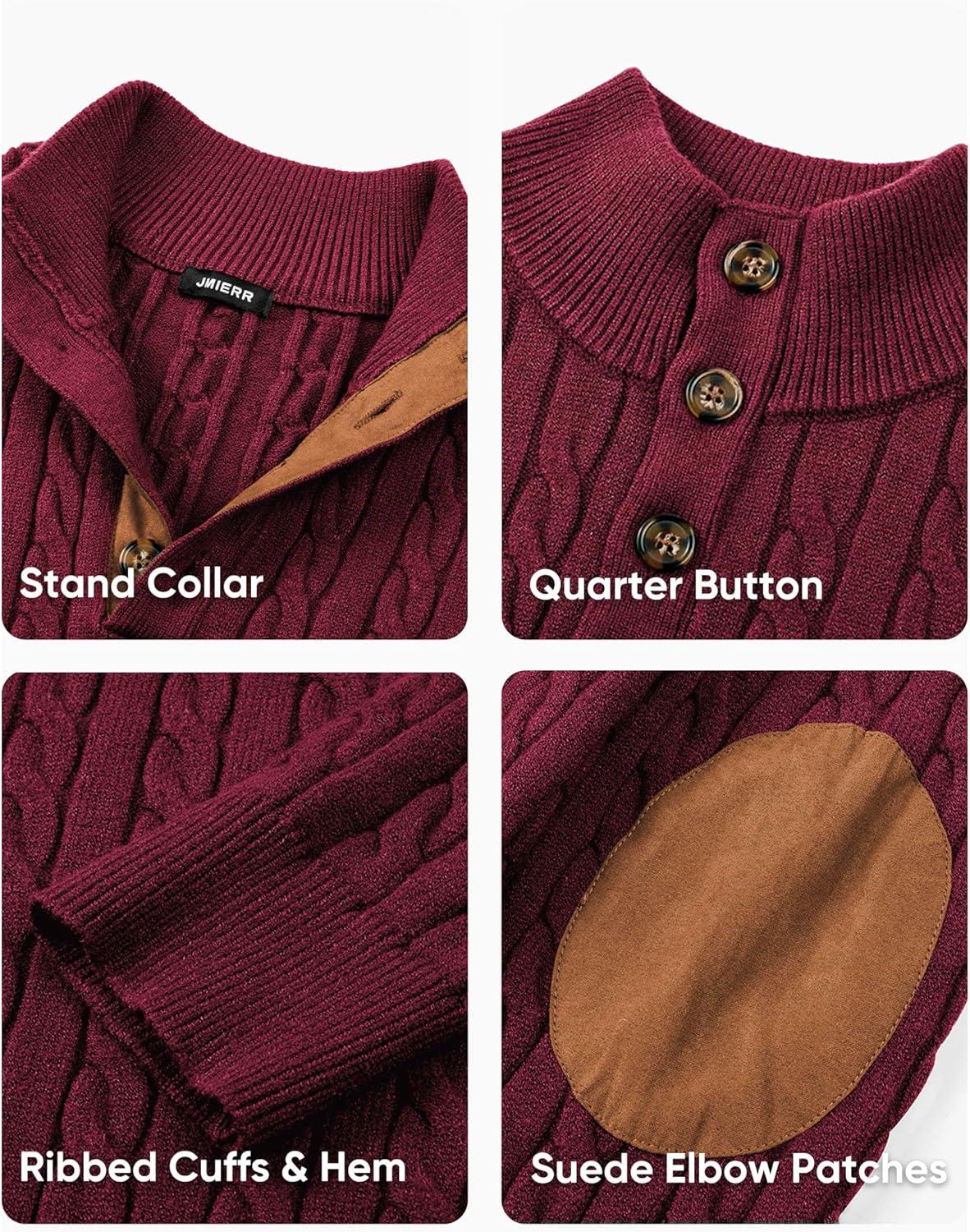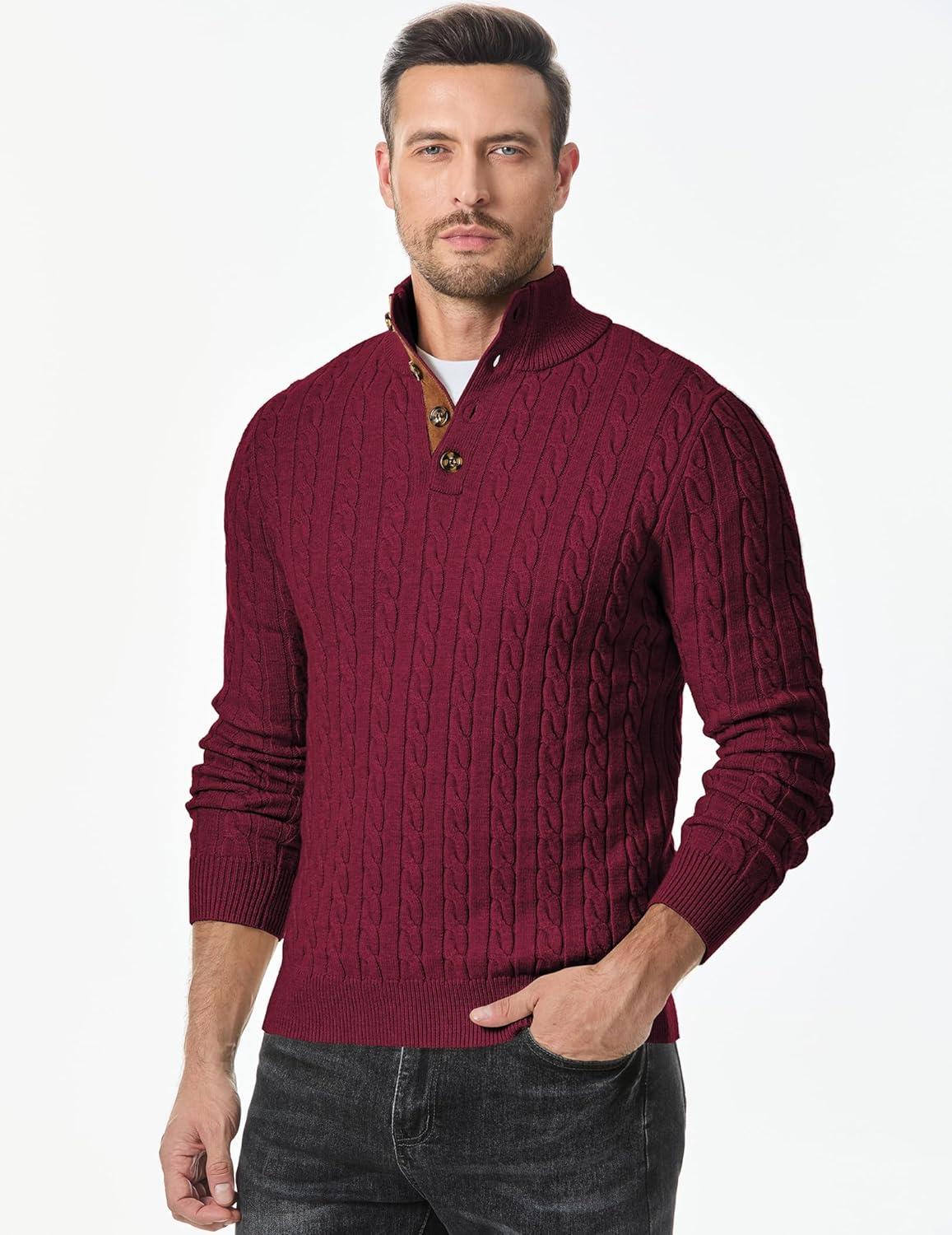 JMIERR Men’s Cable Knit Pullover Sweater Casual Long Sleeve Stand Collar Button Knitted Sweaters(Red)