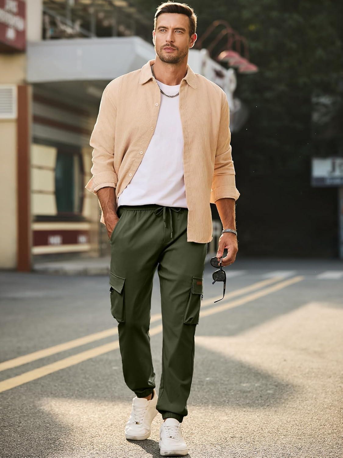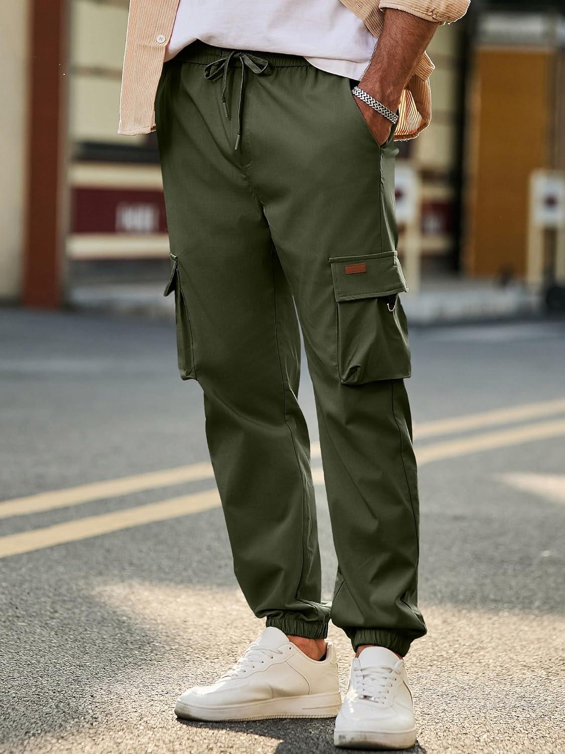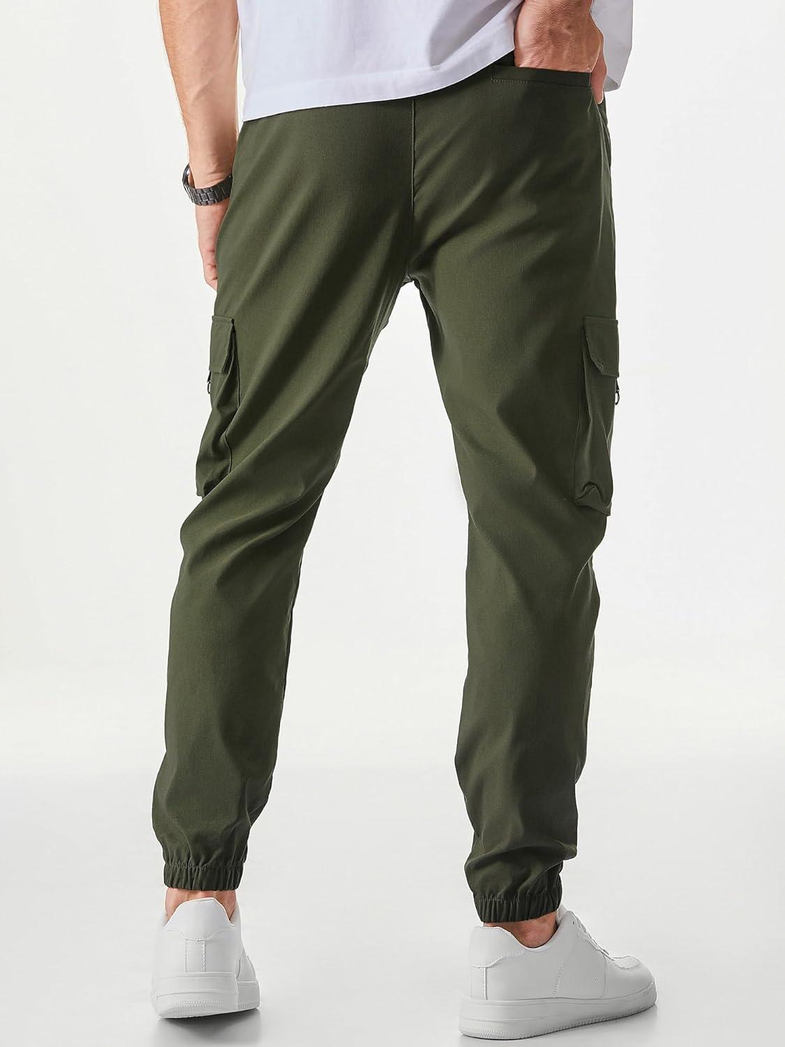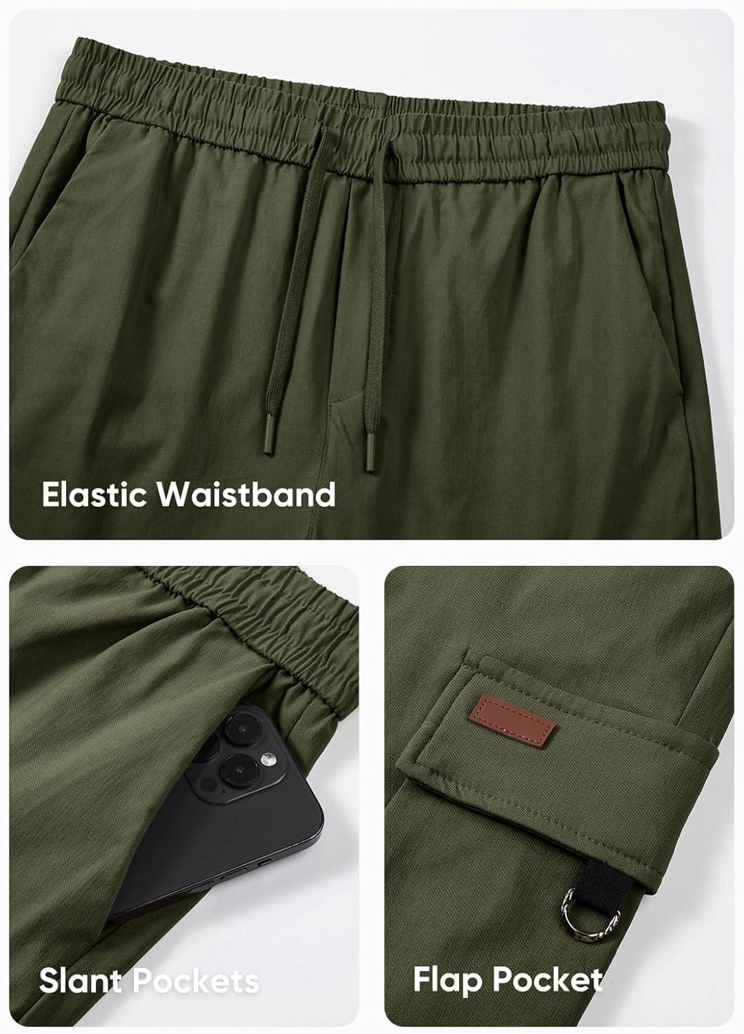 JMIERR Mens Cargo Pants Casual Lightweight Elastic Waist Drawstring Tapered Pant with Pockets(Moss Green)