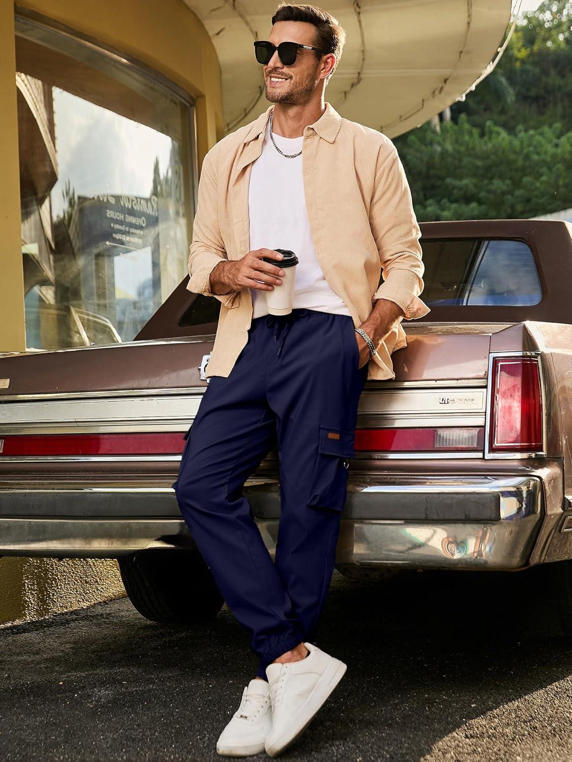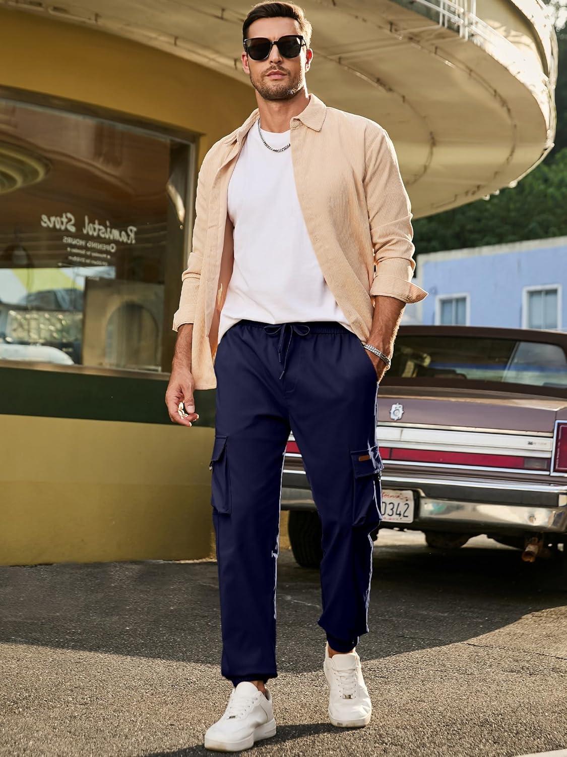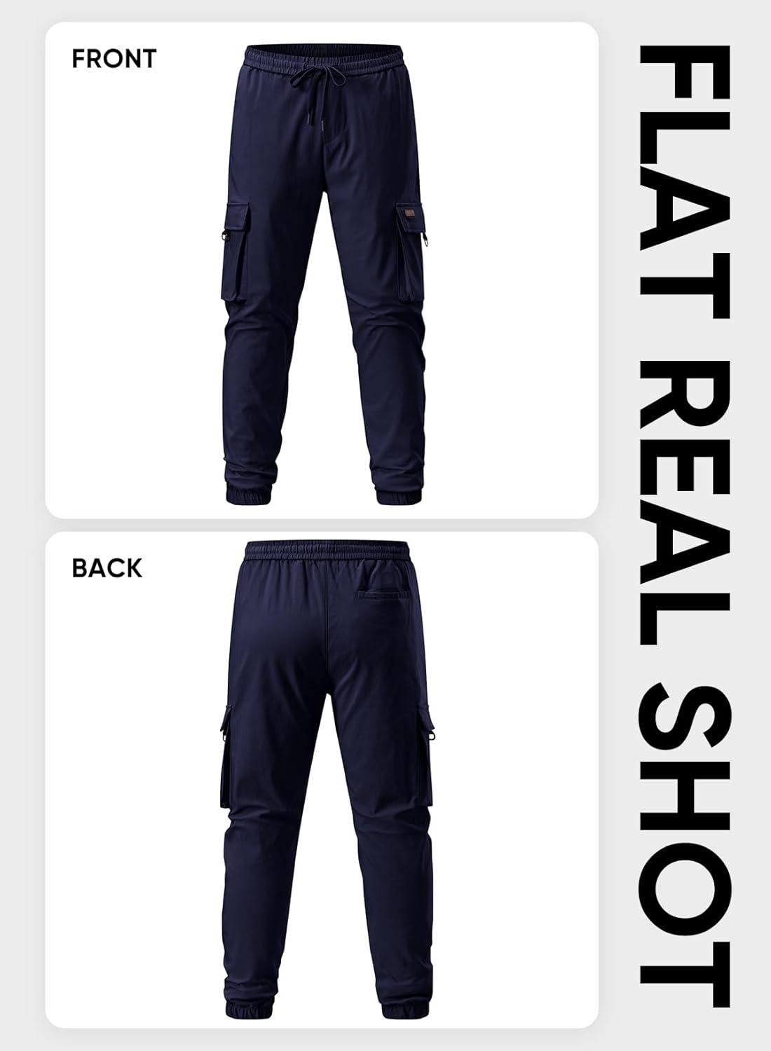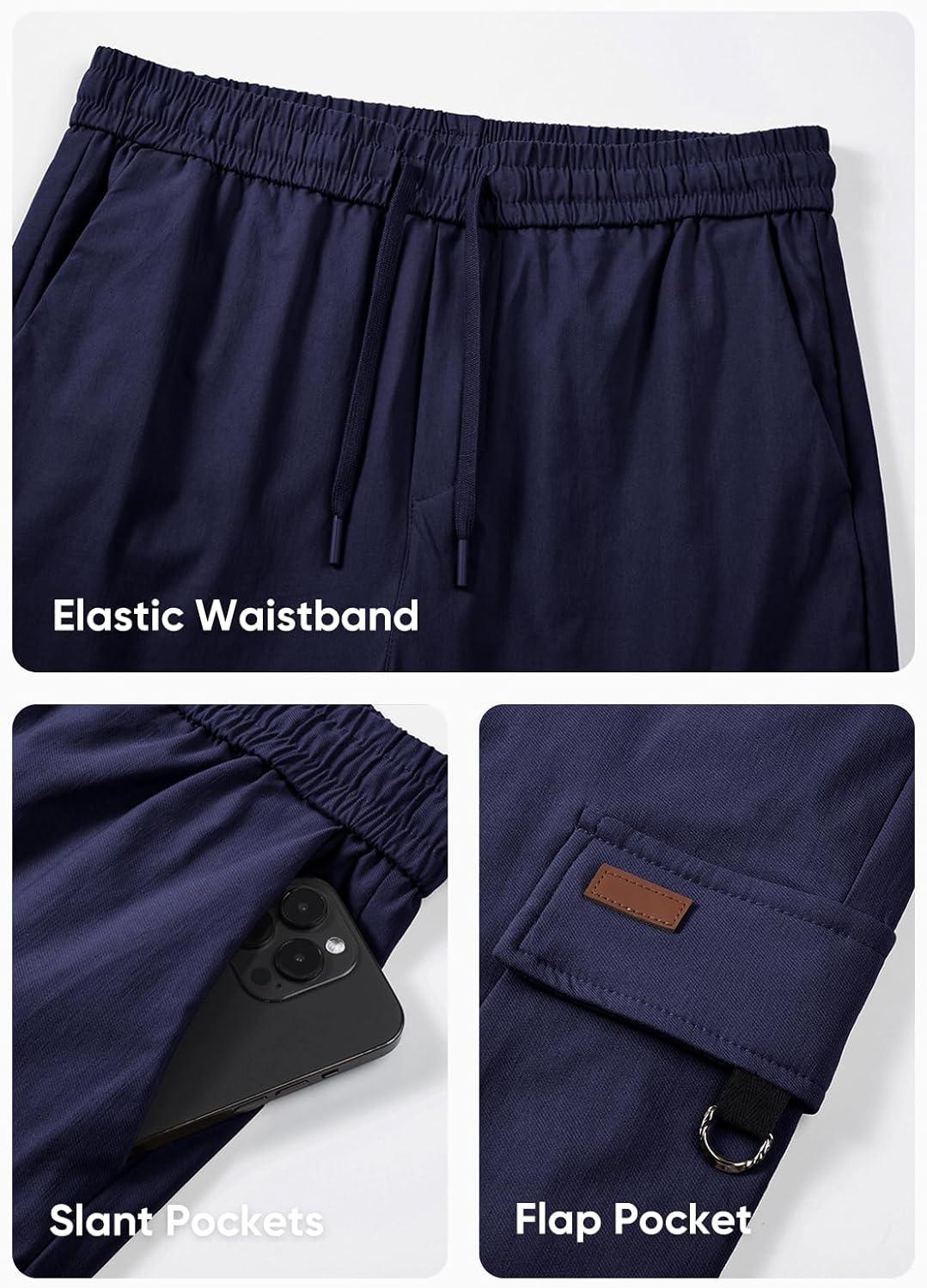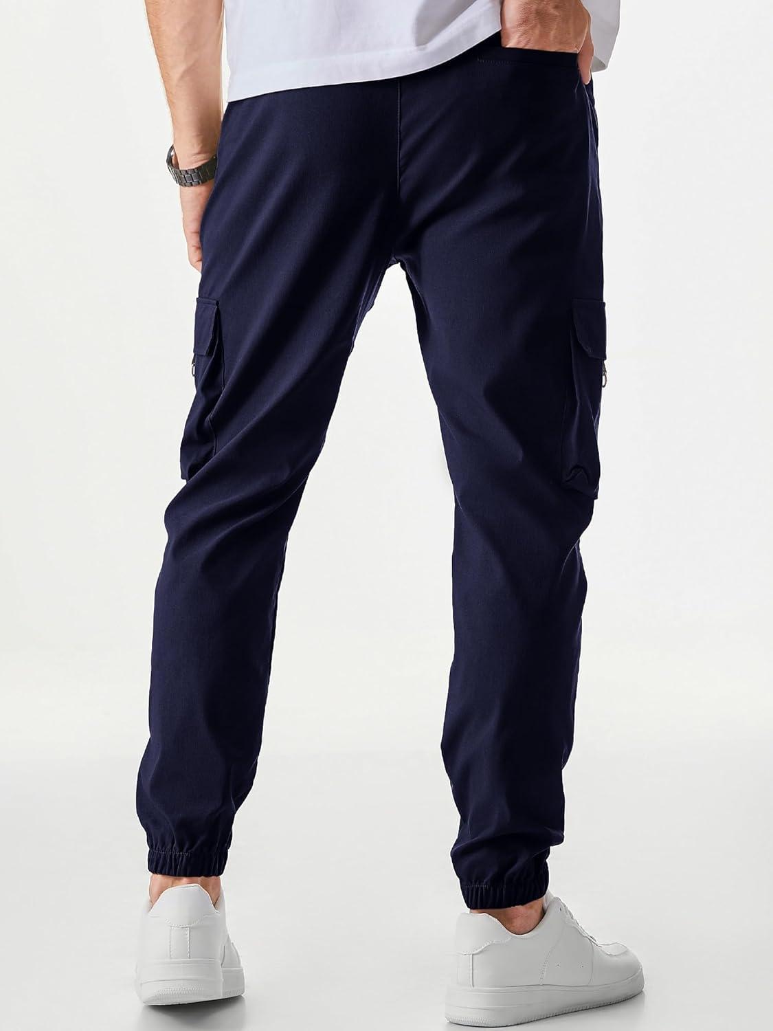 JMIERR Mens Cargo Pants Casual Lightweight Elastic Waist Drawstring Tapered Pant with Pockets(Navy Blue)