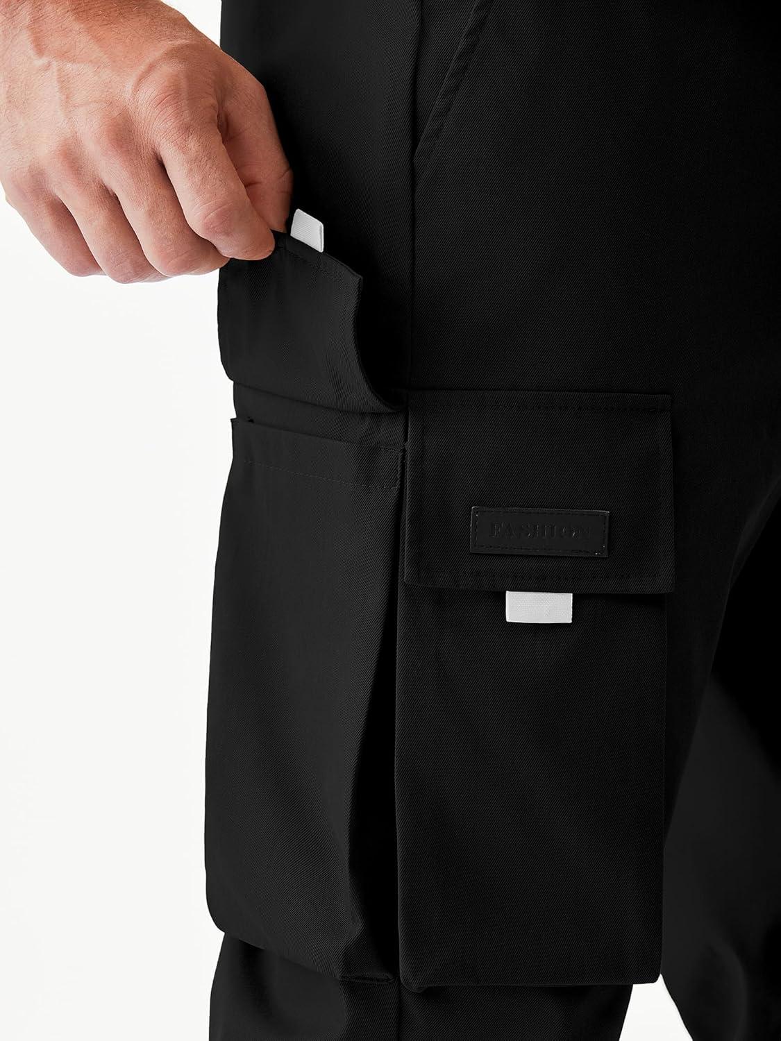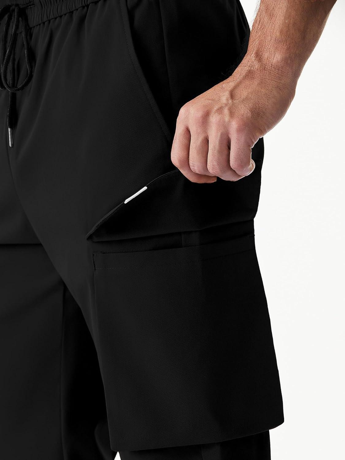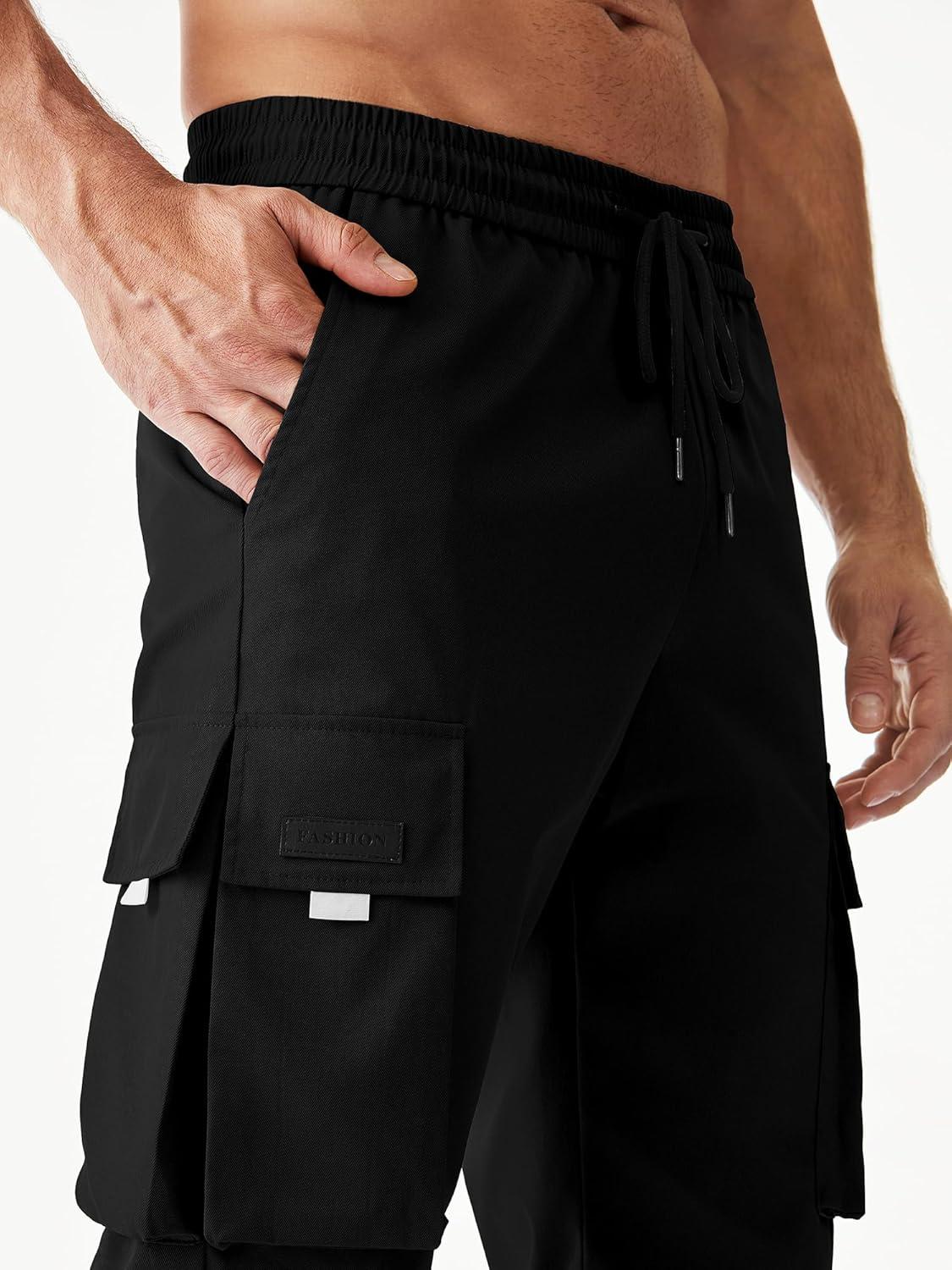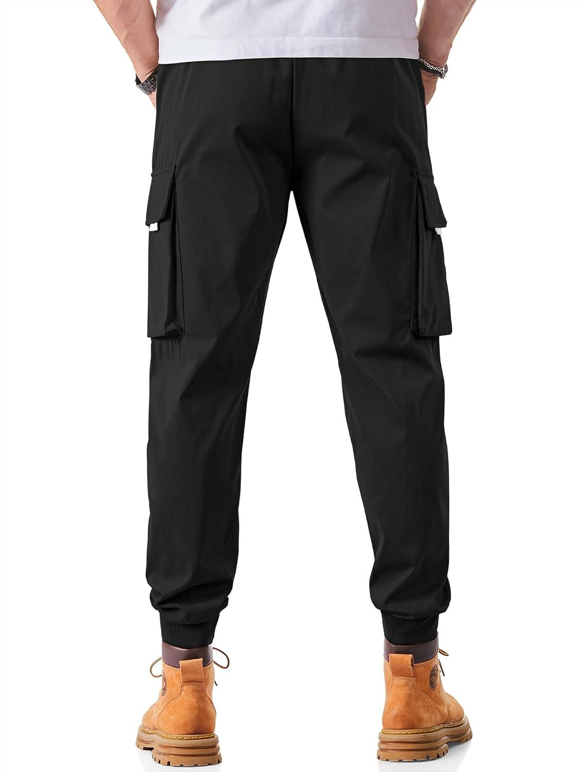 JMIERR Men’s Cargo Pants Joggers Pants Drawstring Stretch Waist Straight Trousers Tapered Sweatpants with Multi Pockets(Black)